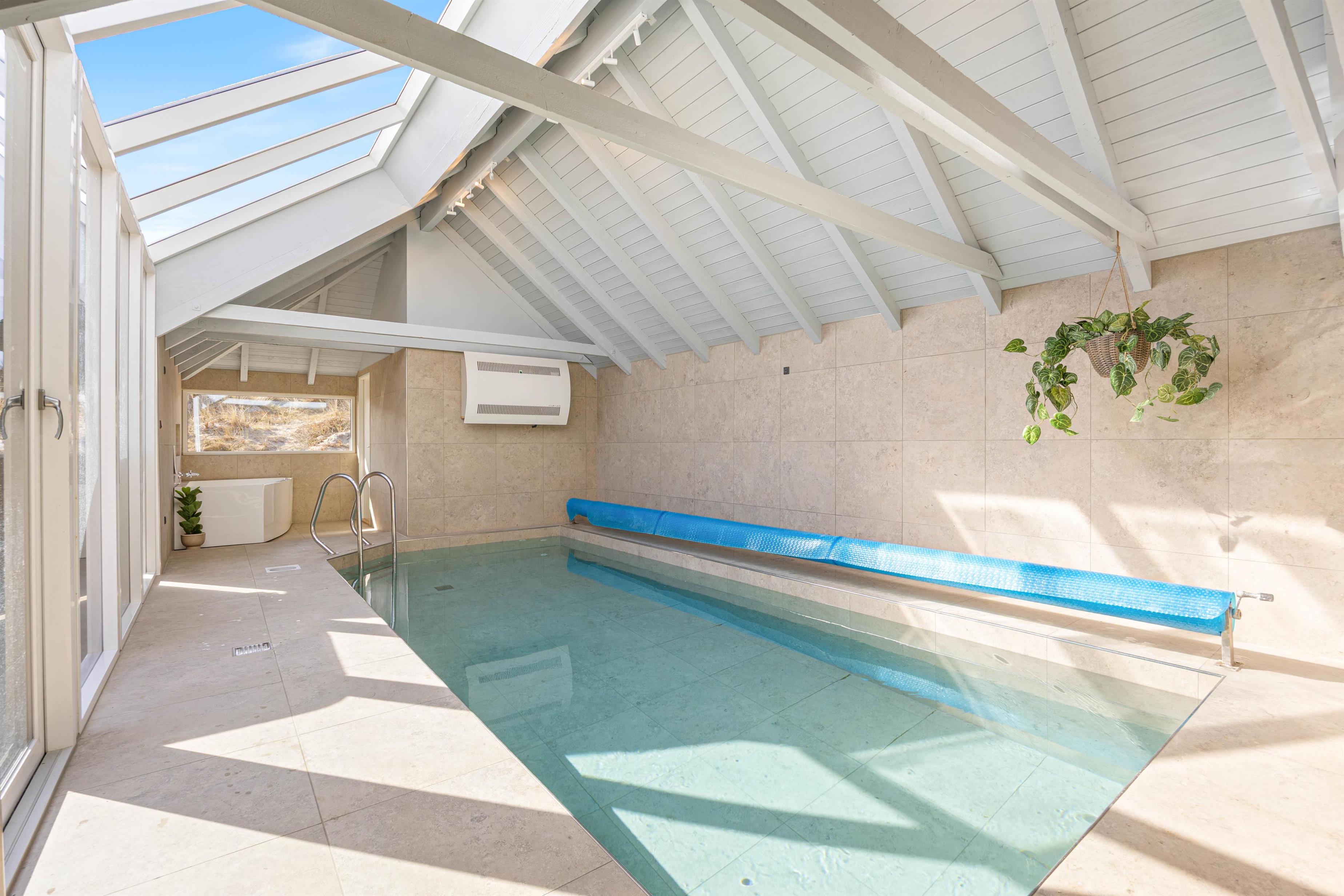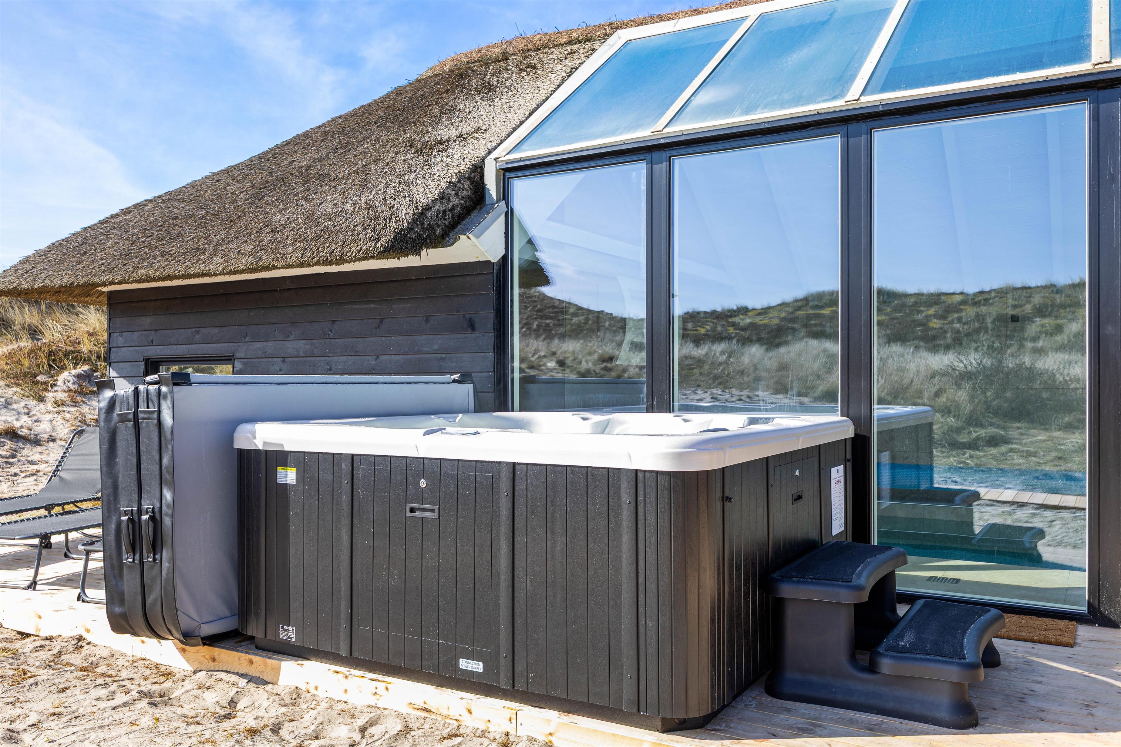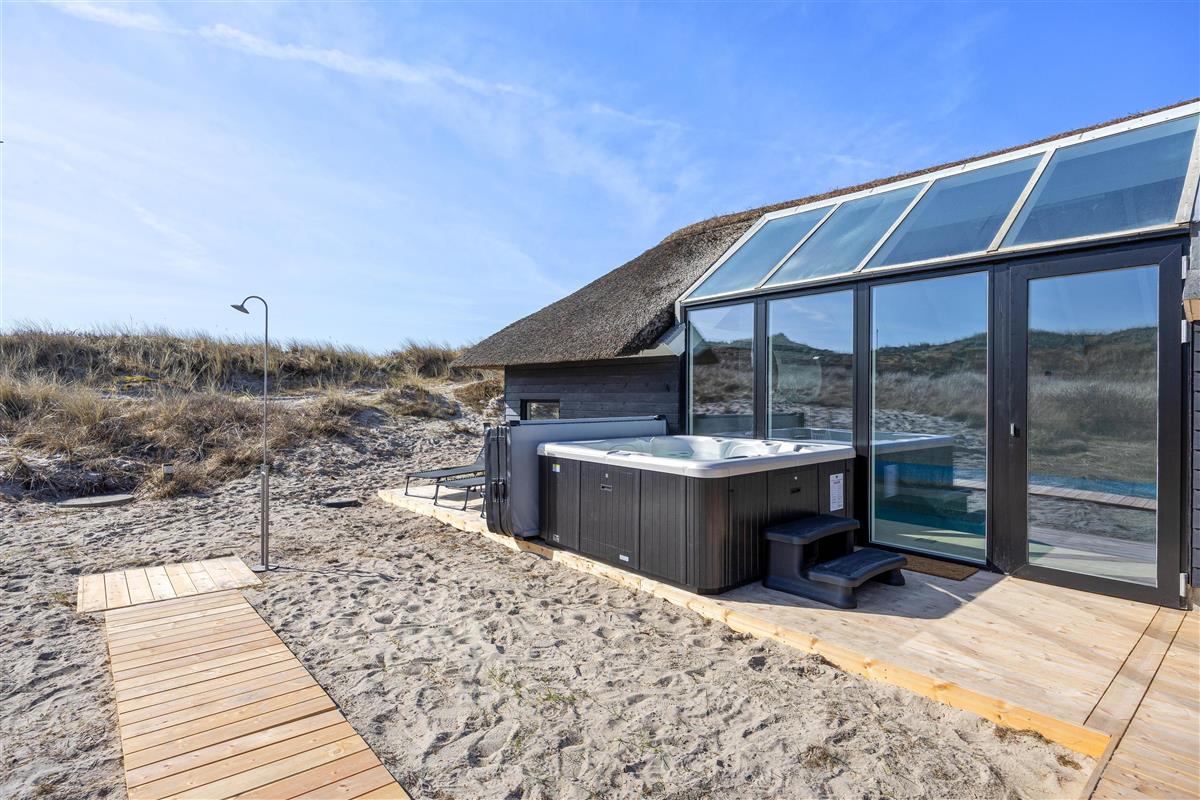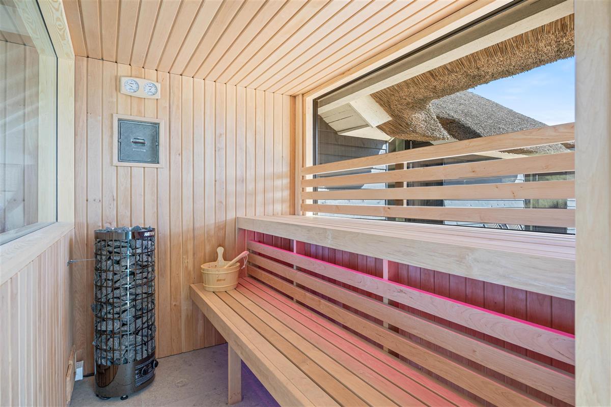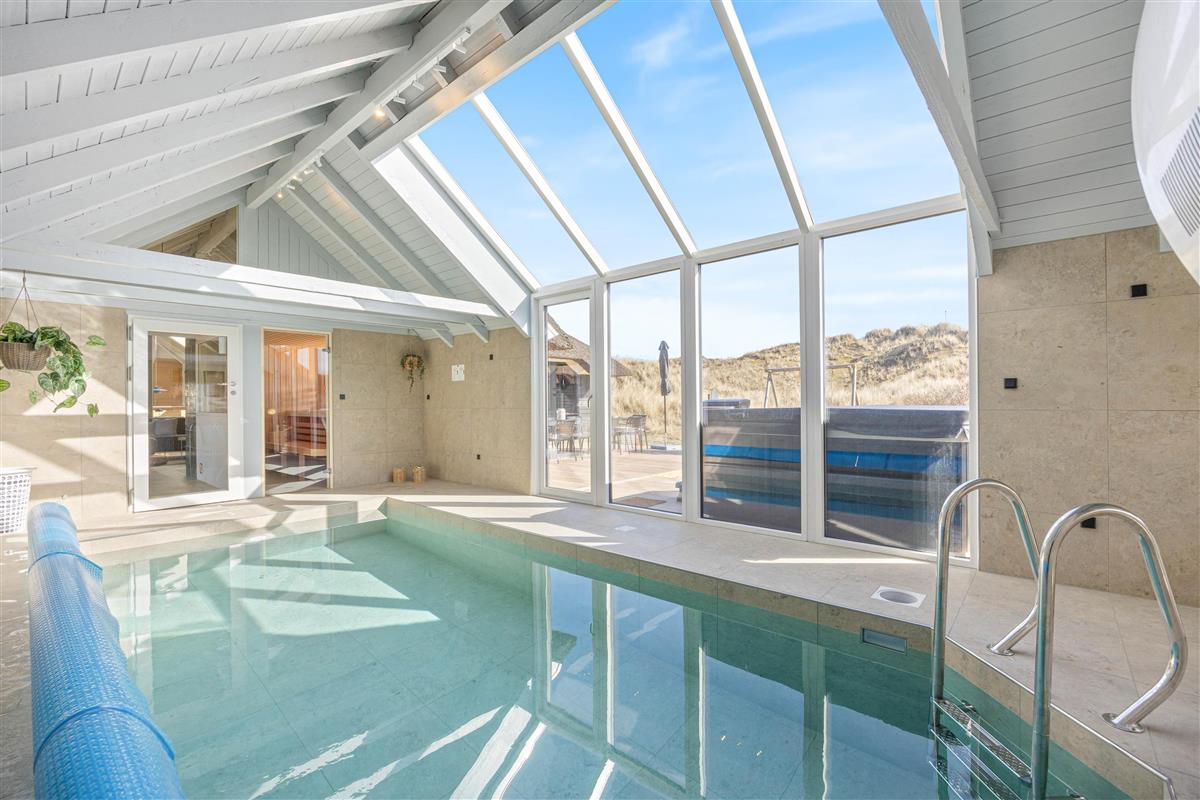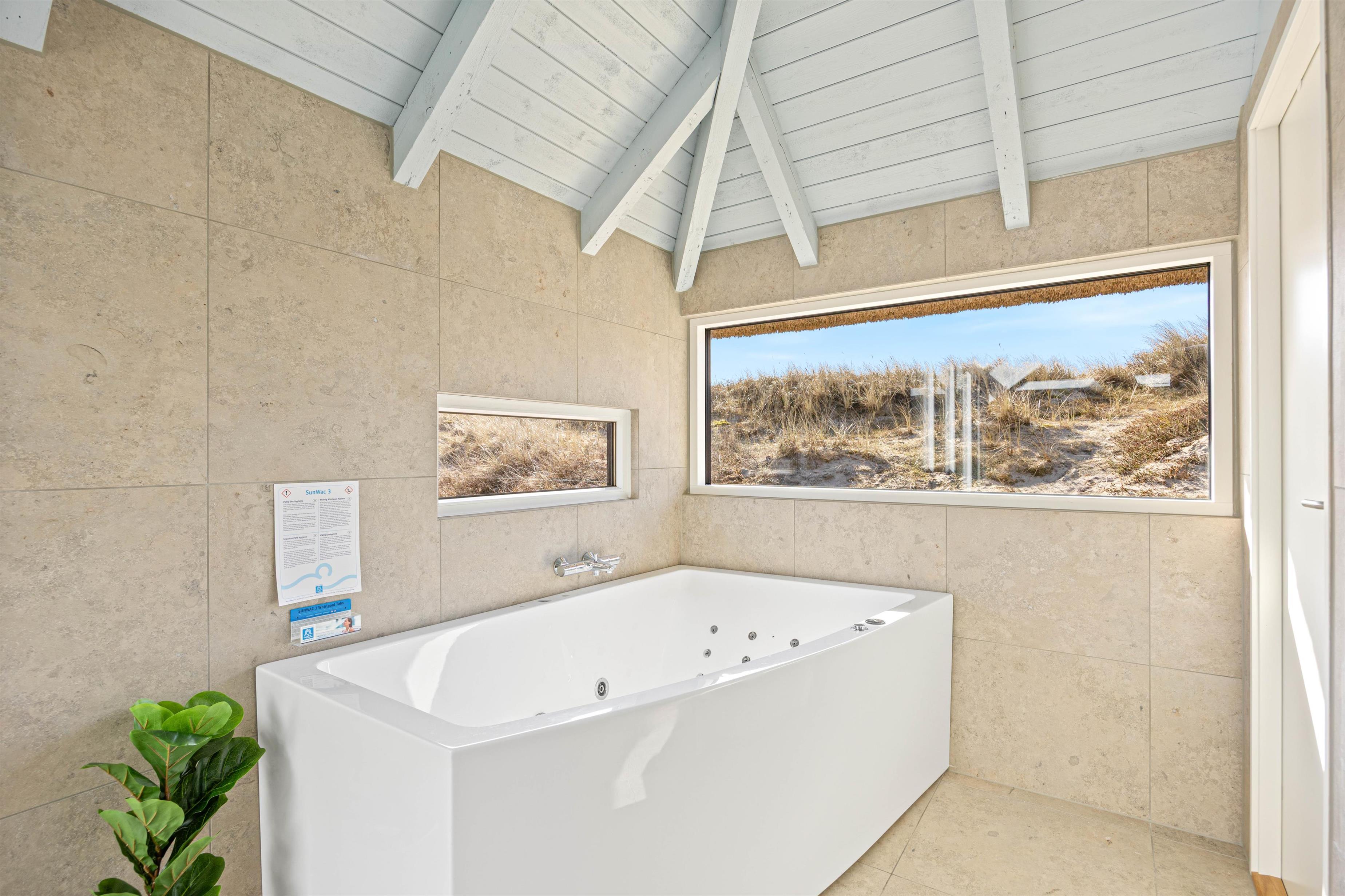 This Haurvig holiday home offers not only proximity to the beach but also a fantastic wellness experience. With a 15-square-metre swimming pool, sauna, and hot tub, you can truly unwind here. Imagine enjoying the sauna's warmth after a refreshing swim, or relaxing in the bubbling hot tub. Both bathrooms are fully equipped with all modern comforts, including underfloor heating.