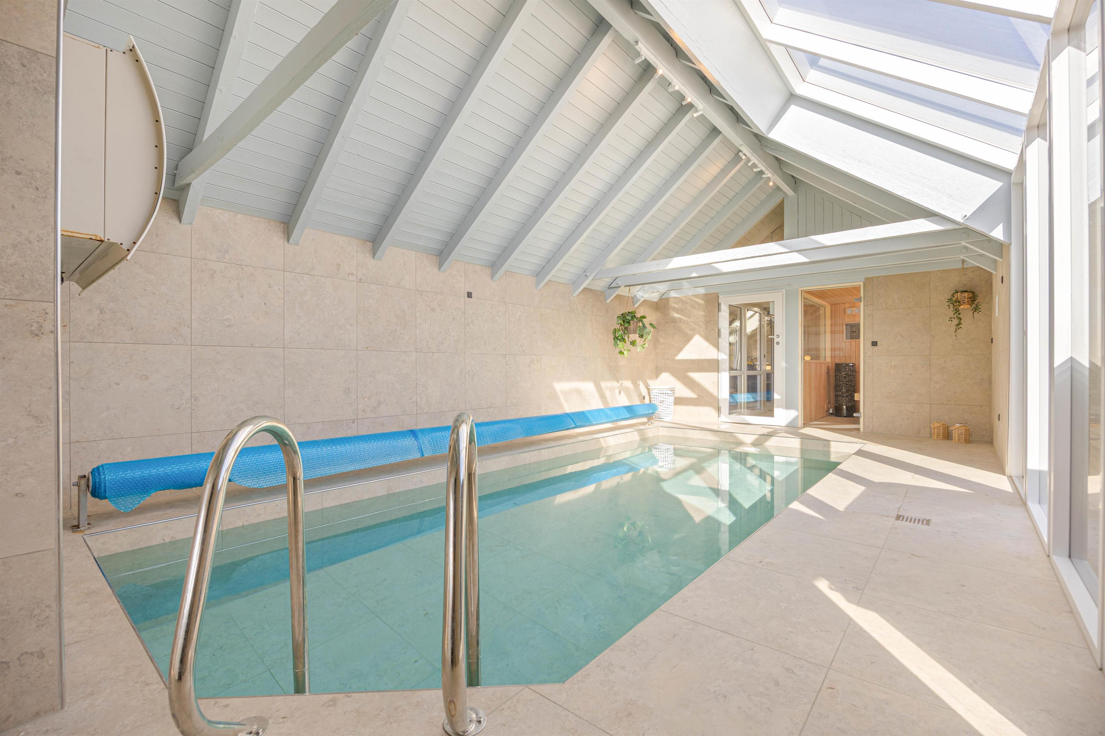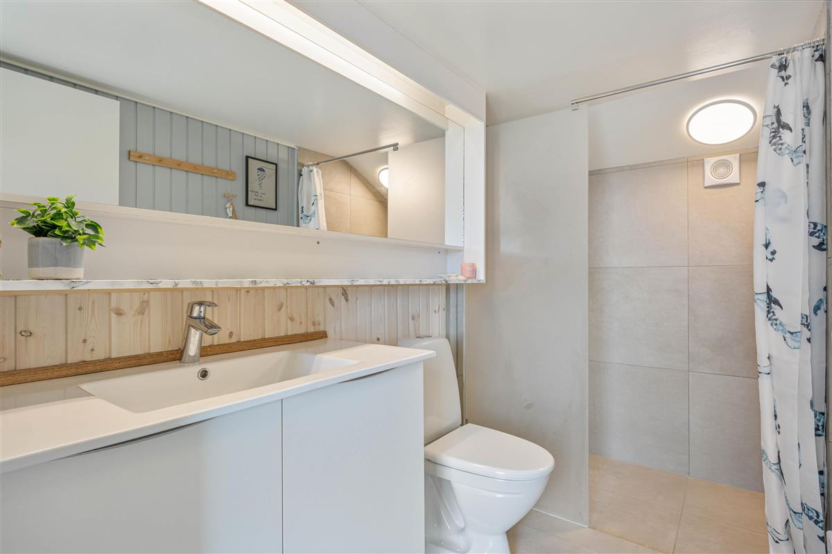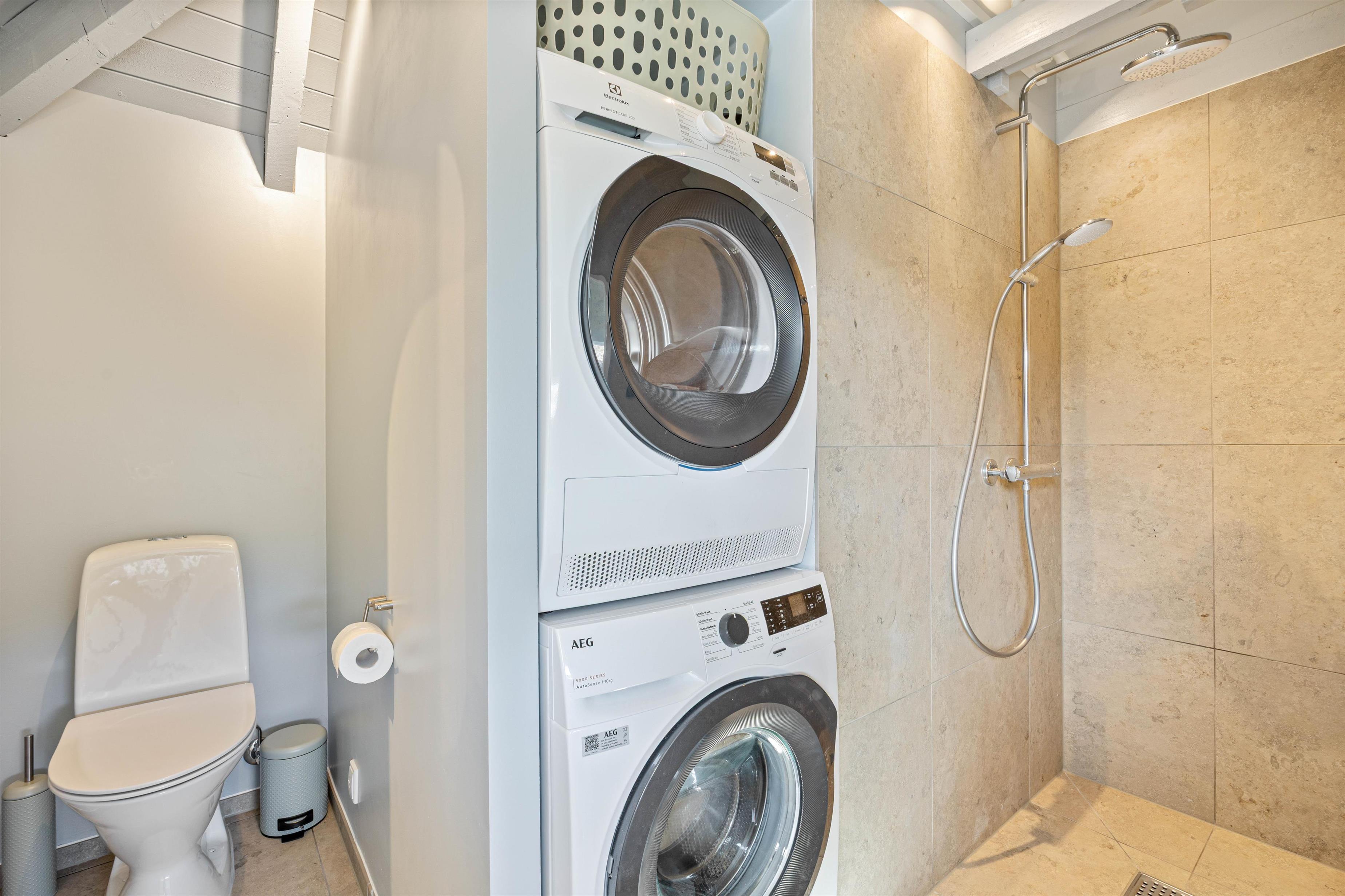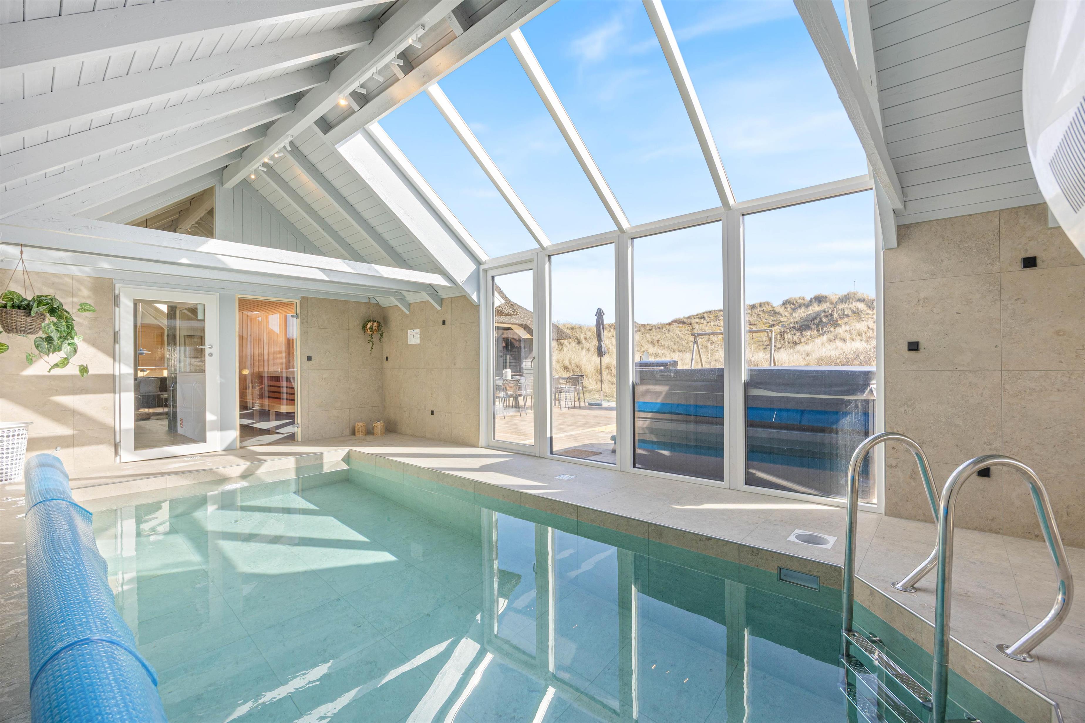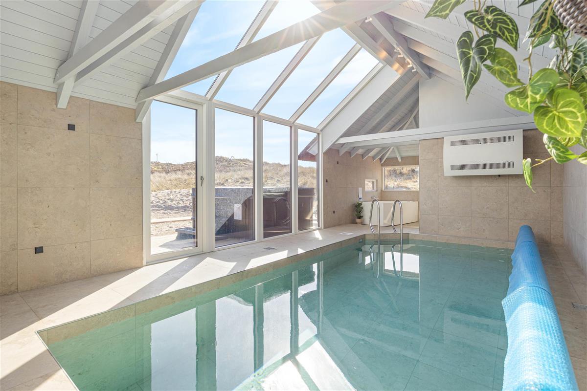 This Haurvig holiday home offers not only proximity to the beach but also a fantastic wellness experience. With a 15-square-metre swimming pool, sauna, and hot tub, you can truly unwind here. Imagine enjoying the sauna's warmth after a refreshing swim, or relaxing in the bubbling hot tub. Both bathrooms are fully equipped with all modern comforts, including underfloor heating.