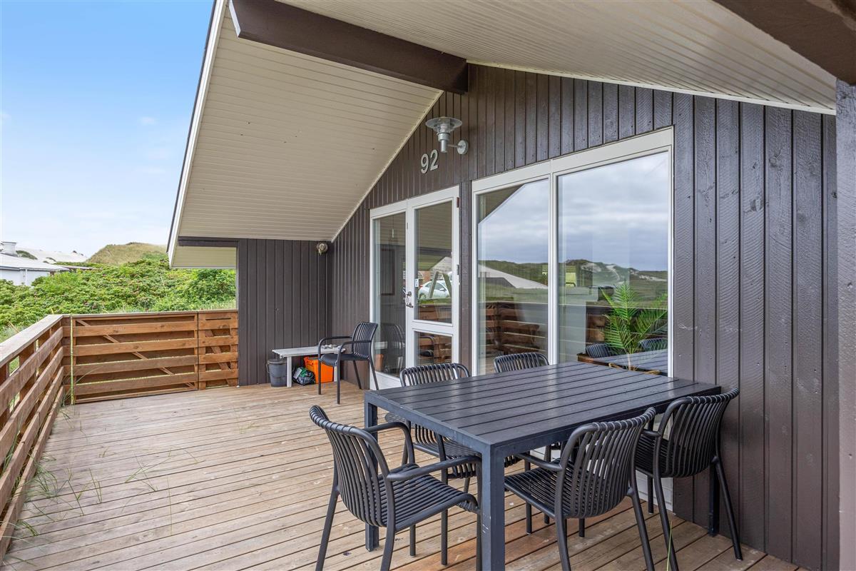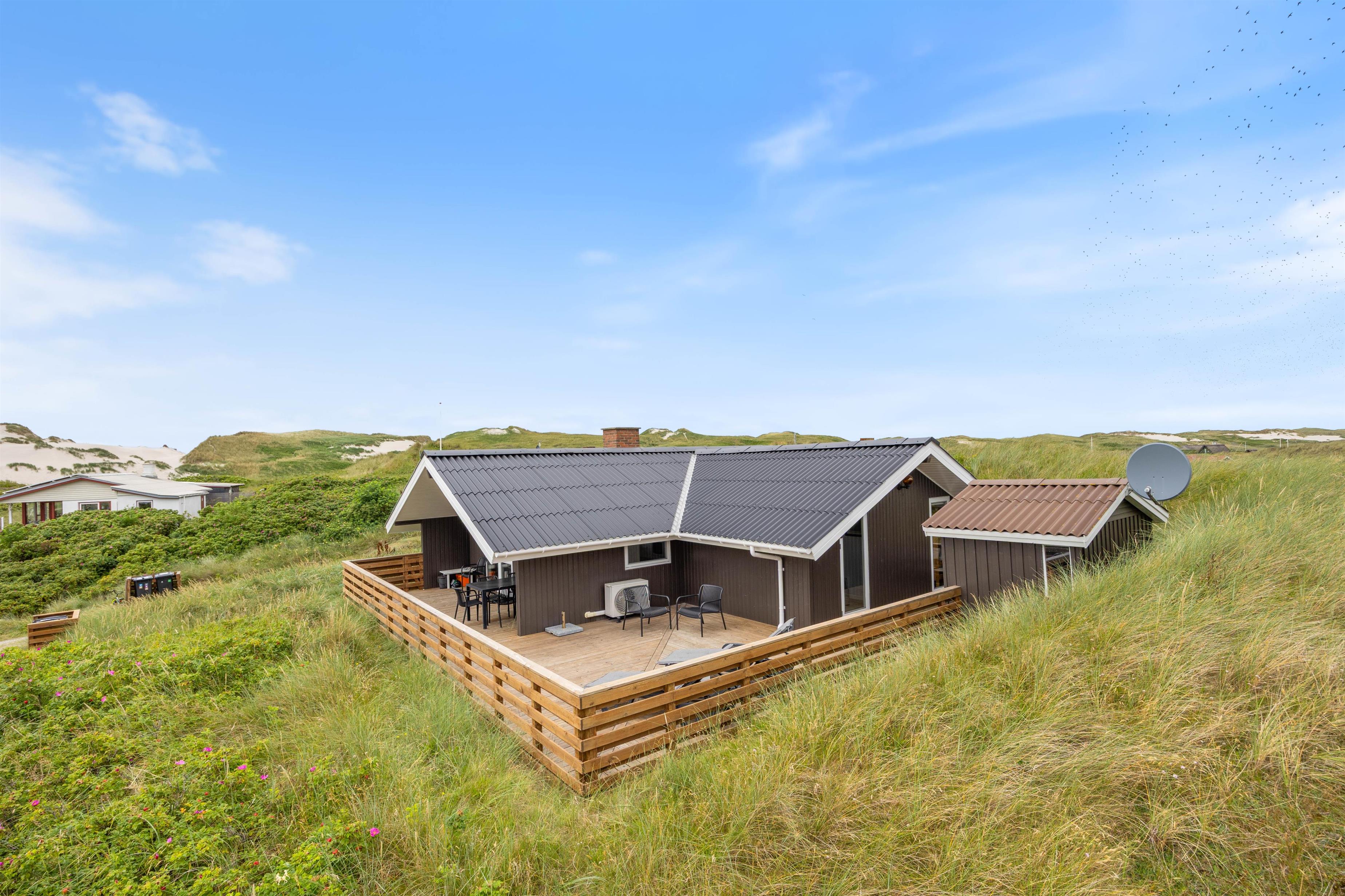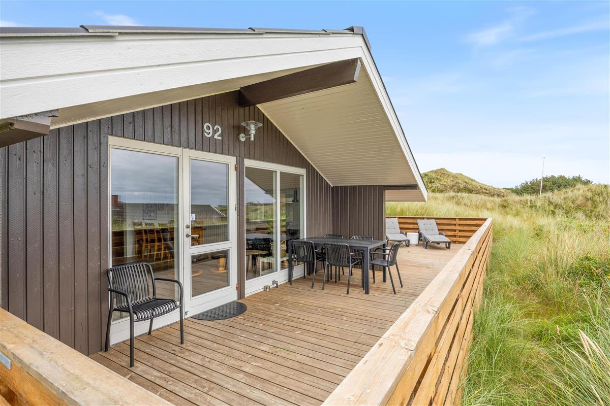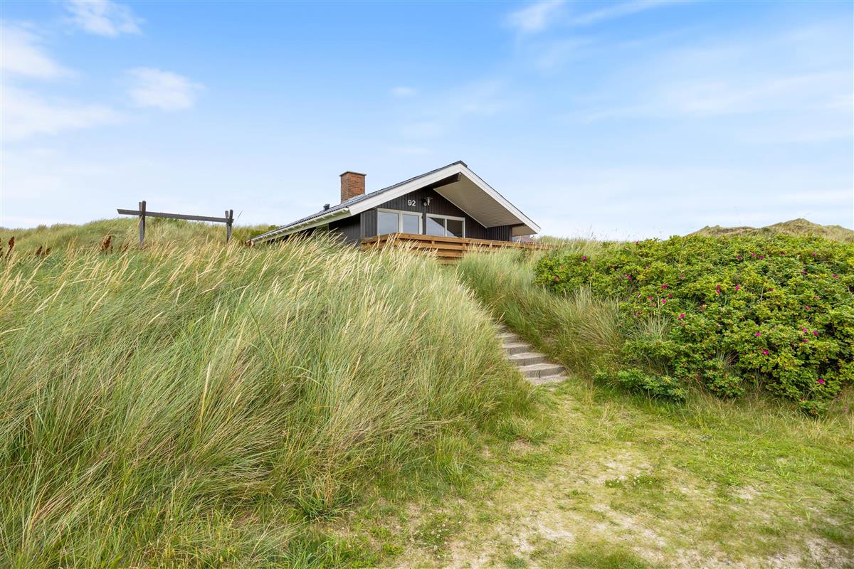 Your holiday home is situated in peaceful Haurvig on the Holmsland Klit peninsula, between the North Sea and Ringkøbing Fjord. It's just 125 metres to the North Sea beach, where you can walk in the sand and paddle in the water. Dogs are also welcome on the beach.