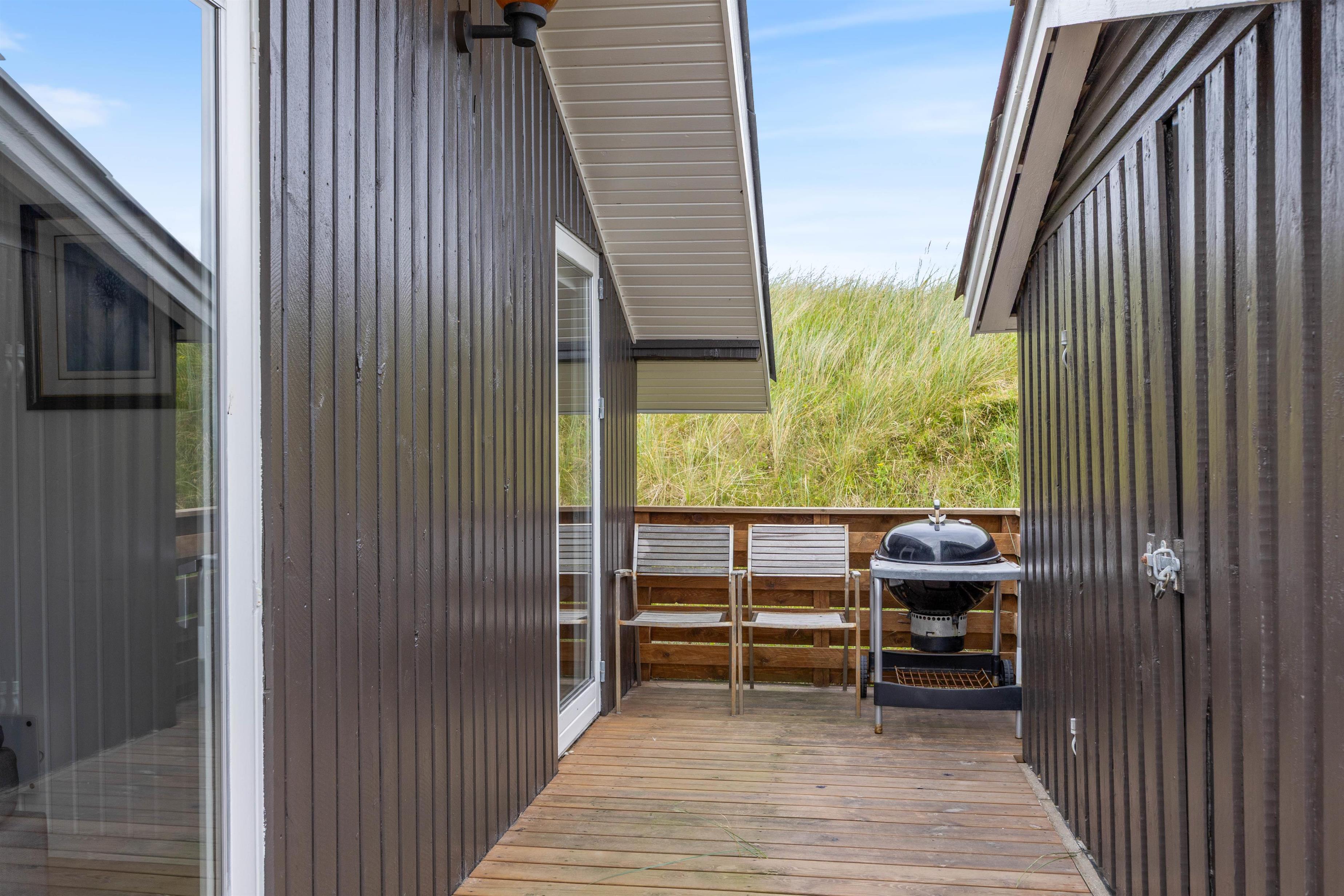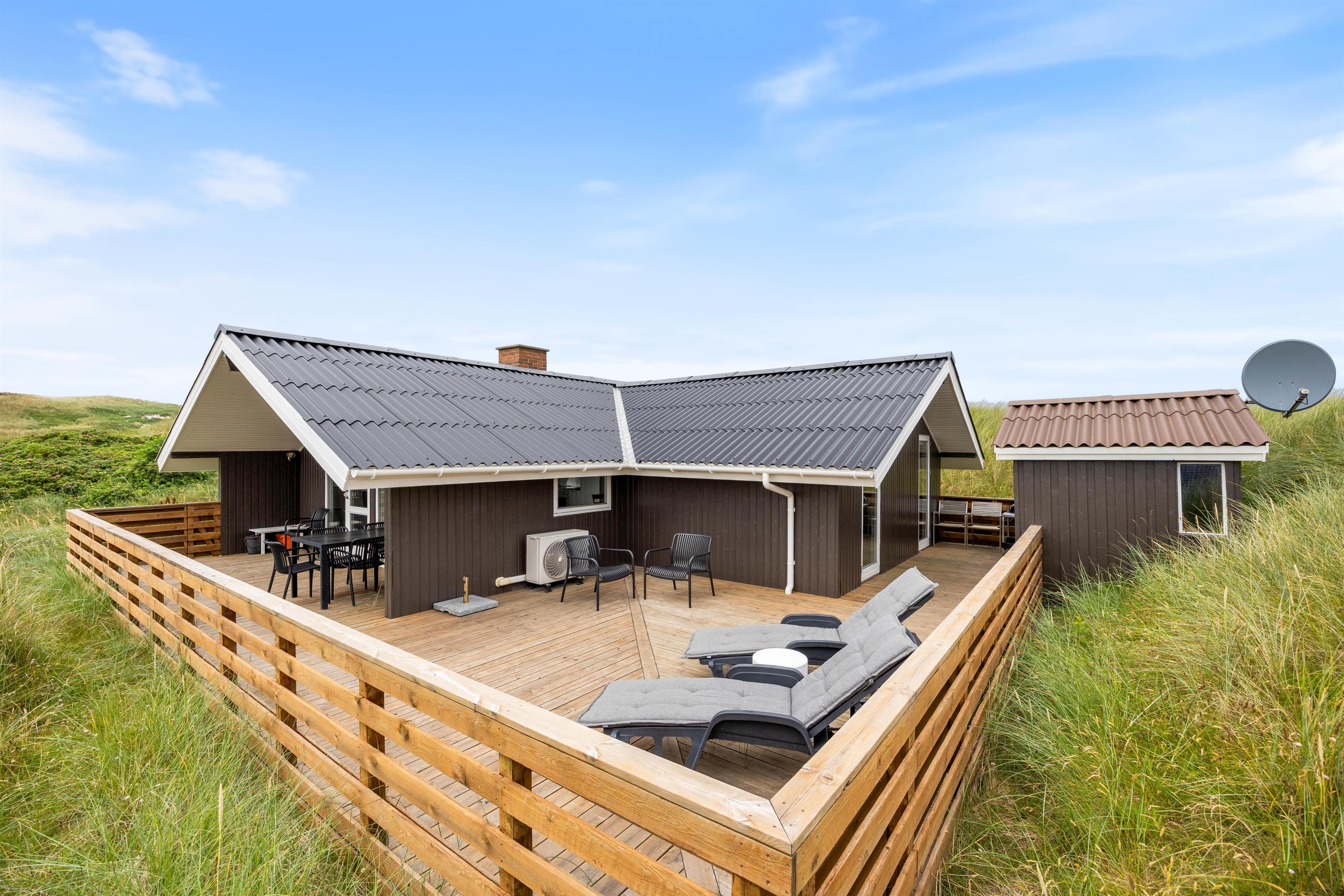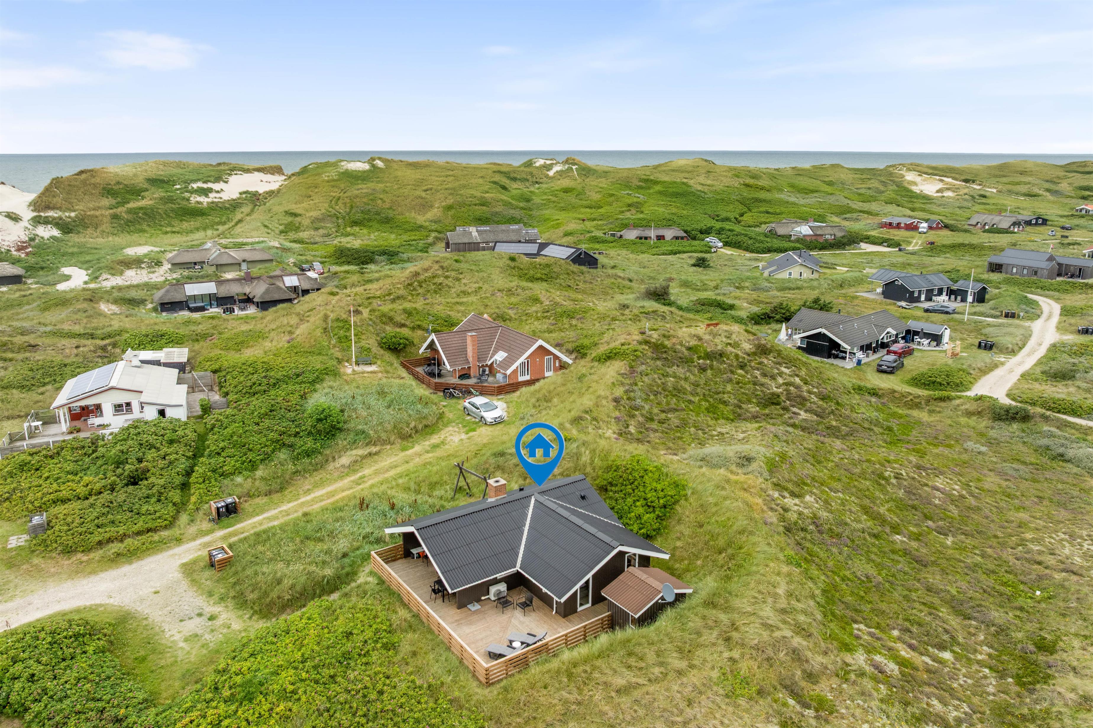 Your holiday home is situated in peaceful Haurvig on the Holmsland Klit peninsula, between the North Sea and Ringkøbing Fjord. It's just 125 metres to the North Sea beach, where you can walk in the sand and paddle in the water. Dogs are also welcome on the beach.