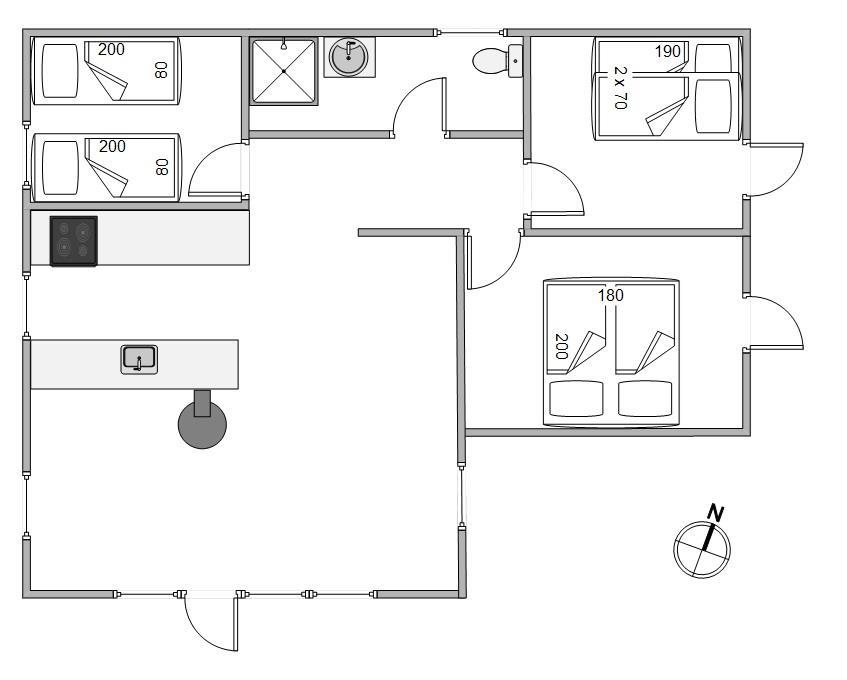 The holiday home has a bathroom with underfloor heating and three spacious bedrooms. All bedrooms feature fitted wardrobes and comfortable beds ensuring a good night's sleep. One bedroom includes bunk beds – perfect for children.