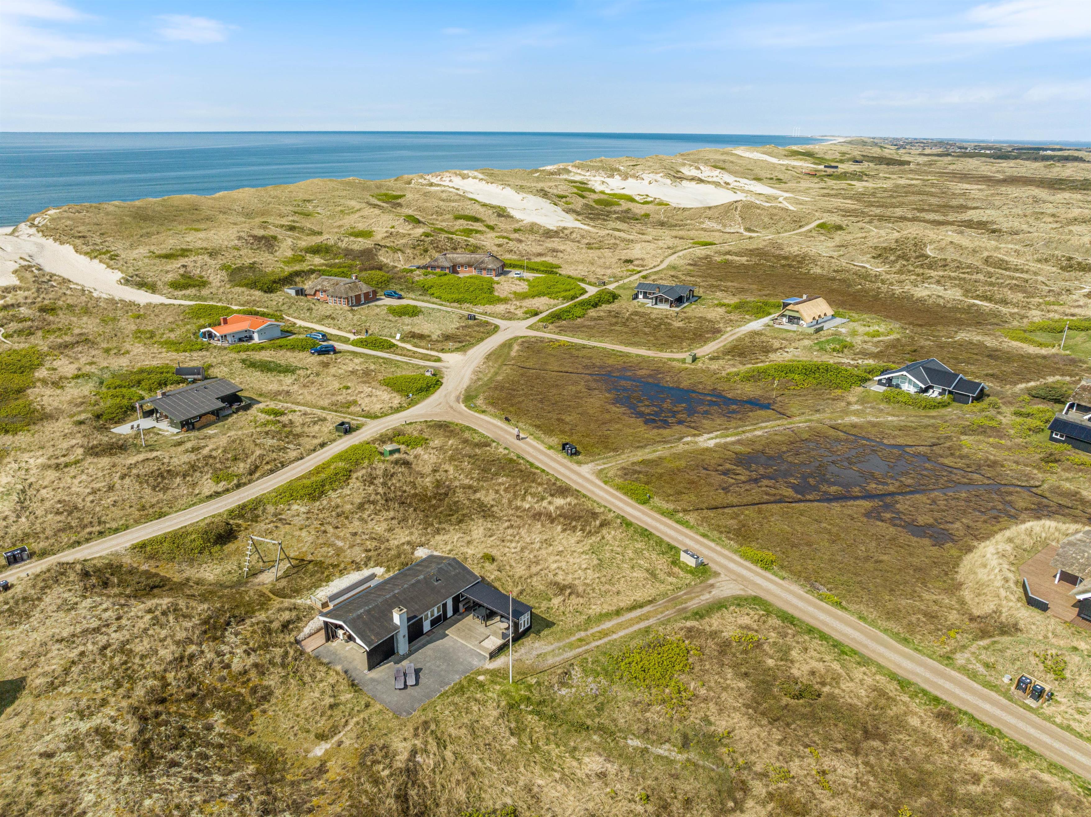 The peaceful holiday area of Haurvig sits in the middle of the Holmsland Klitt peninsula, surrounded by water on two sides. On one side lies the wild North Sea with its long sandy beaches, on the other the picturesque Ringkøbing Fjord with numerous bathing spots and water sports facilities.