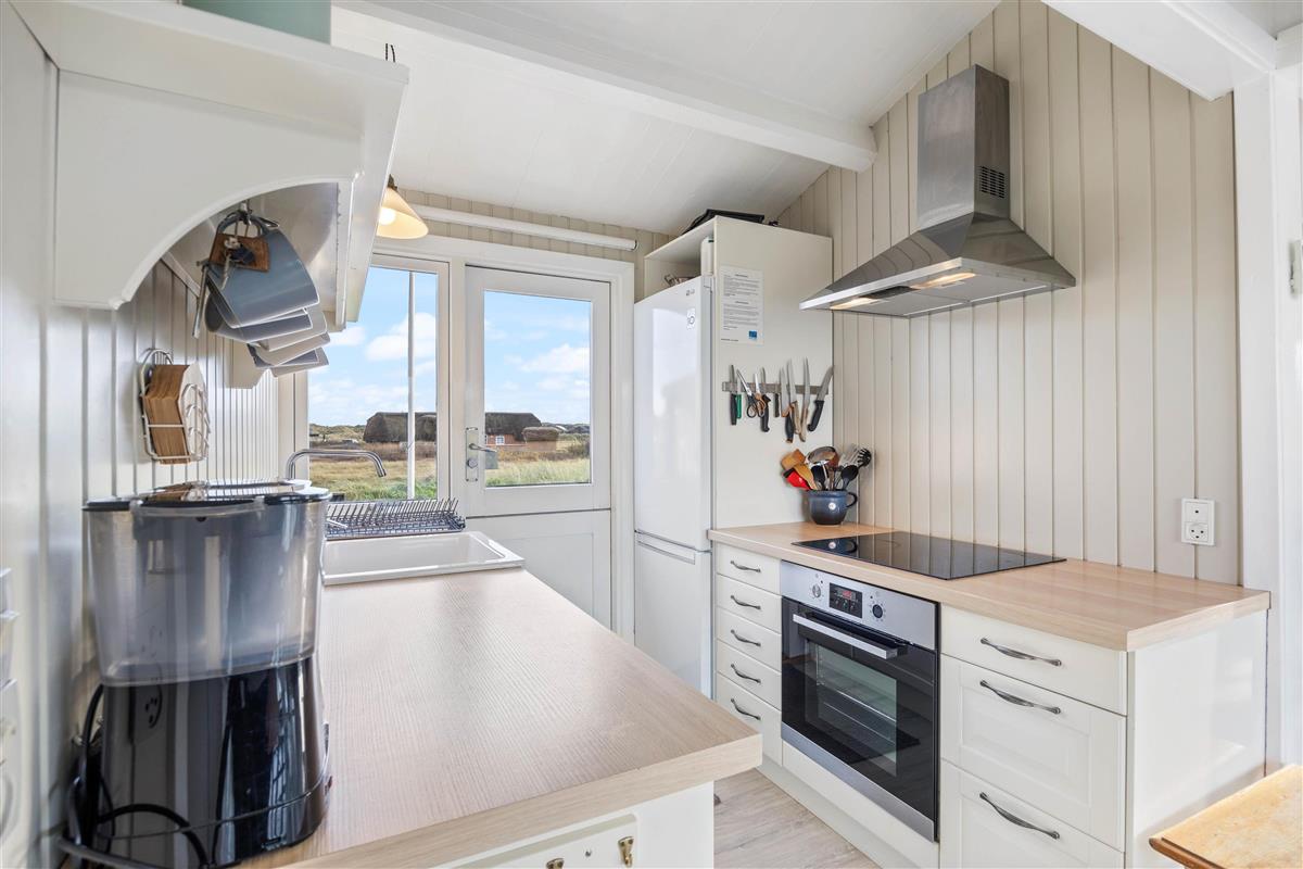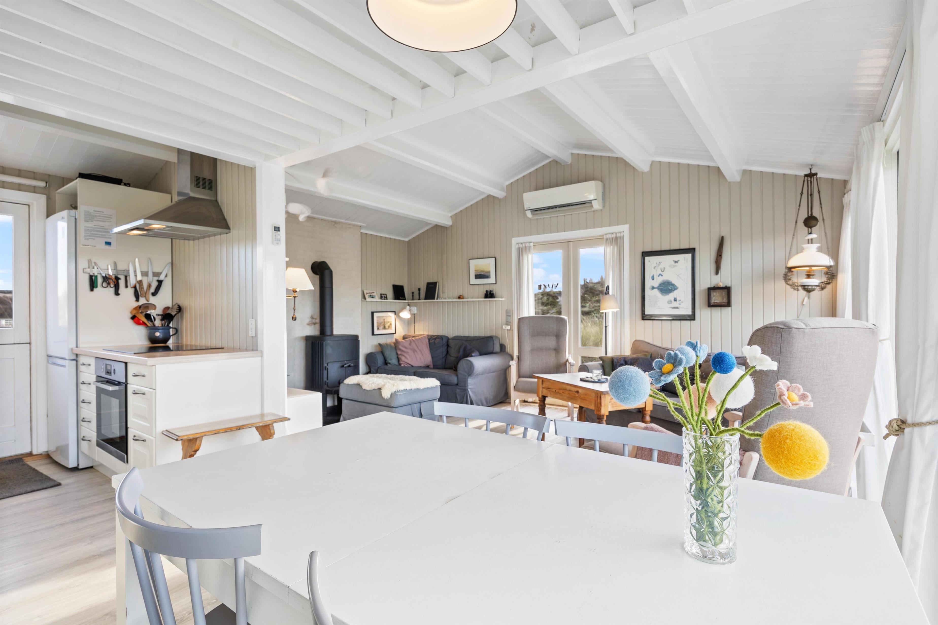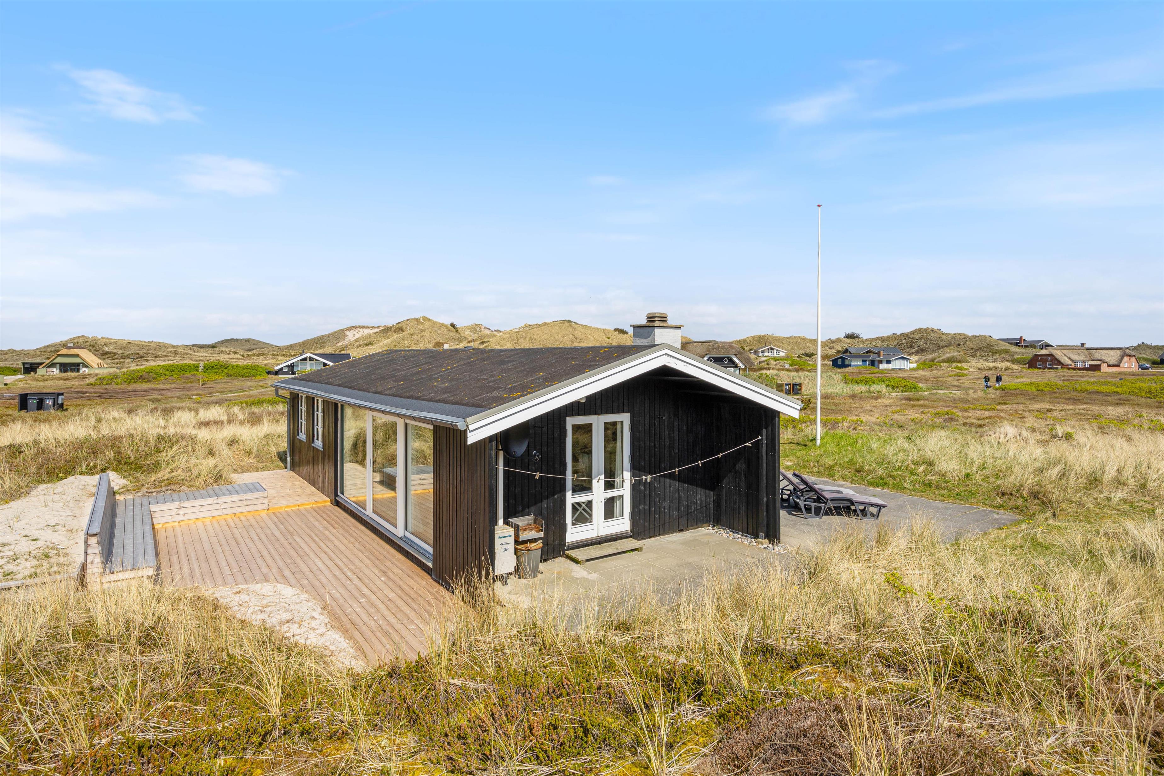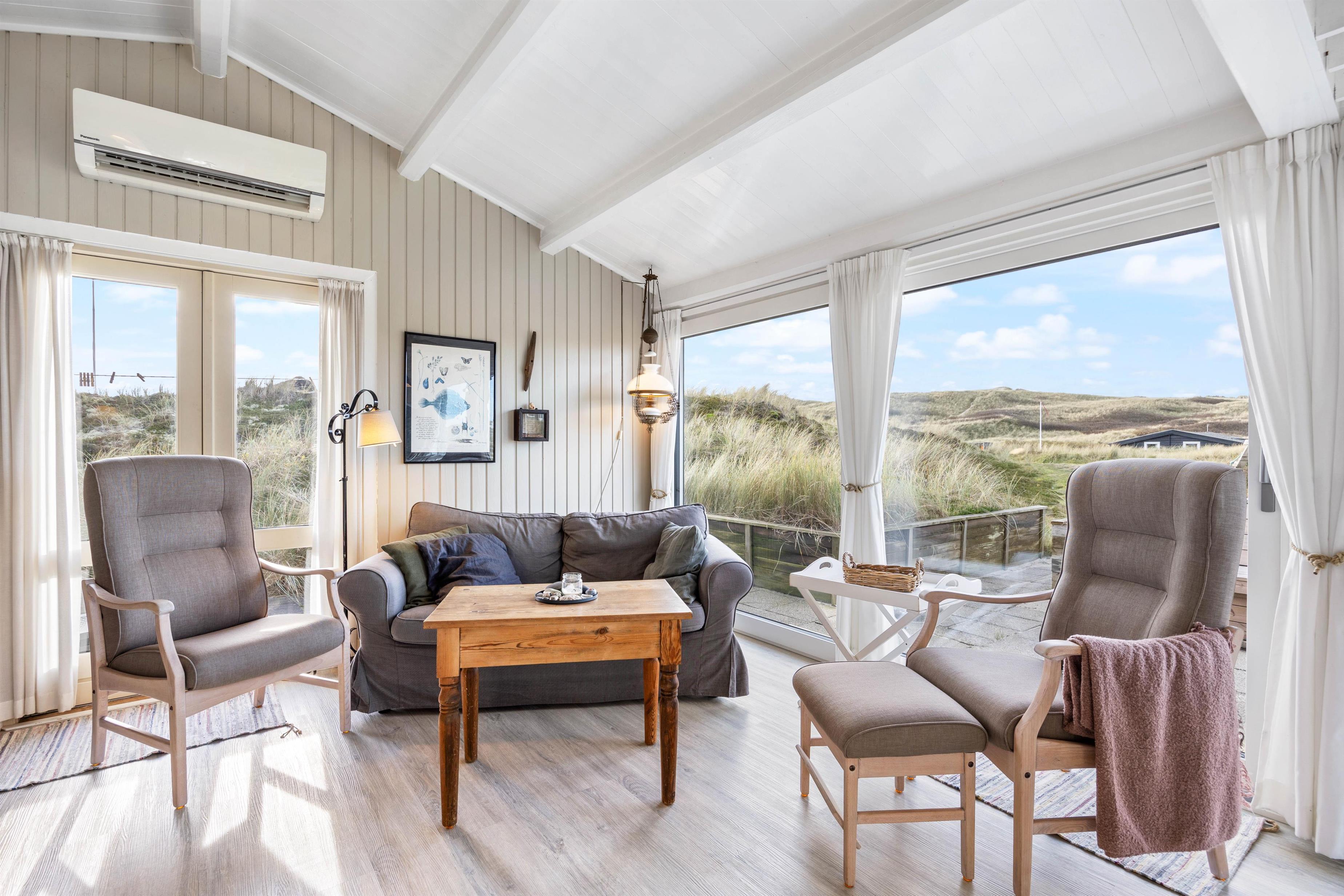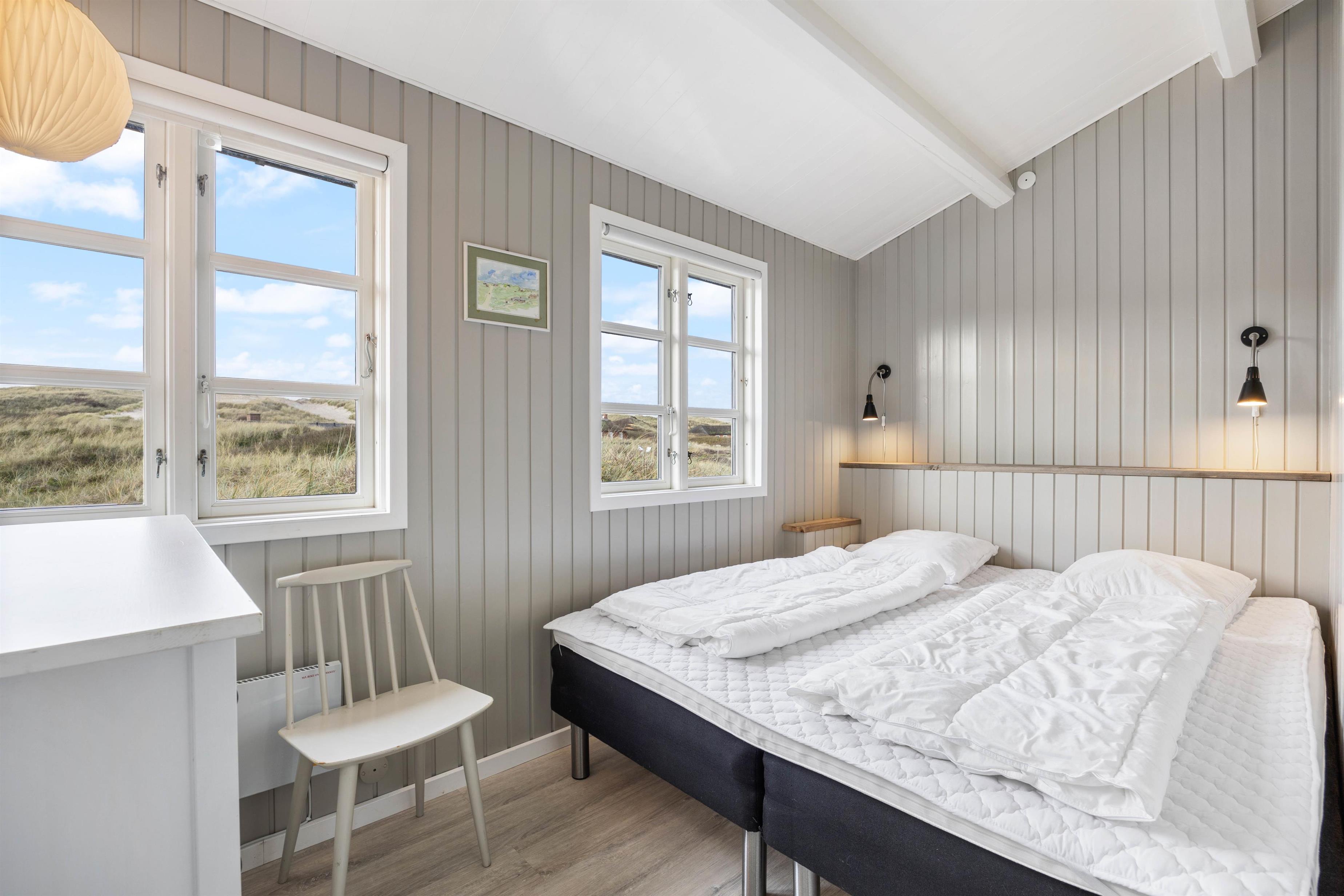 This classic 2-star holiday home at Riskrogvej 33, on the Danish west coast, is a real gem. Furnished in typical Scandinavian style, it radiates tranquillity, relaxation and cosiness. Accommodating up to 4 people, it offers unique panoramic views. The North Sea and its beautiful sandy beach, for which this area is famous, are just 200 metres away.