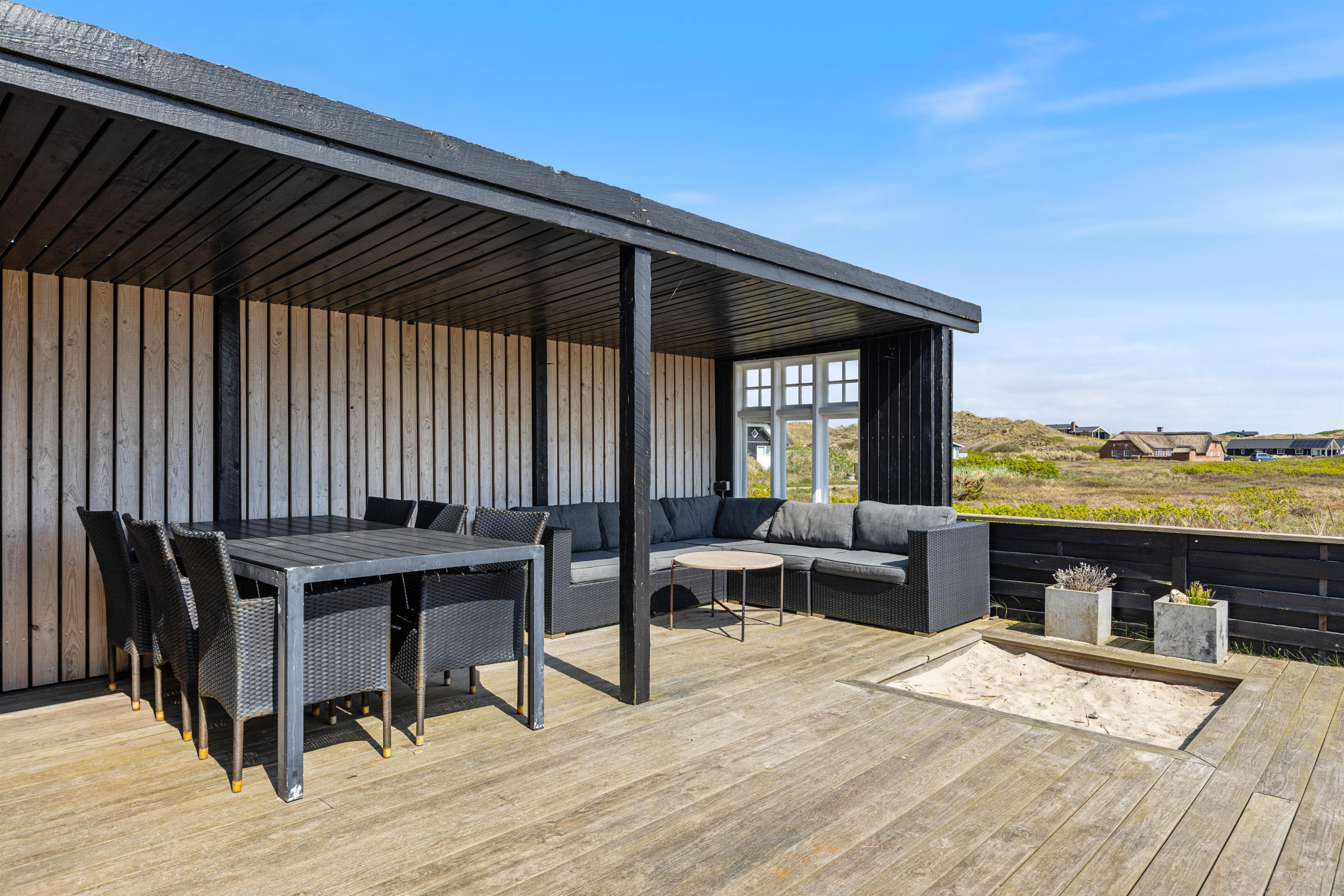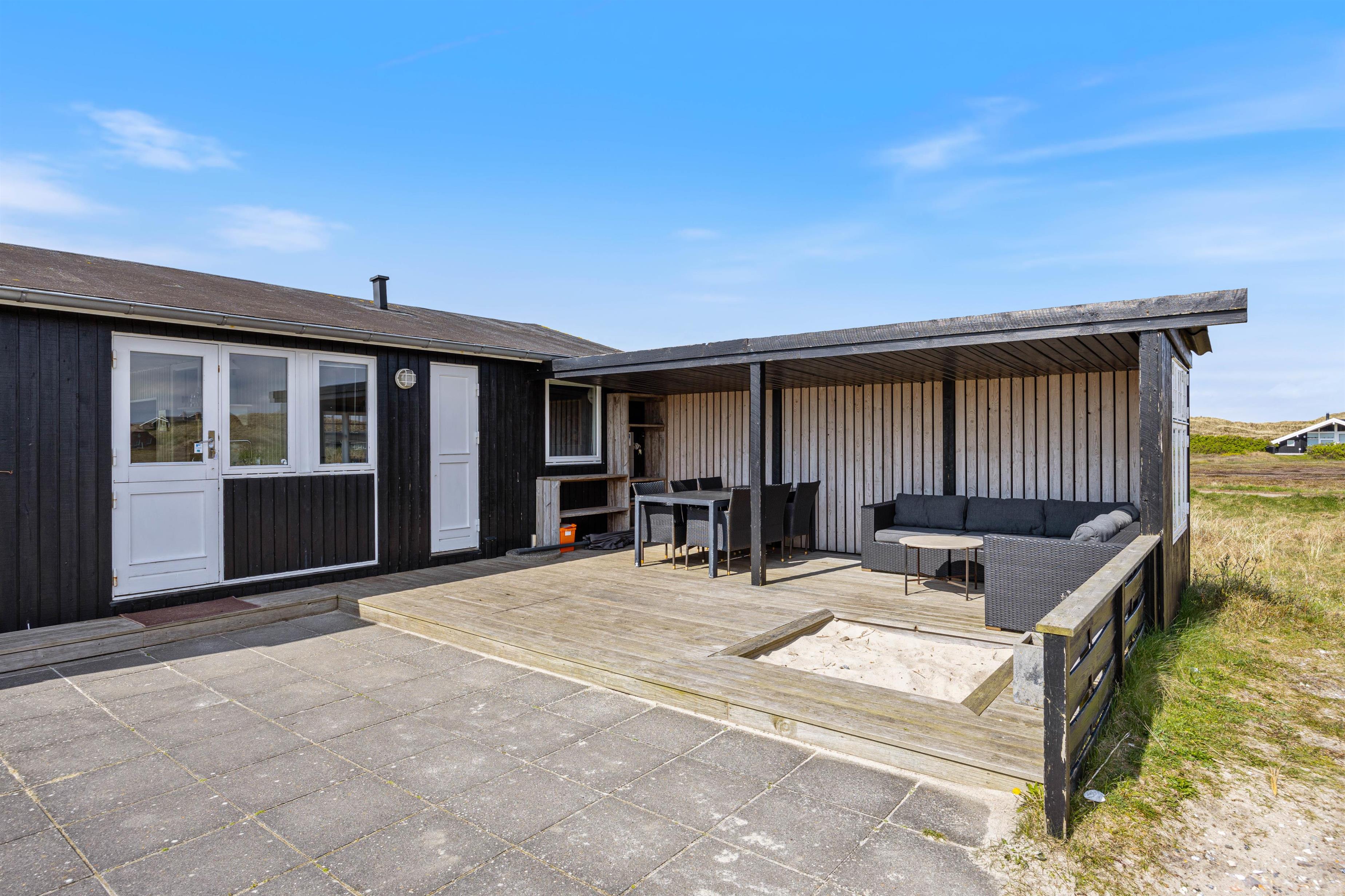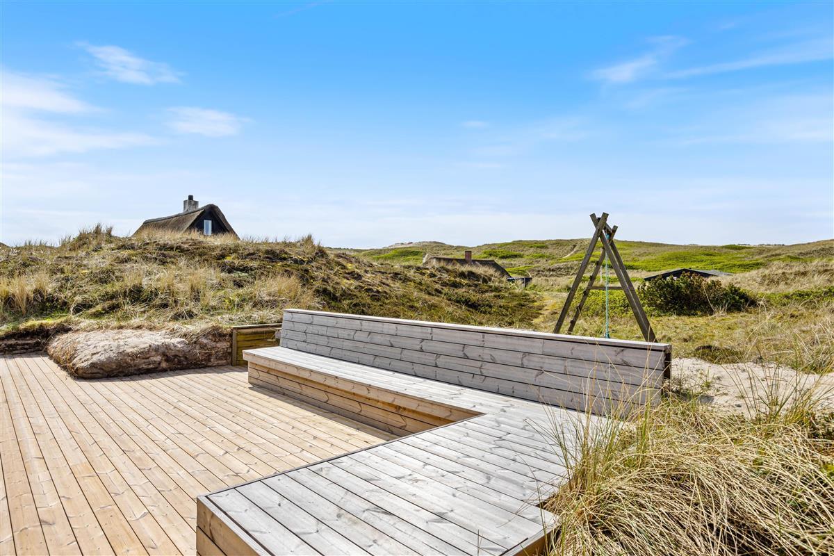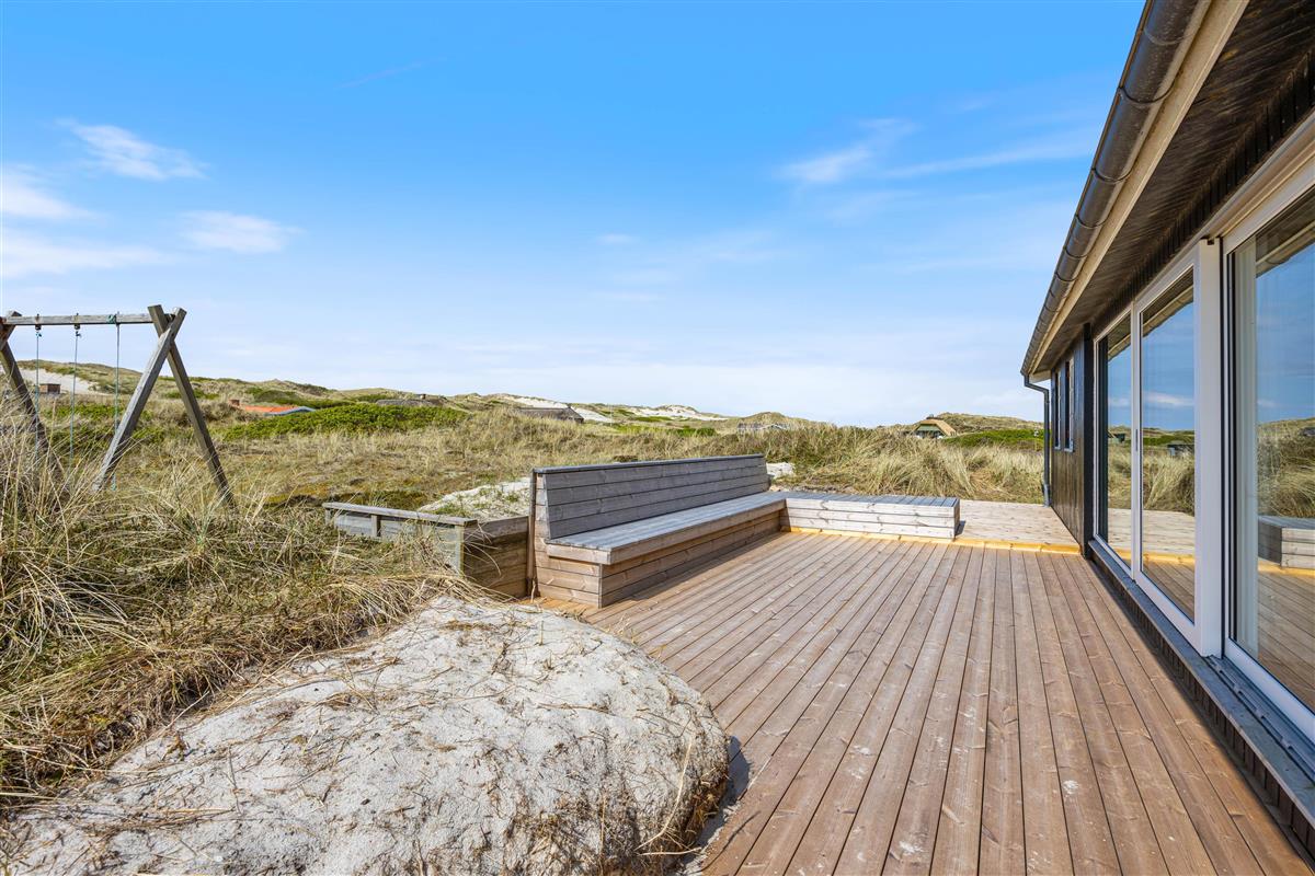 The holiday home is surrounded by a terrace with comfortable seating and sun loungers. Part of the terrace is covered, providing a sheltered spot in all weather conditions. Enjoy the sunshine and fresh sea air with a cool drink and your favourite book, while children play in the sandpit, on the swing, or explore the spacious dune grounds. Round off a perfect holiday with a barbecue featuring fresh fish.