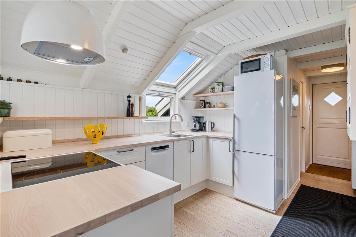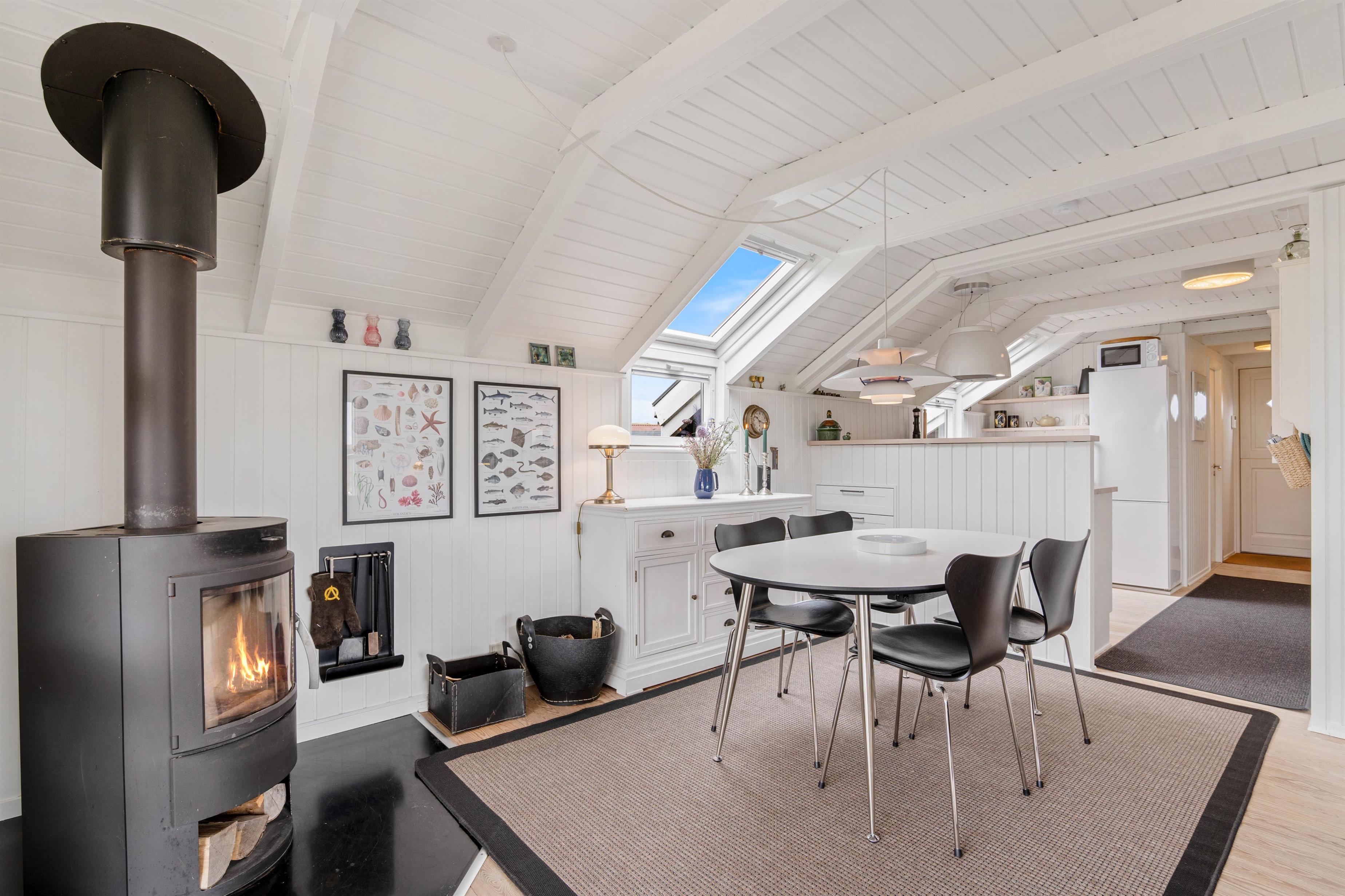Renovated in 2022, this lovely holiday home radiates typical Scandinavian comfort. The well-designed 70 square metres comfortably accommodate up to 4 people. The cosy living area features wooden flooring and offers the perfect spot to unwind in the evening with a good book or glass of wine by the crackling fire.