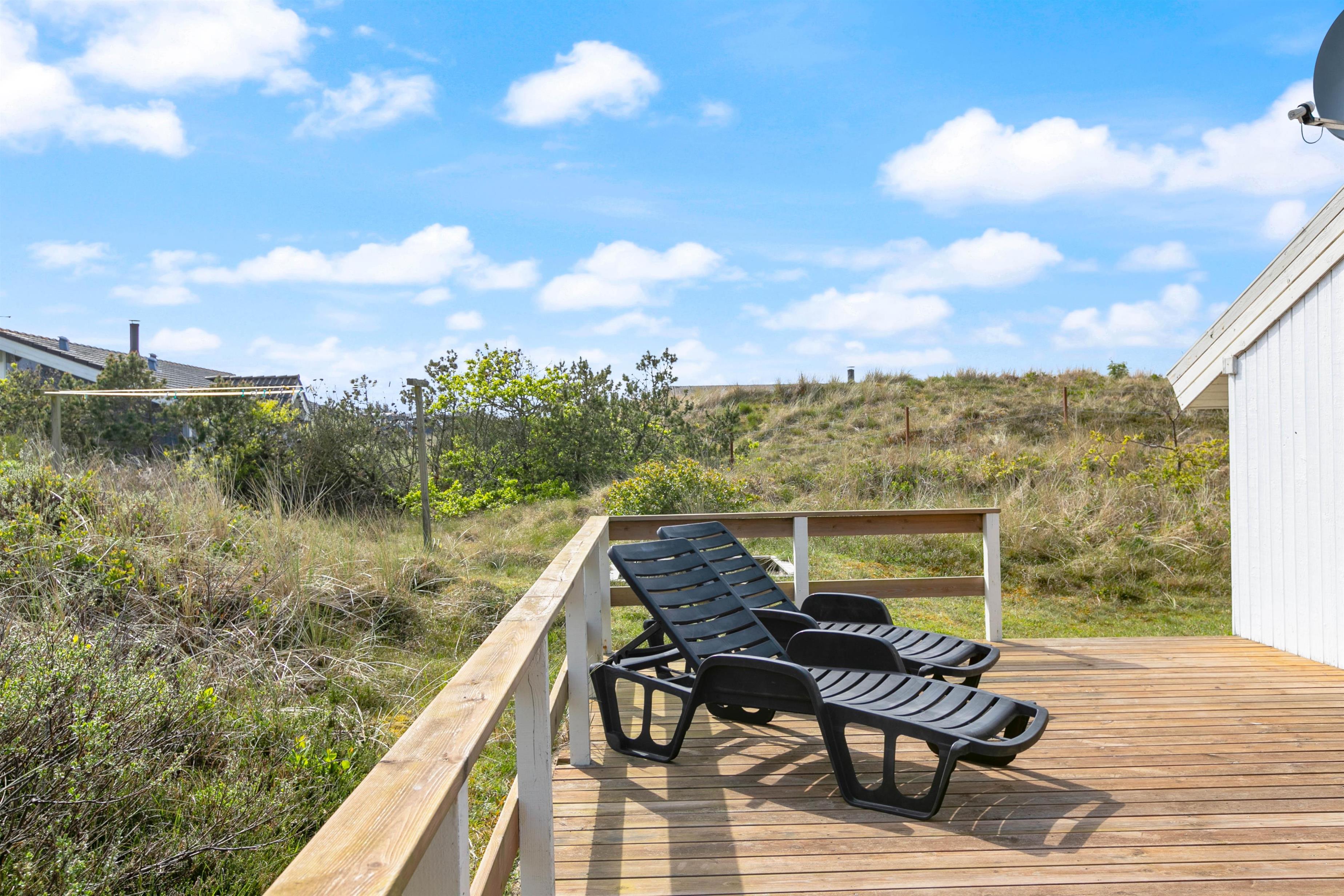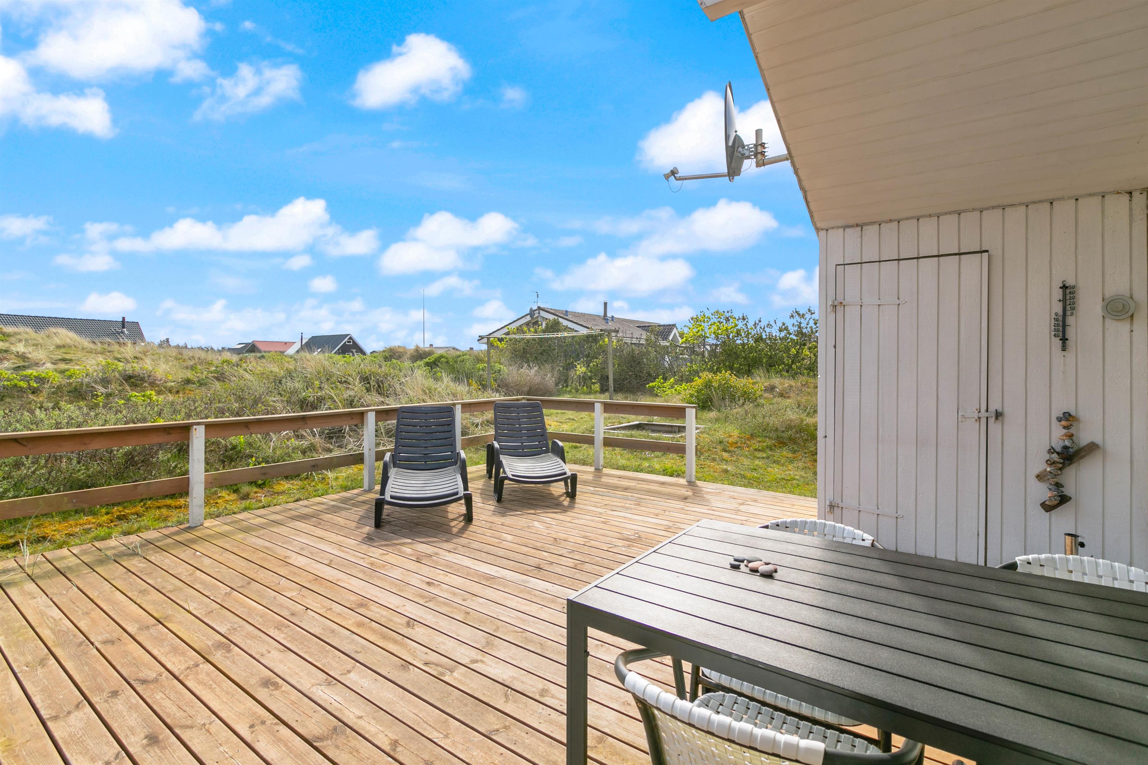 This holiday home features a truly lovely, partially covered and sheltered terrace with comfortable furniture for warm summer days. Take a nap in one of the sun loungers or enjoy a cosy evening with friends and family.