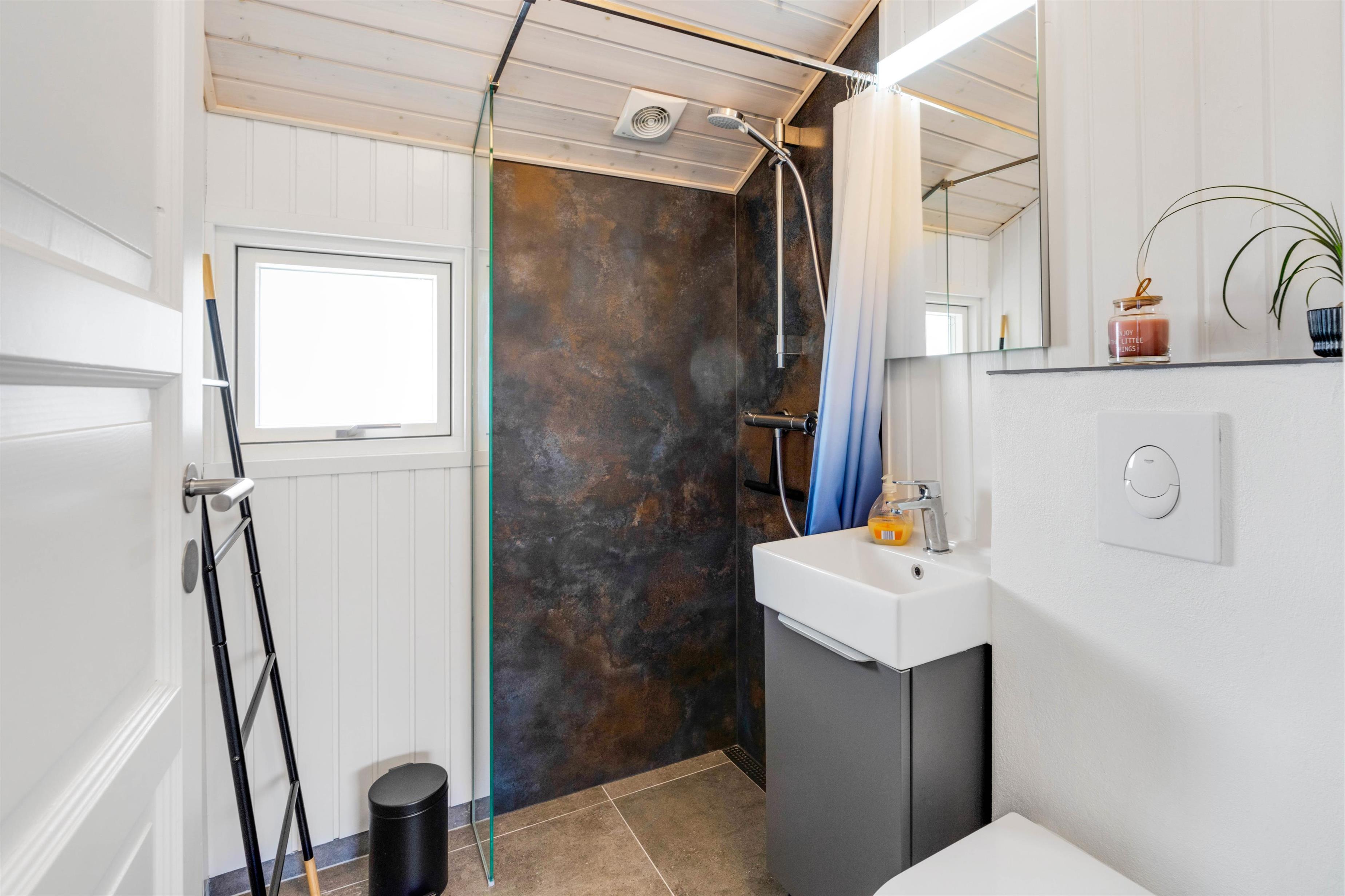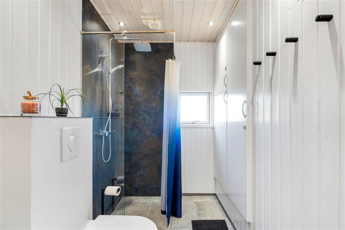 4 practically and comfortably furnished bedrooms ensure restful nights. The holiday home has 2 shower rooms. The bathrooms feature underfloor heating, while the living space is heated by both the wood-burning stove and a heat pump.