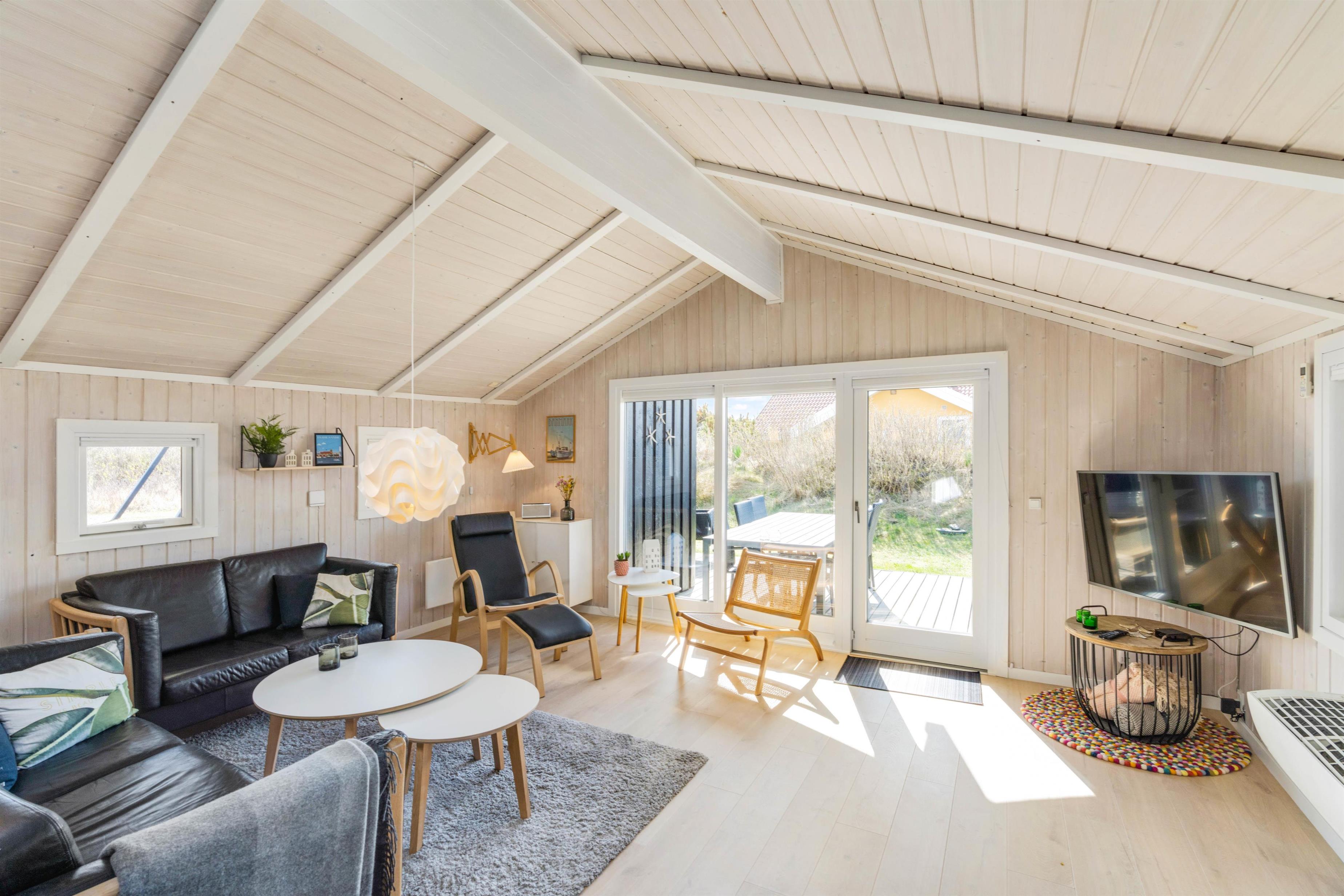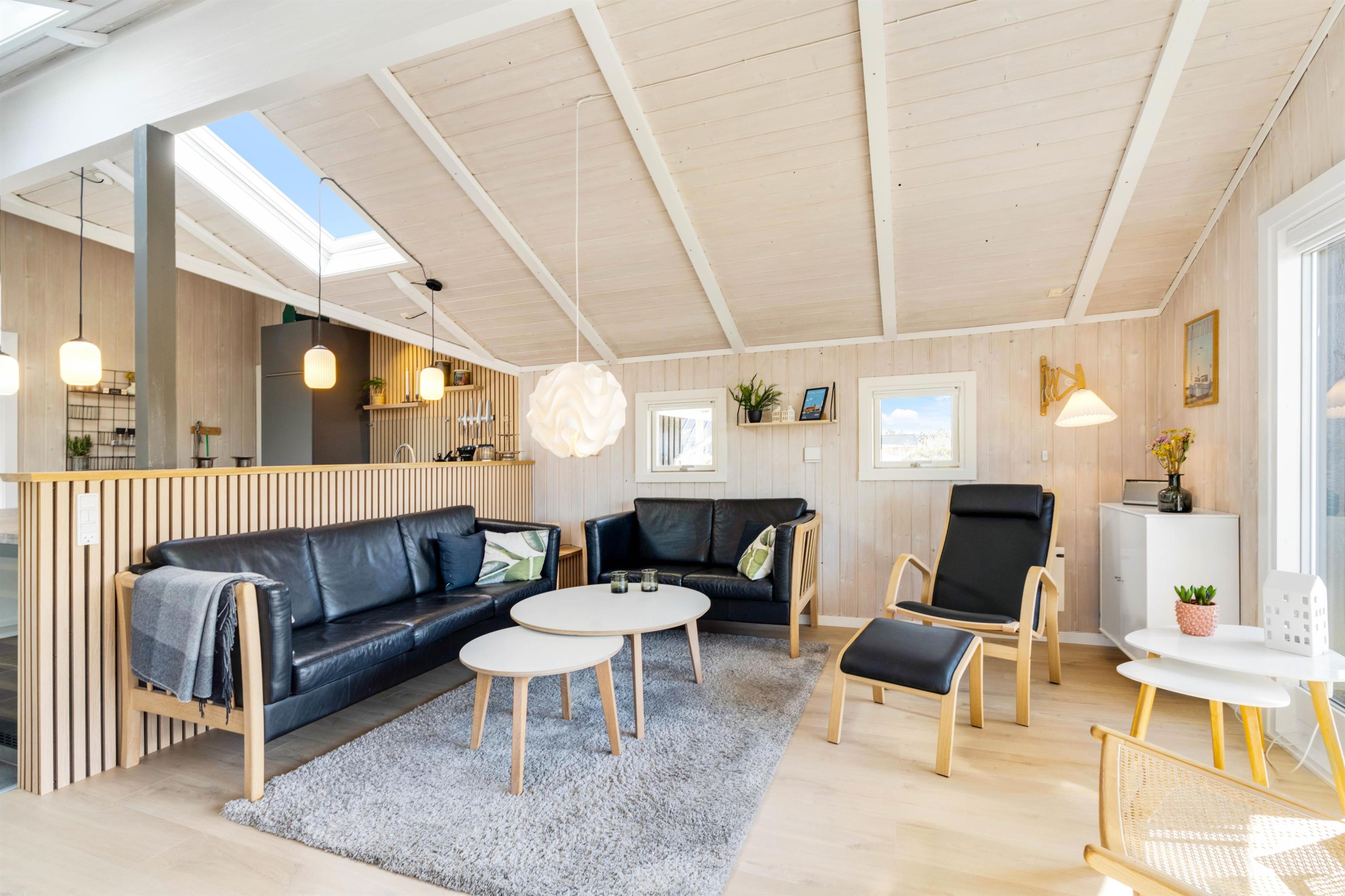The entire house has been furnished in a modern, tasteful style, with light colours and wood-clad ceilings and walls creating an inviting atmosphere.