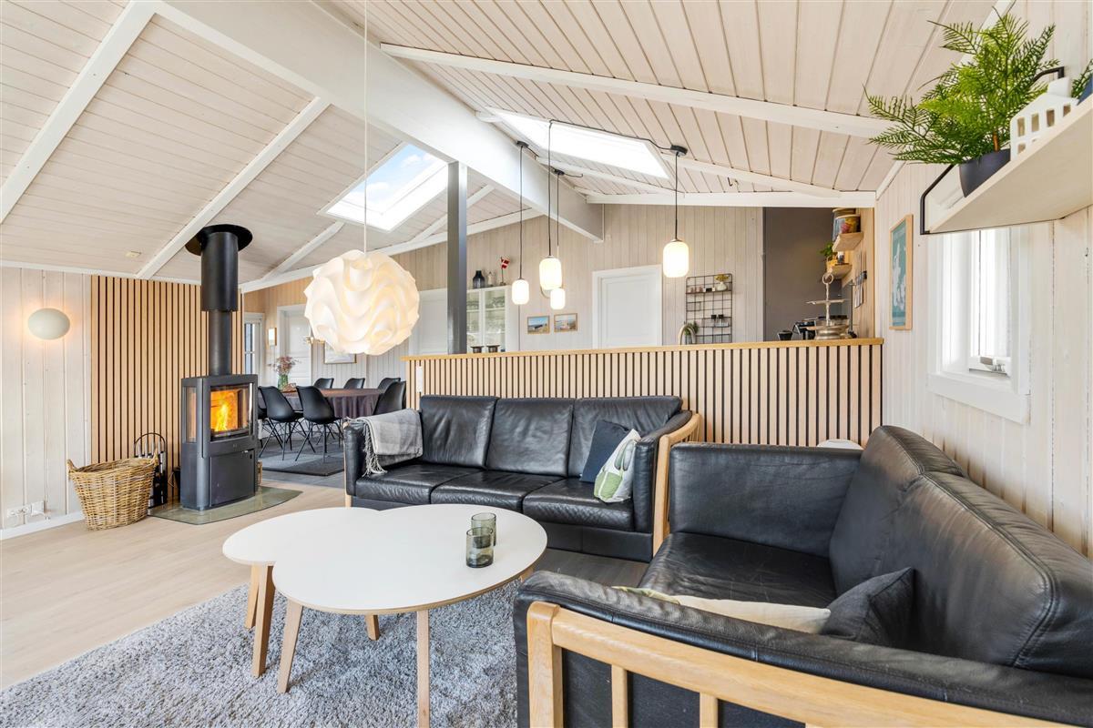 Baunebjergvej 11 - Open-plan living area with wood-burning stove