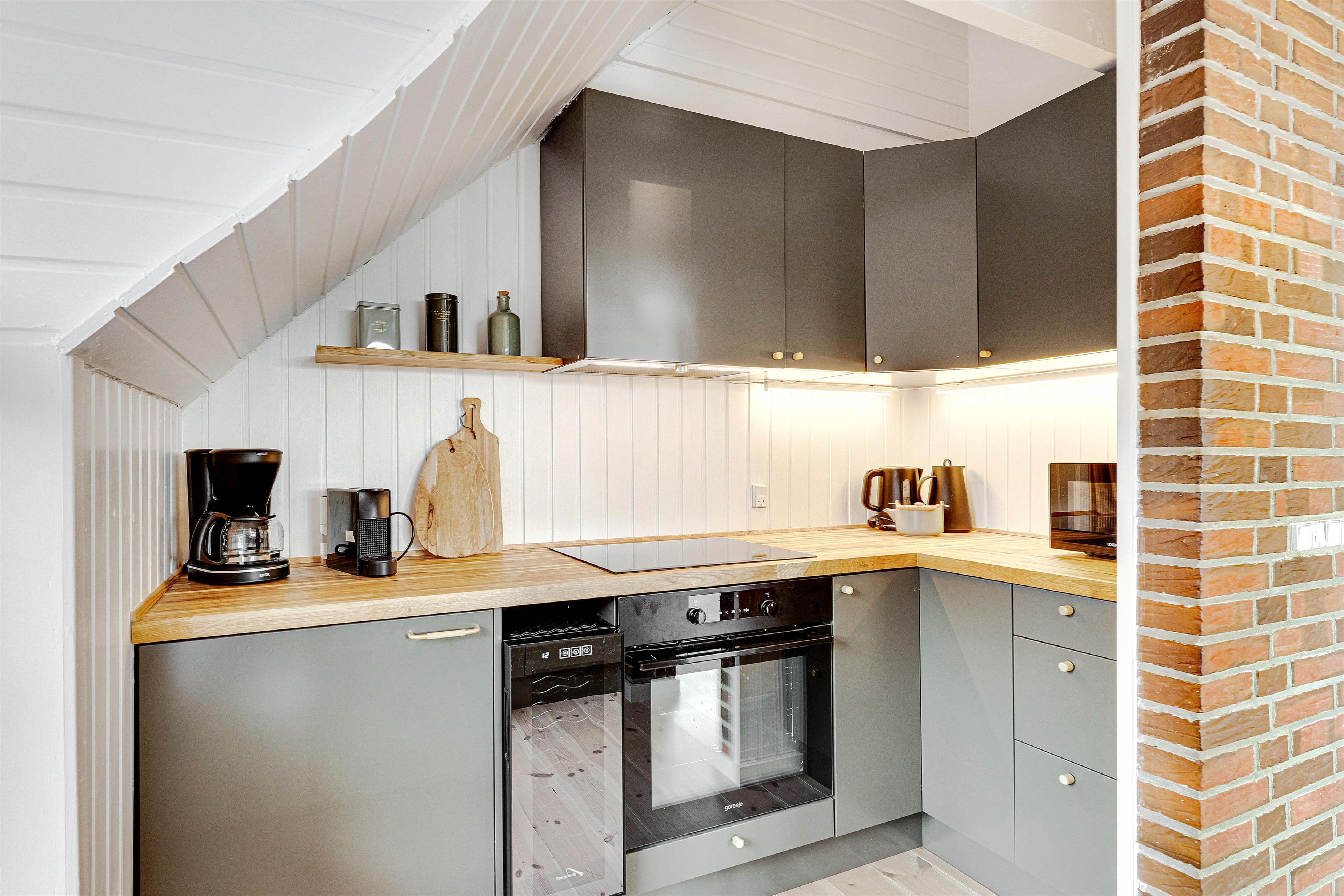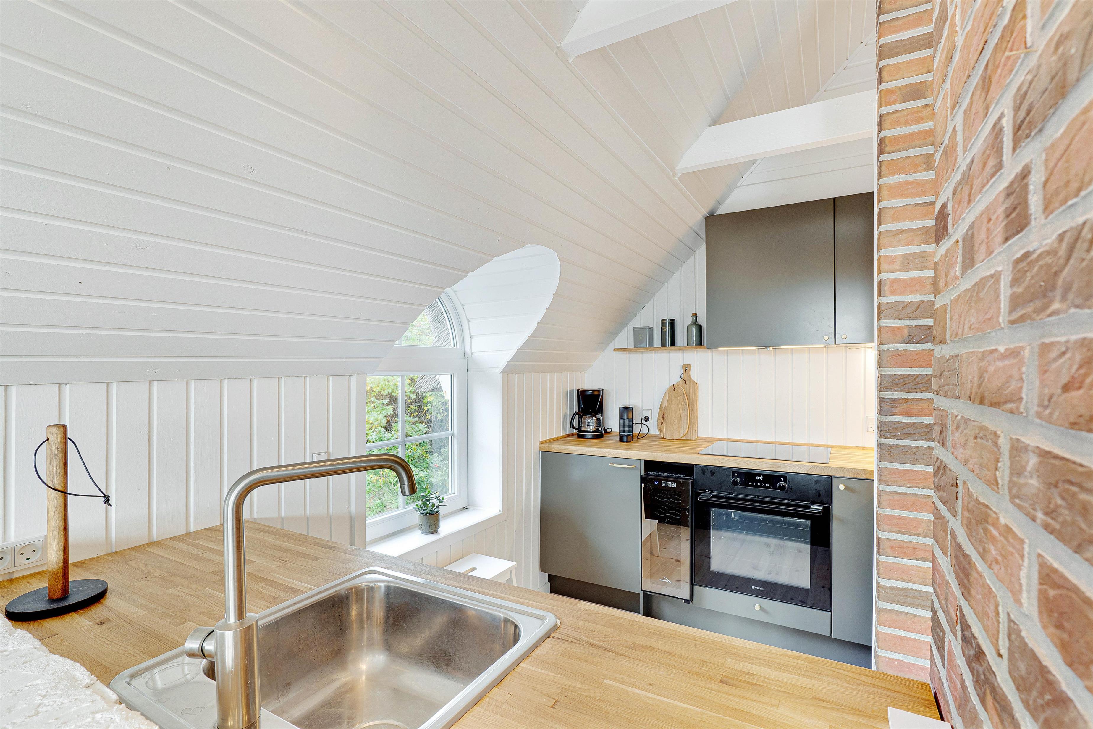 While younger guests make themselves comfortable in the mezzanine watching their favourite films, cooking enthusiasts can prepare delicious meals in the well-equipped kitchen. A dishwasher takes care of the cleaning up, and there's a wine cooler for your refreshments. You'll also find a large fridge (153 litres) and freezer (74 litres) in the shed.