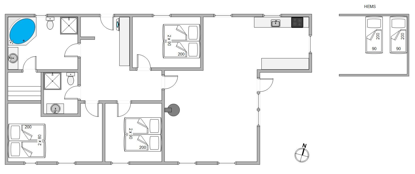 Instead, spend time relaxing in your private wellness area, located in the larger of the two bathrooms. The sauna invites you to enjoy extended sessions, while the whirlpool offers warm-water relaxation. The three bedrooms with double beds and an additional sleeping loft with two beds provide space for all family members.