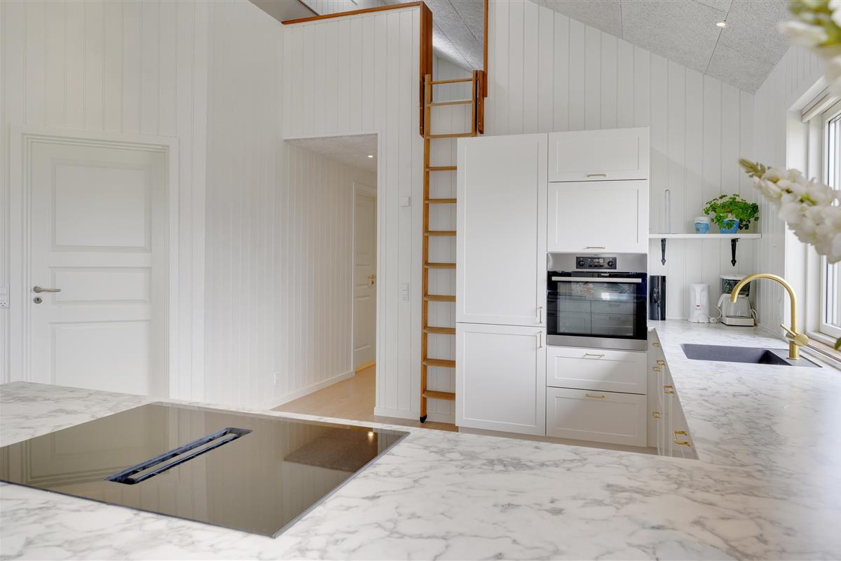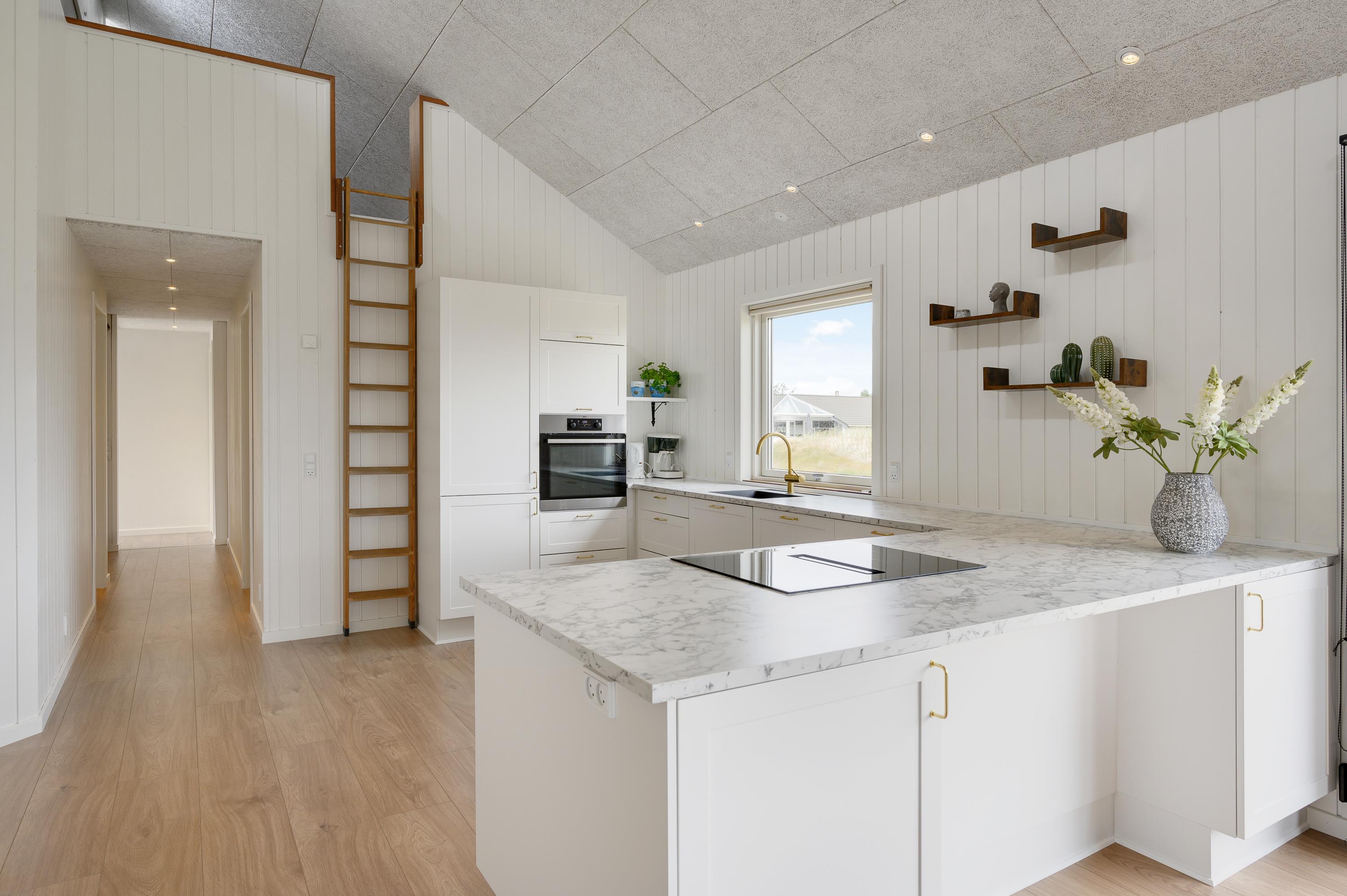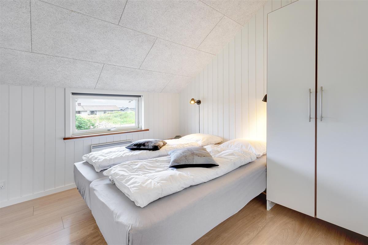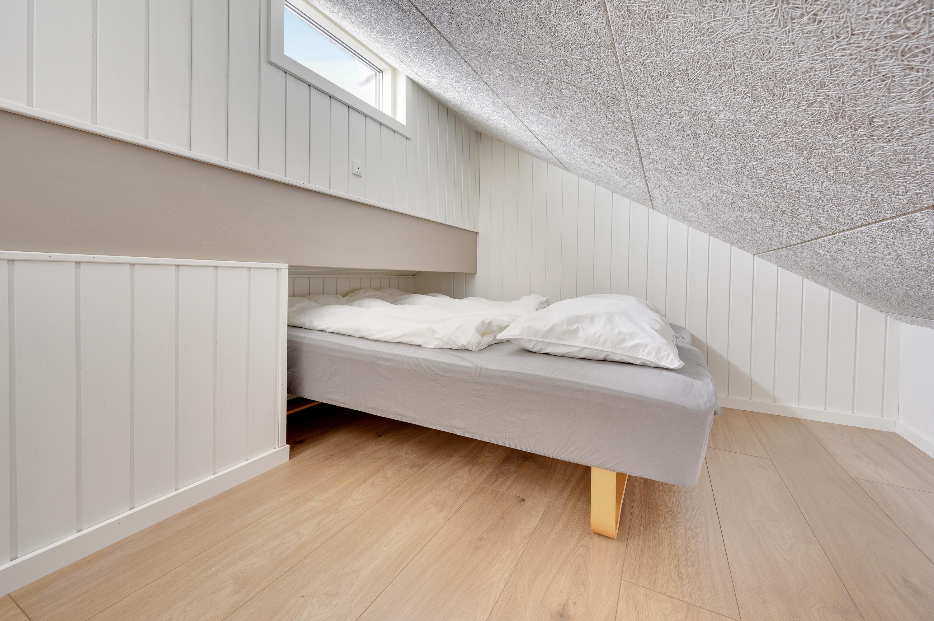 Your holiday home features modern, thoughtful furnishings. Multiple skylights and window fronts provide abundant natural light. For a restful night's sleep, the holiday home offers three bedrooms with two double beds and two single beds. Additionally, there's a comfortable mezzanine with two more cosy sleeping spaces.