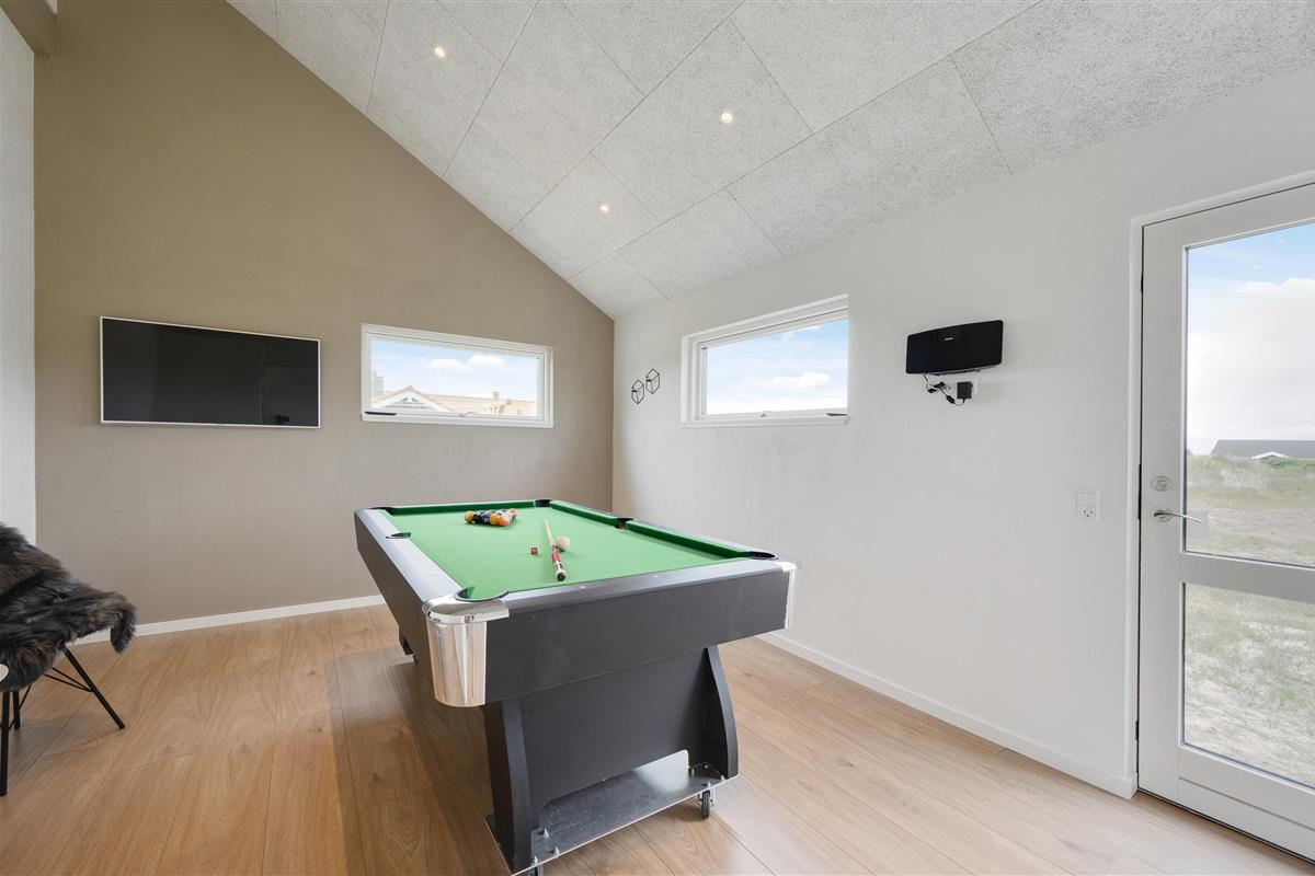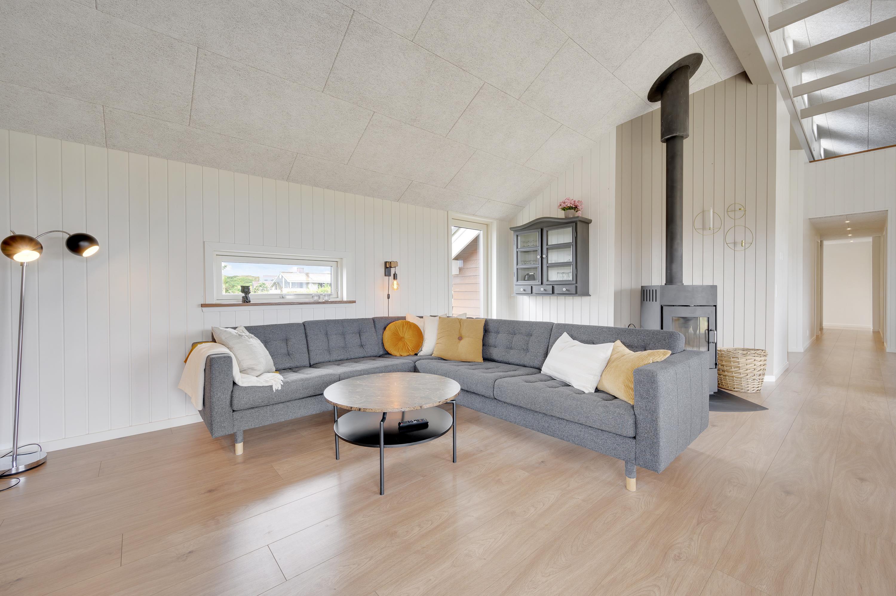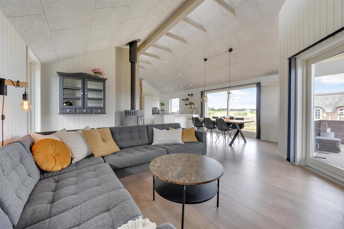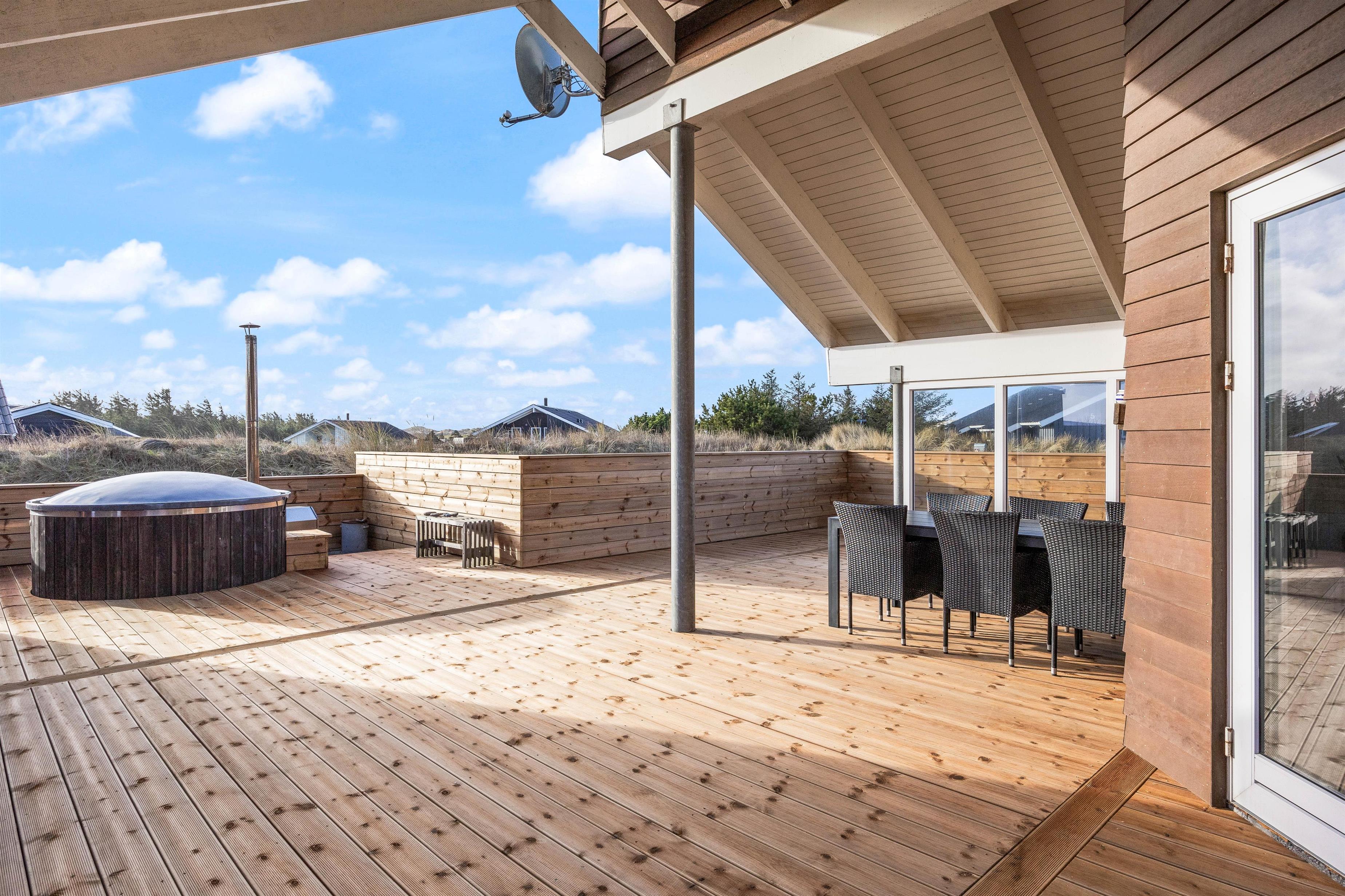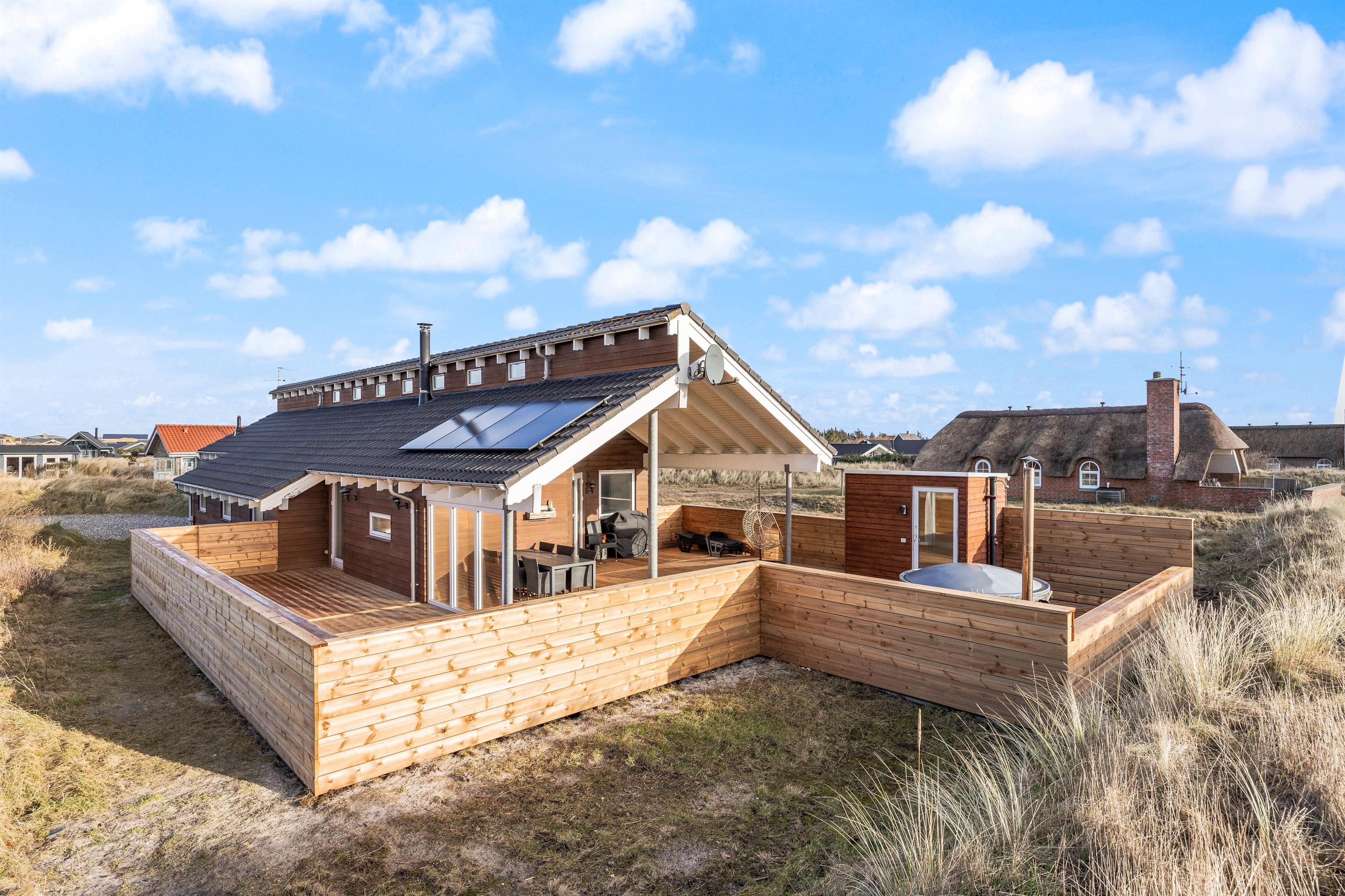 Welcome to your beautiful activity holiday home in the coastal resort of Haurvig, perfect for a relaxing break. This solar-powered, energy-efficient holiday home accommodates 8 people and welcomes two pets. Located just 750 metres from the Danish West Coast beach, you can enjoy a refreshing holiday with outdoor sauna, outdoor shower, and Nordic hot tub. The outdoor shower is available from April to November.