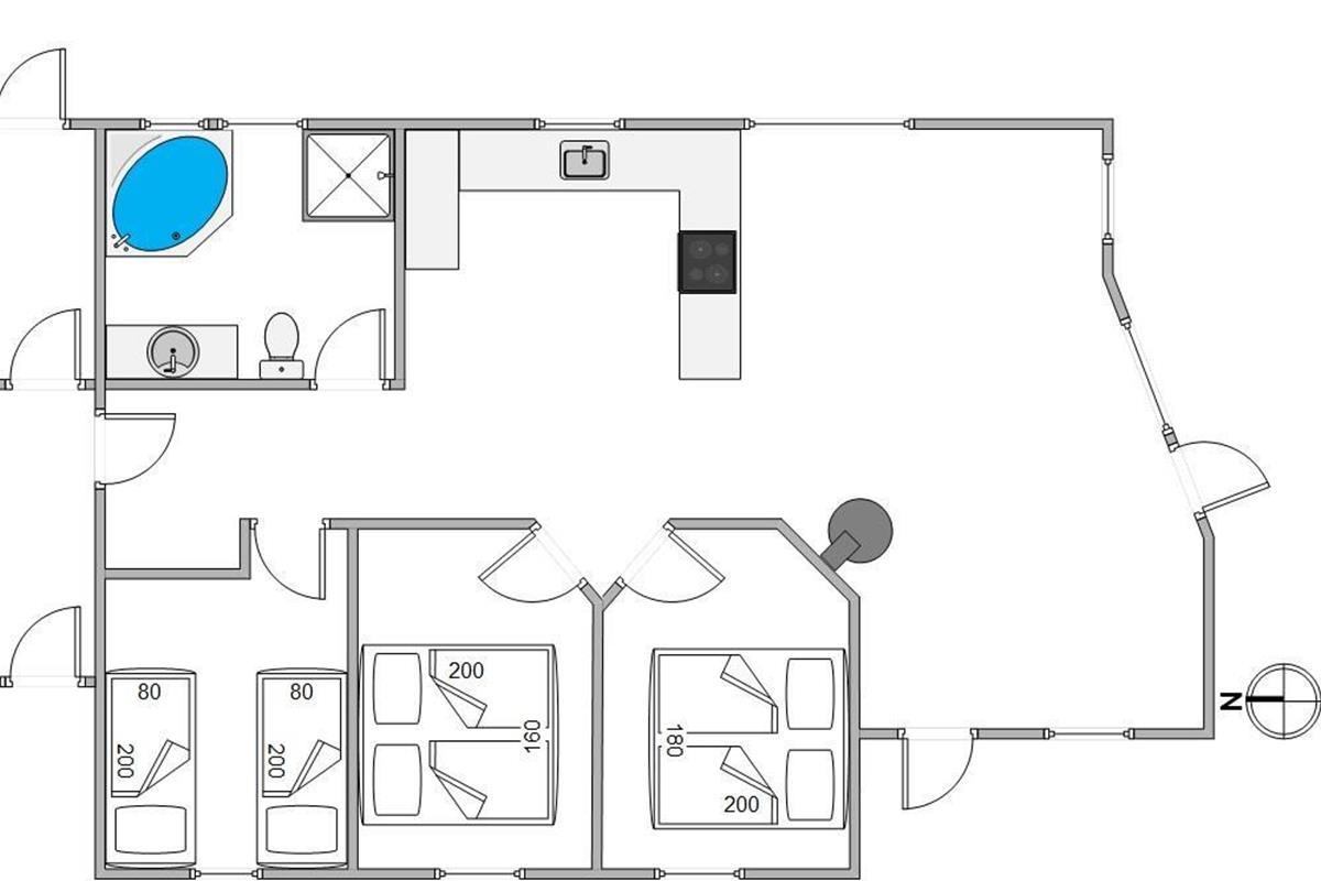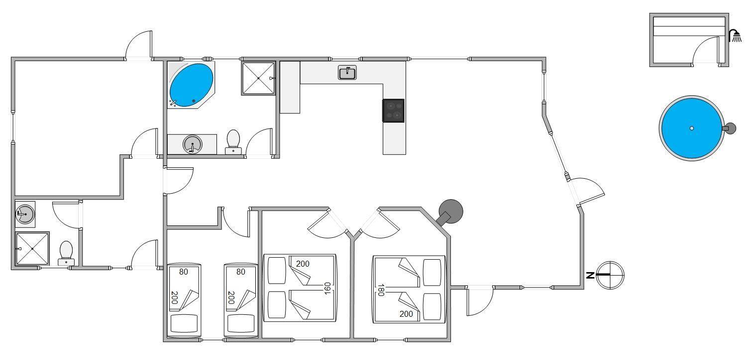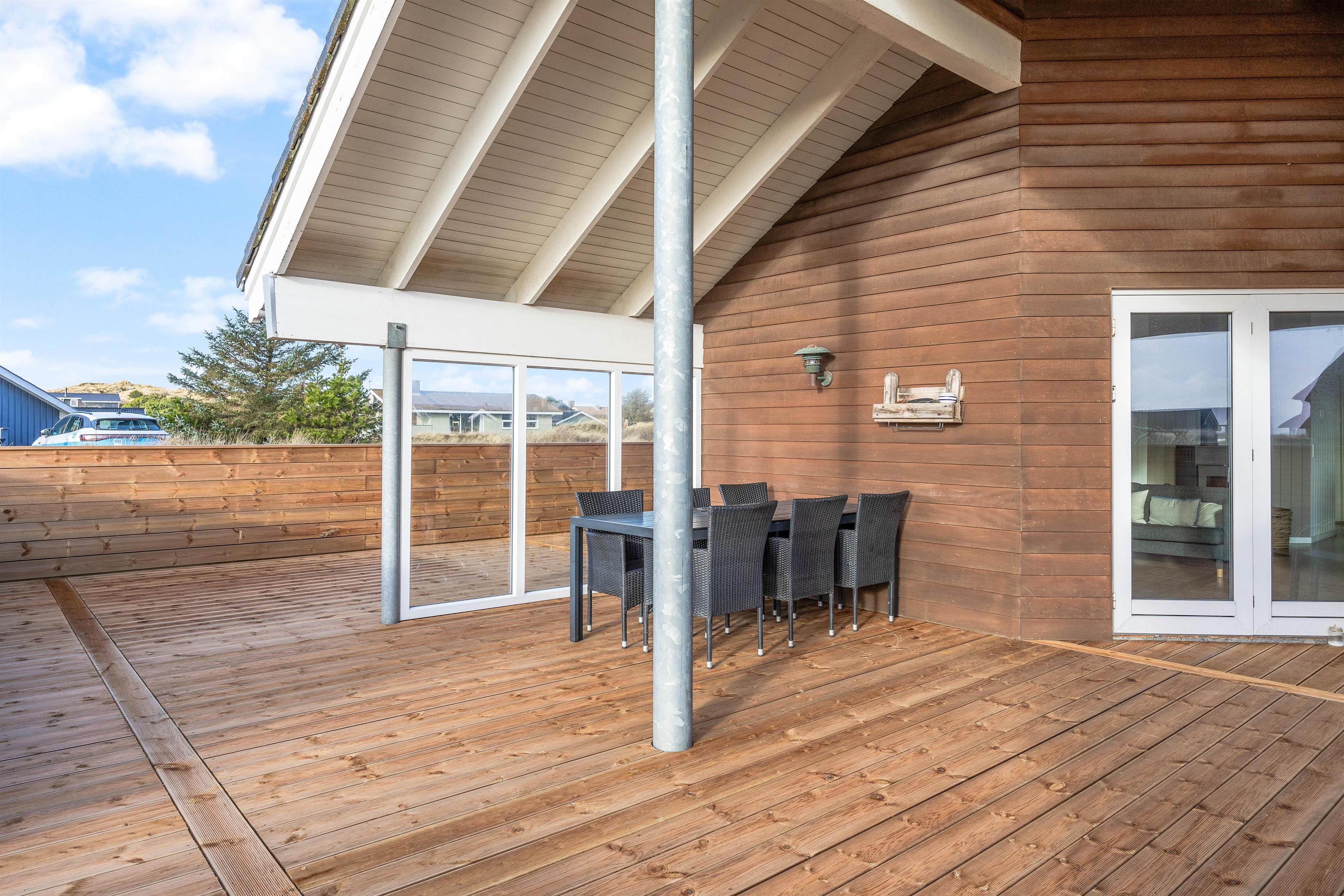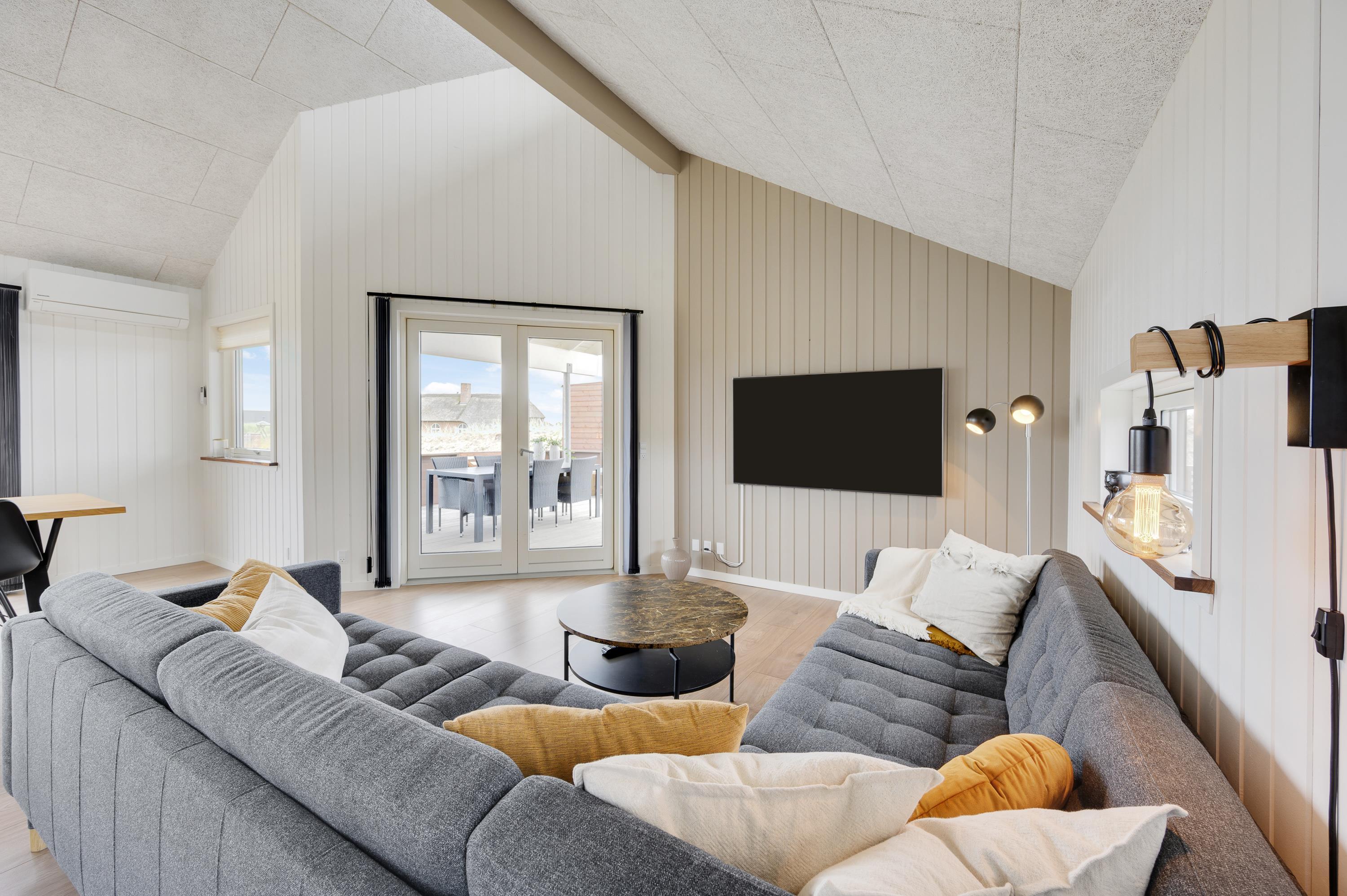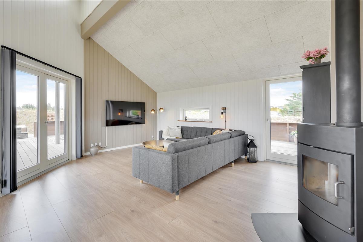 Welcome to your beautiful activity holiday home in the coastal resort of Haurvig, perfect for a relaxing break. This solar-powered, energy-efficient holiday home accommodates 8 people and welcomes two pets. Located just 750 metres from the Danish West Coast beach, you can enjoy a refreshing holiday with outdoor sauna, outdoor shower, and Nordic hot tub. The outdoor shower is available from April to November.