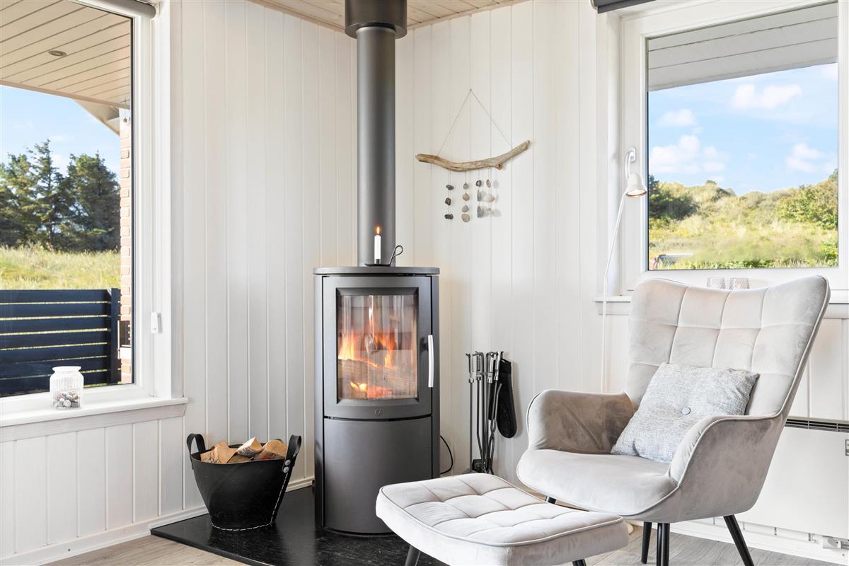 On cooler evenings, you can light the wood-burning stove and get cosy with a glass of wine. The energy-efficient heat pump helps keep electricity costs low, even in winter.