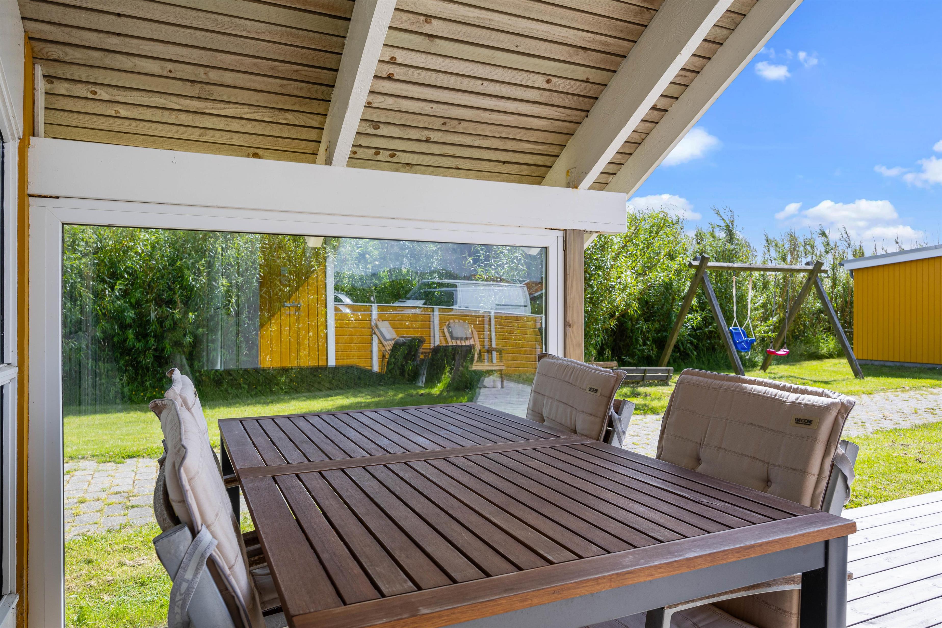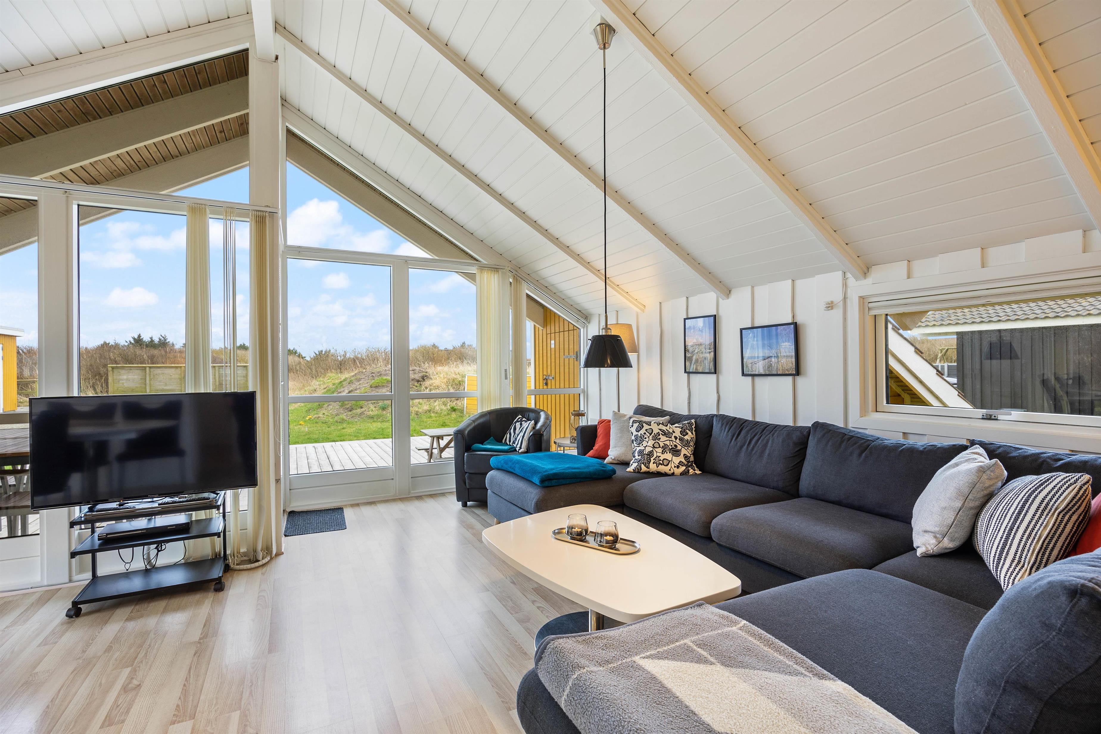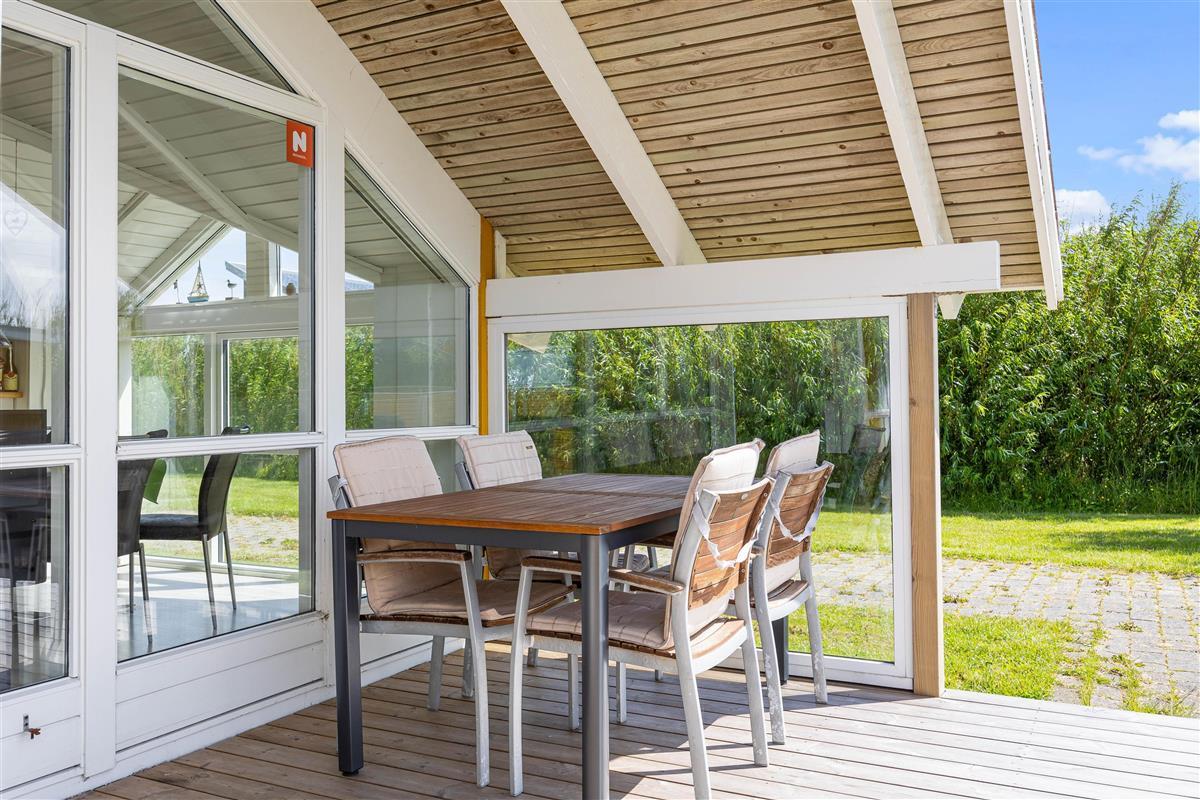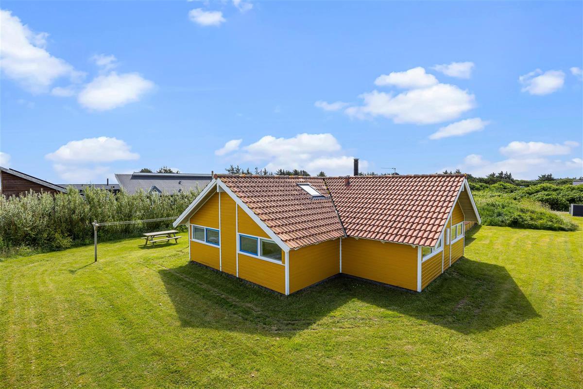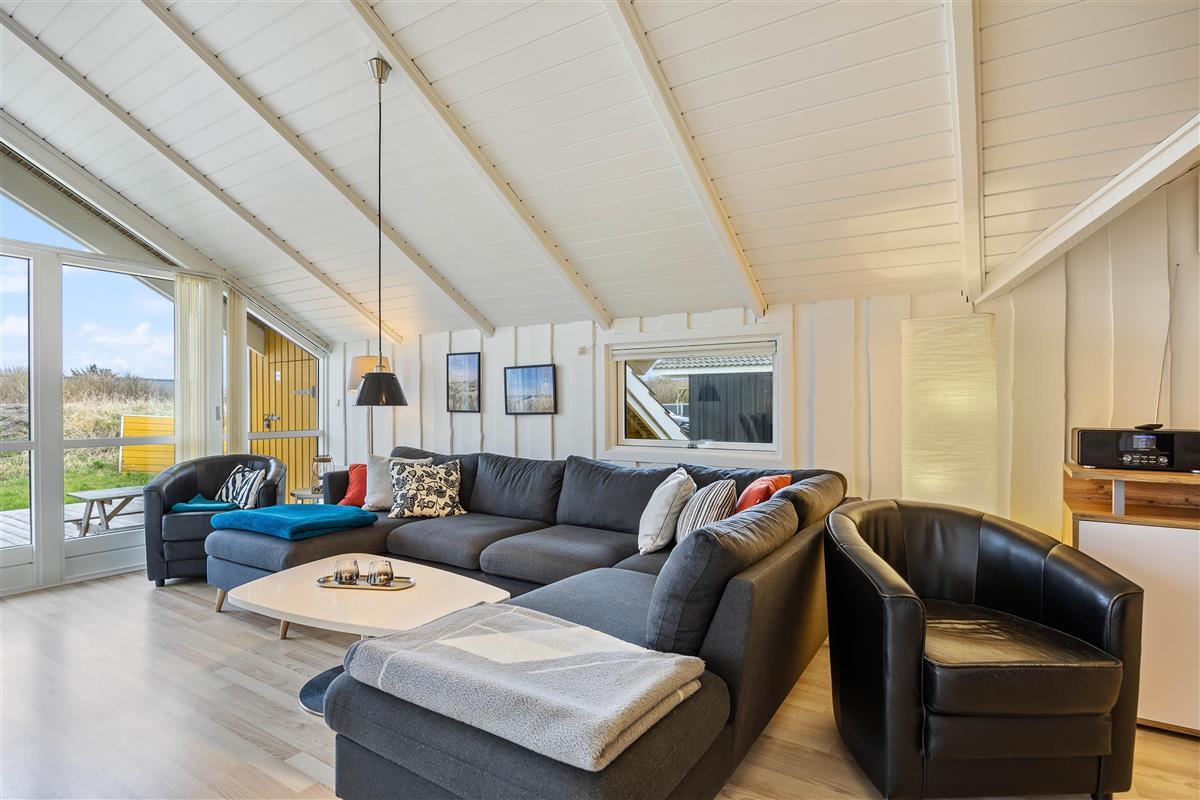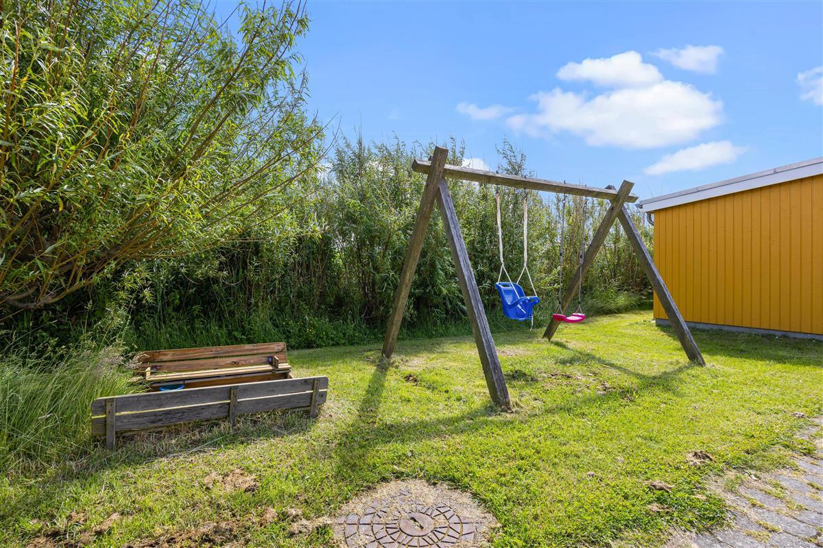 Outside, you can enjoy peace and quiet on the beautiful terrace. Garden furniture and sun loungers await you - and the partially covered terrace offers both sunny and shaded spots. Enjoy the salty breeze and beautiful views across the wide meadows to Ringkøbing Fjord.