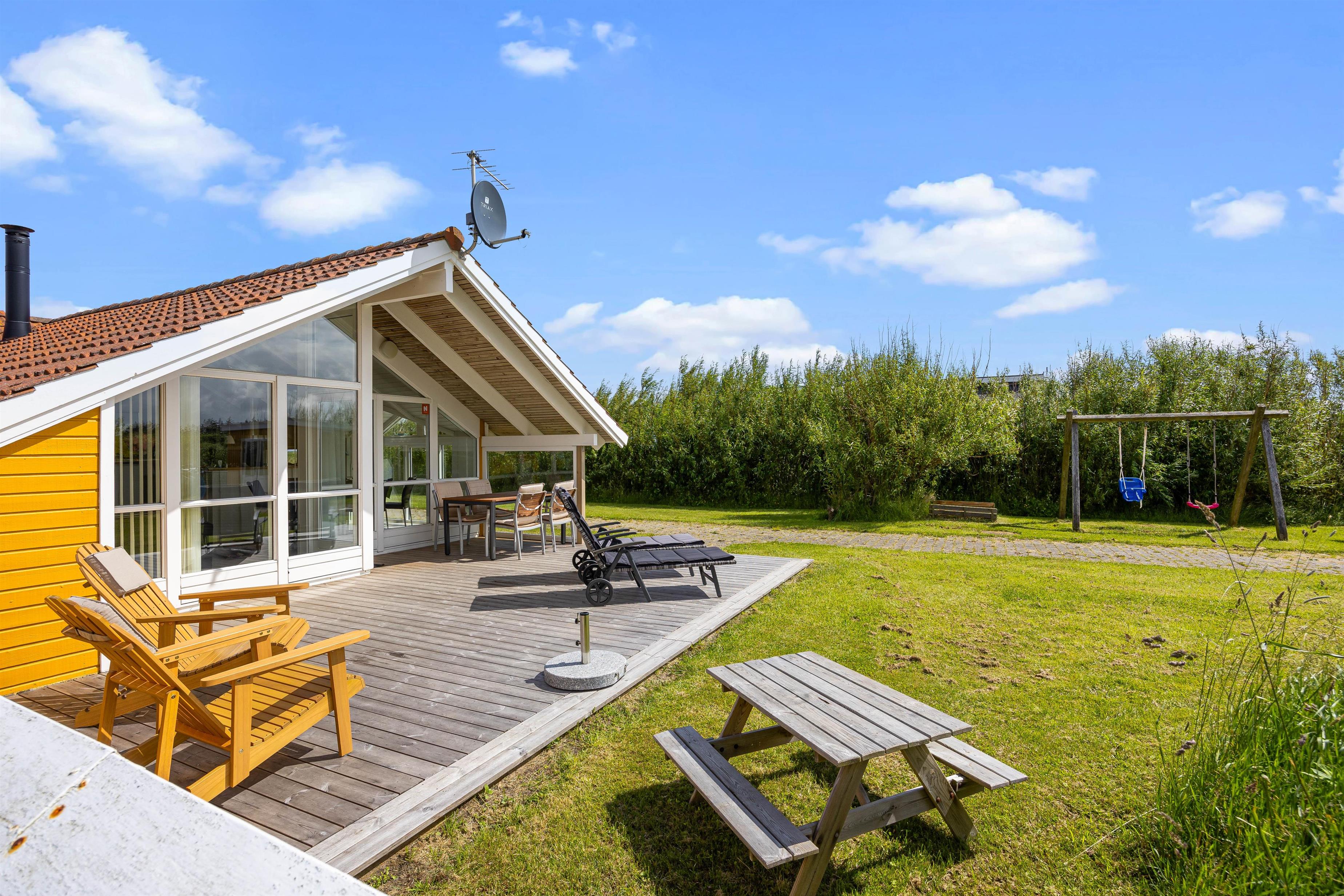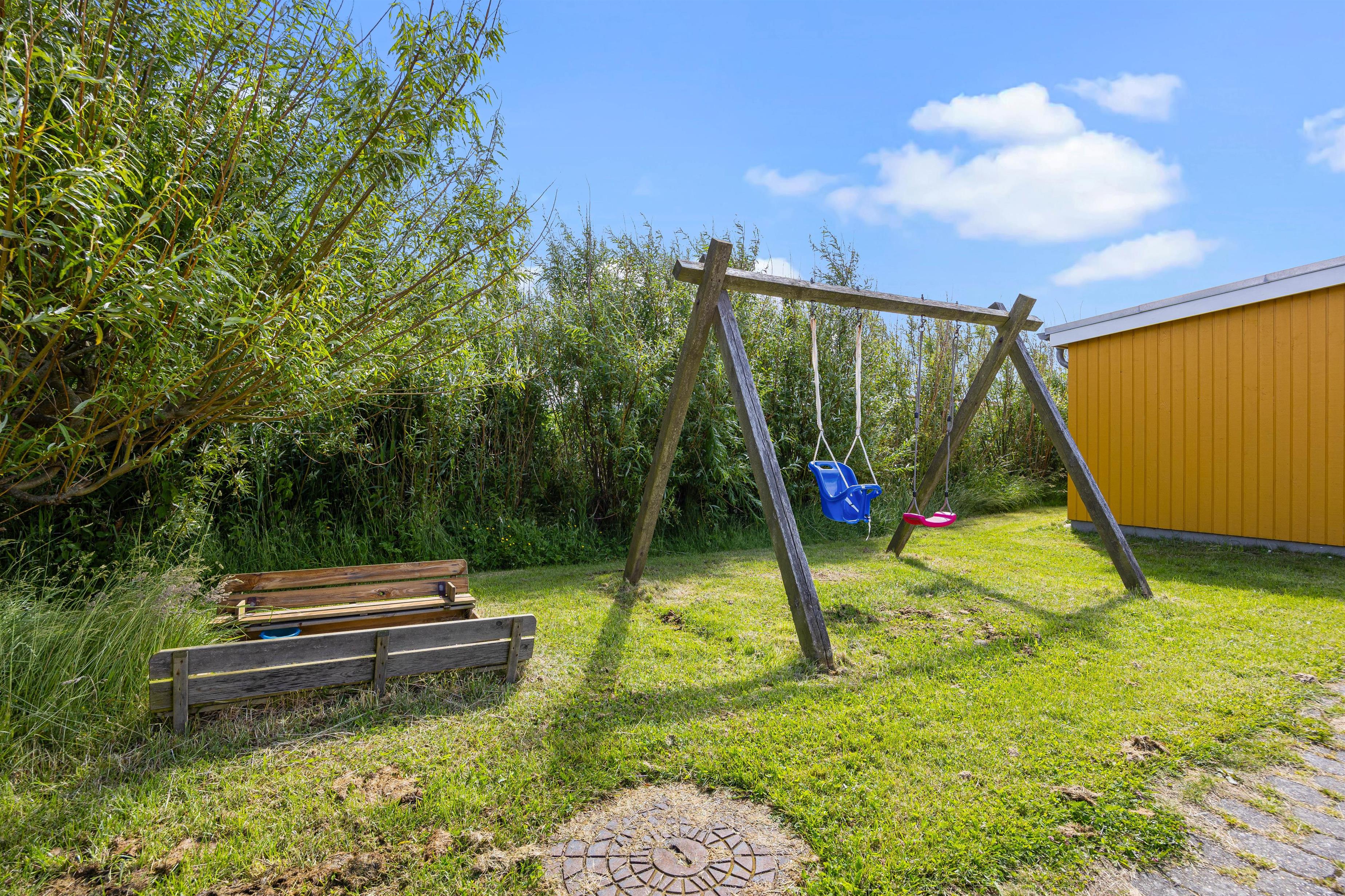 In the evening, the family's barbecue chef can fire up the grill while children play on the 1,200-square-metre grounds. There's plenty of space for ball games on the lawn, while little ones can enjoy themselves in the sandpit or on the swing.