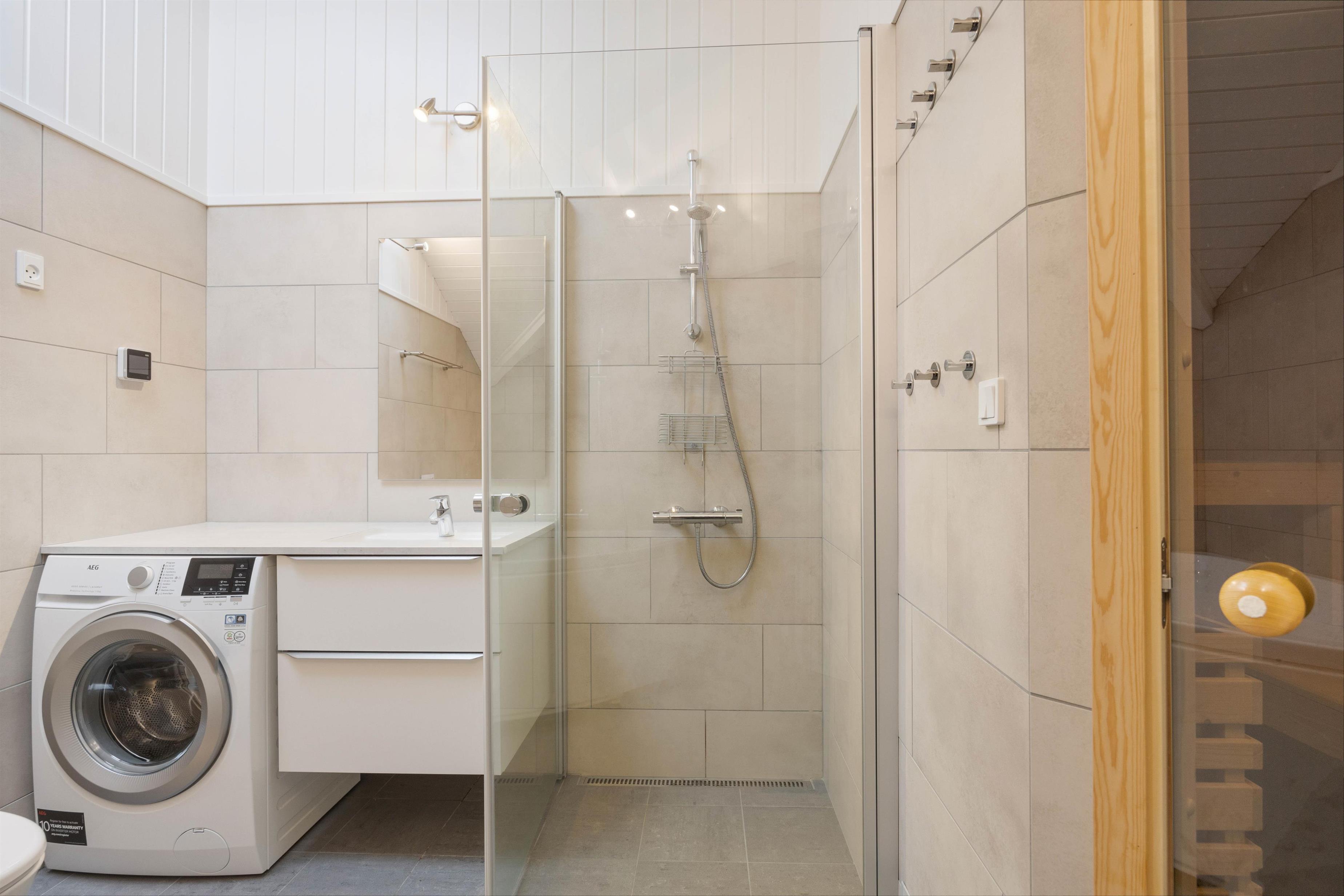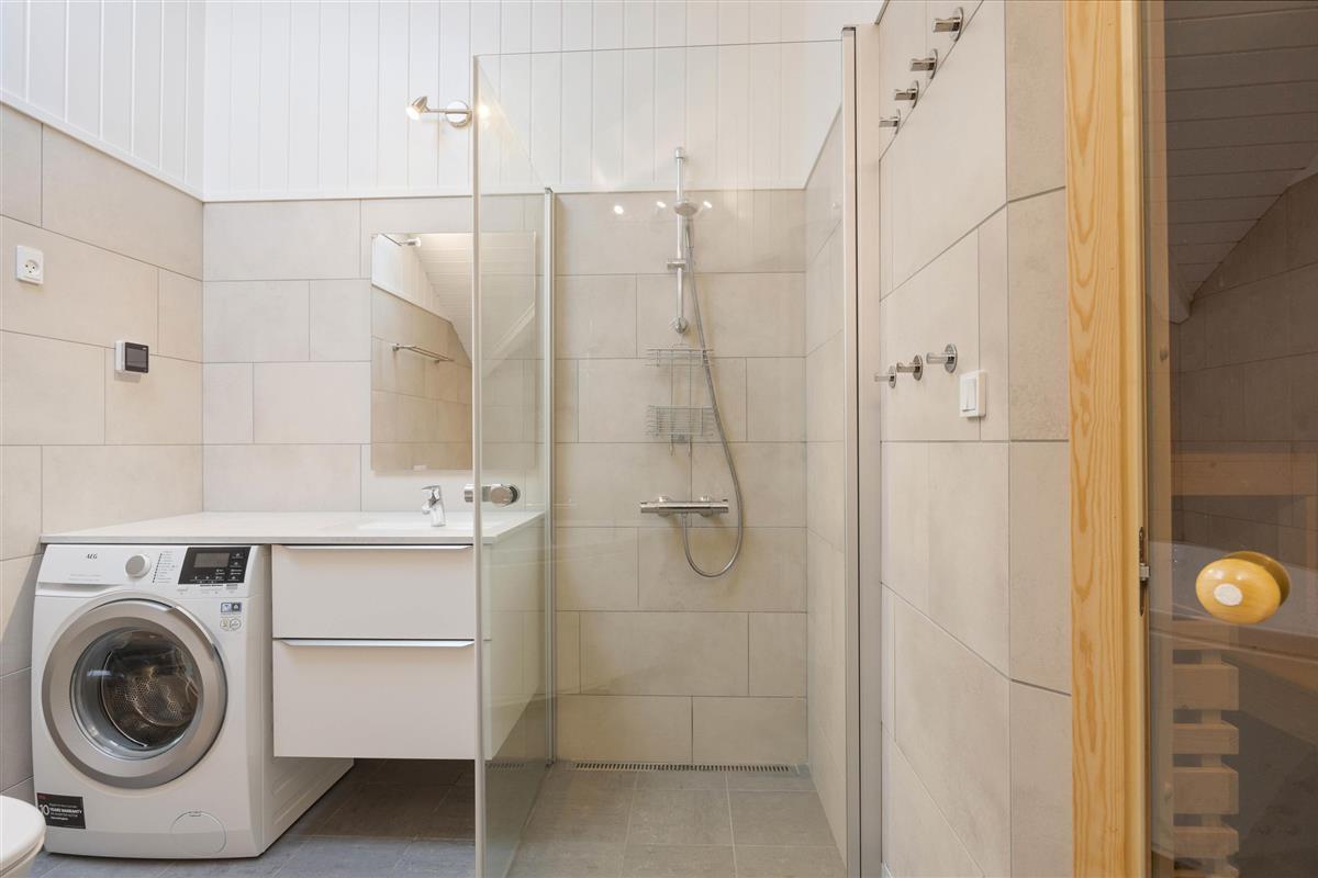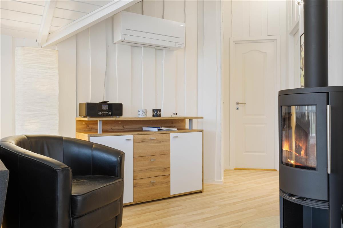 The well-equipped kitchen has everything you need for cooking, including a freezer, dishwasher and microwave. After a delicious dinner, you can relax in the living room with your favourite book or watch television together. For entertainment, there's high-speed fibre broadband and a Bluetooth speaker system, while the heat pump ensures a comfortable temperature. To crown it all, you can light up the wood-burning stove.