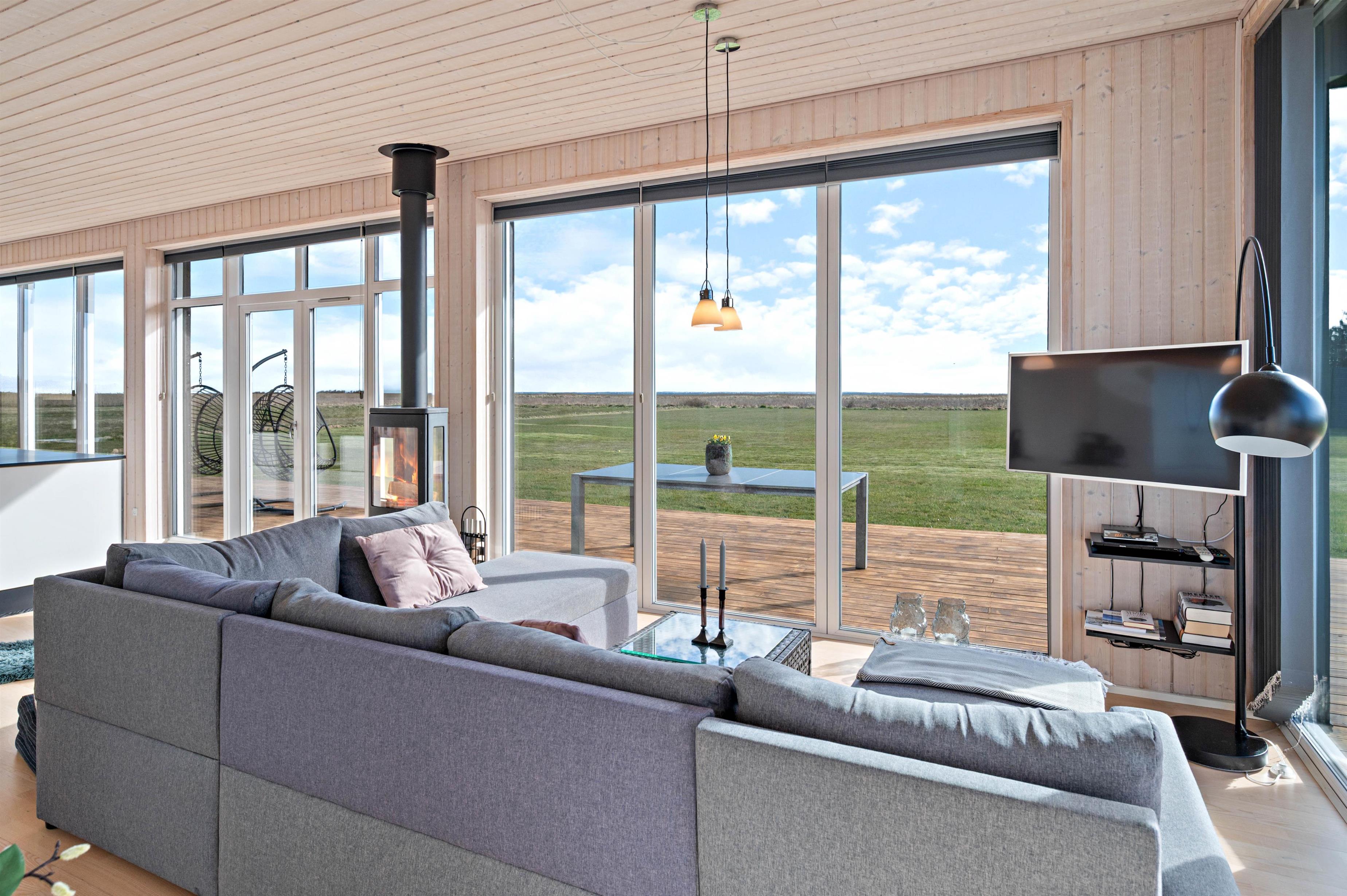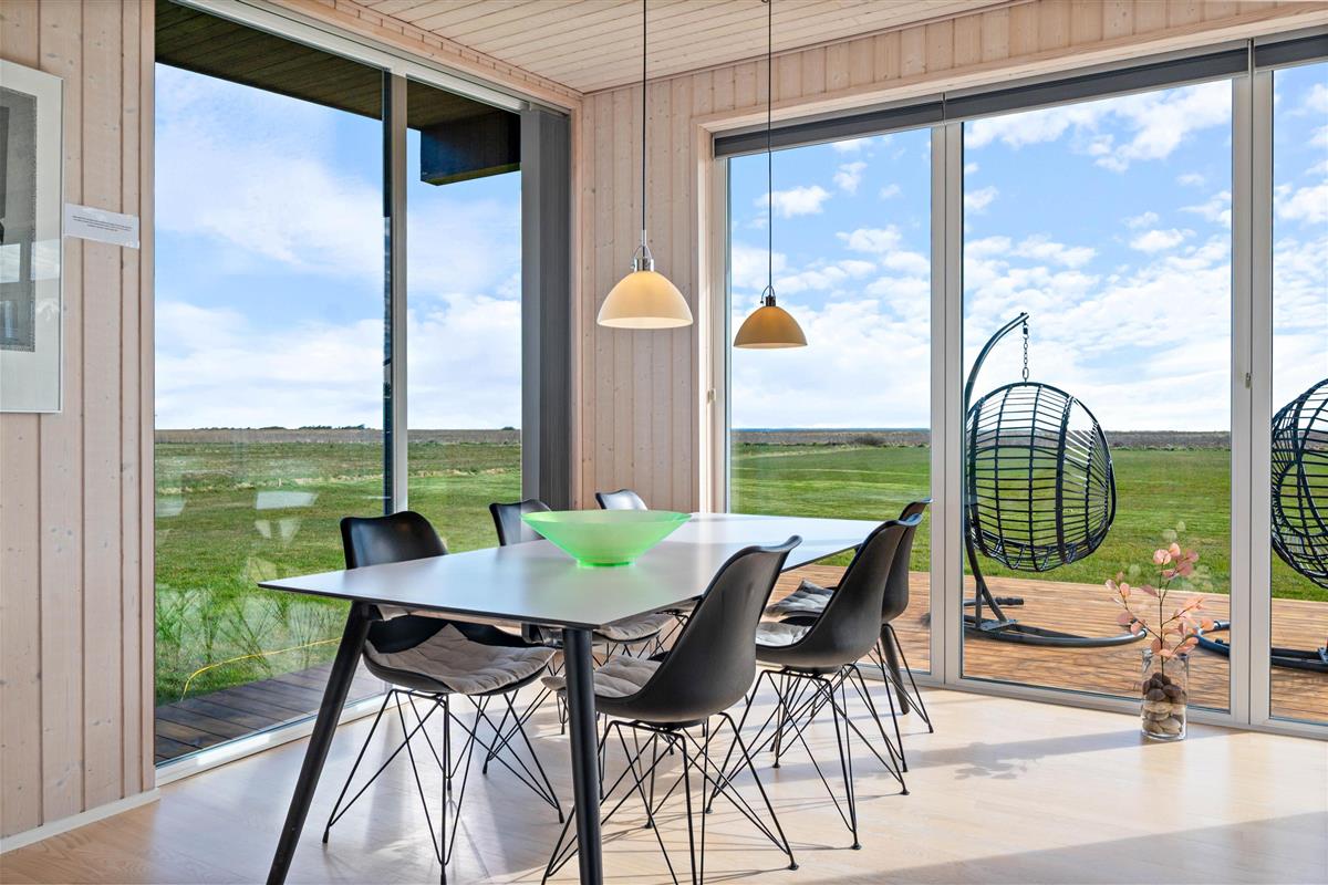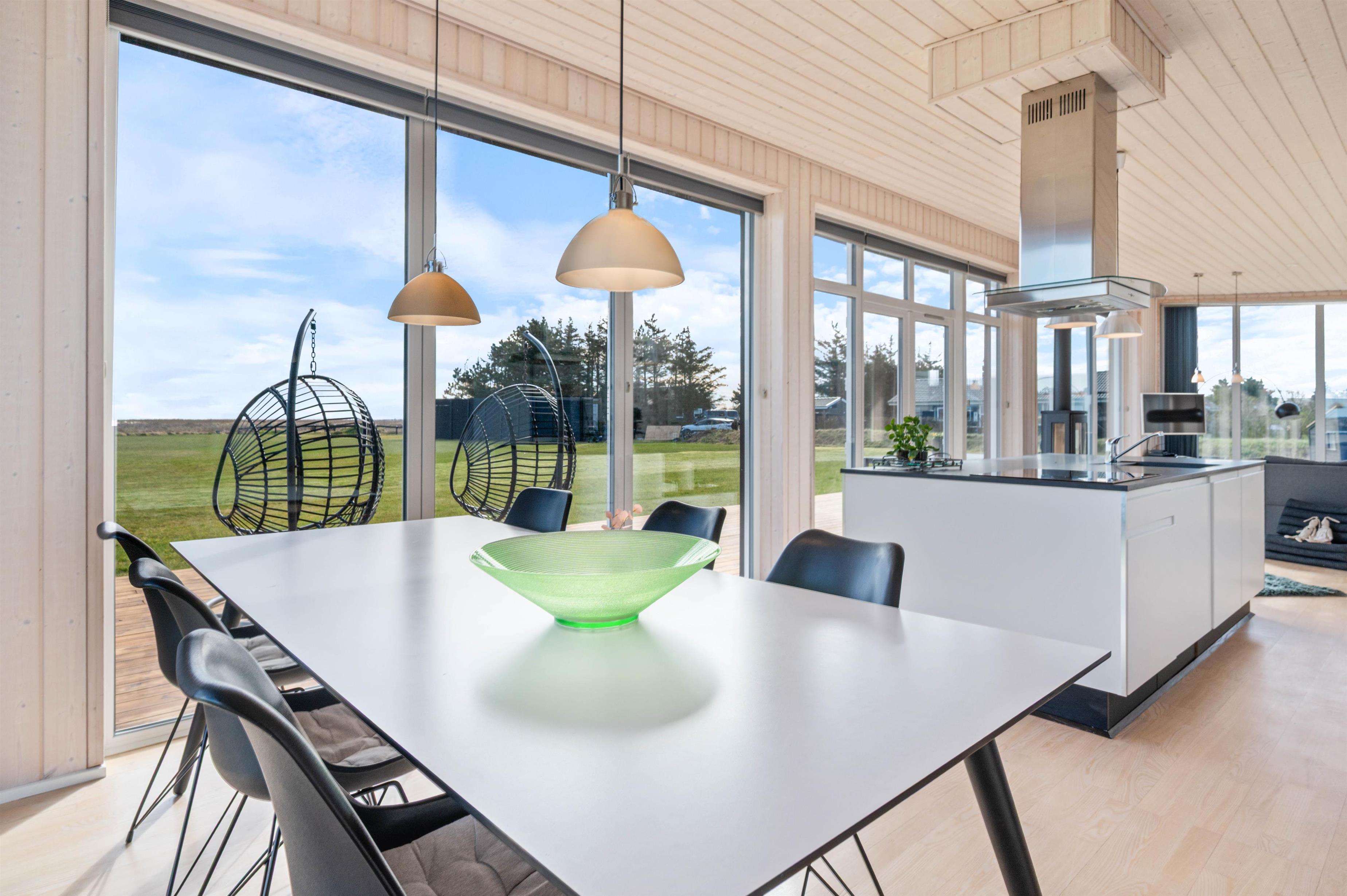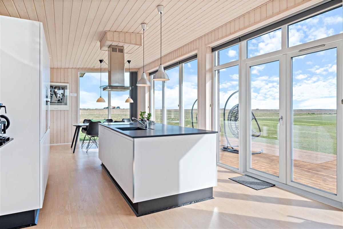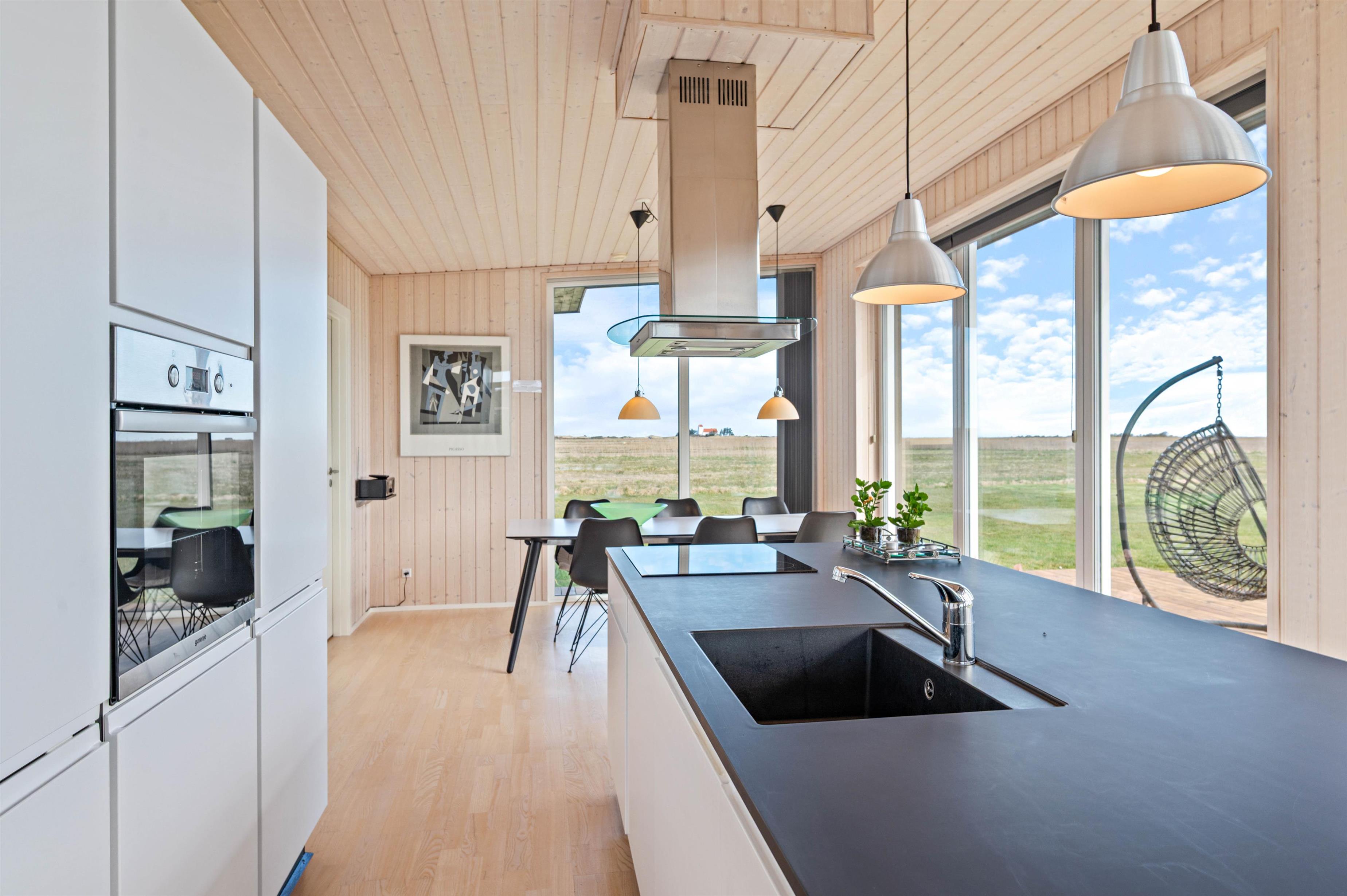 This bright, modern holiday home (built 2015) is practically furnished and offers 96 square metres of space for up to 6 people. At the heart of the house is the kitchen with its island unit, offering views of both the fantastic Ringkøbing Fjord and the cosy seating area with its large dining table.