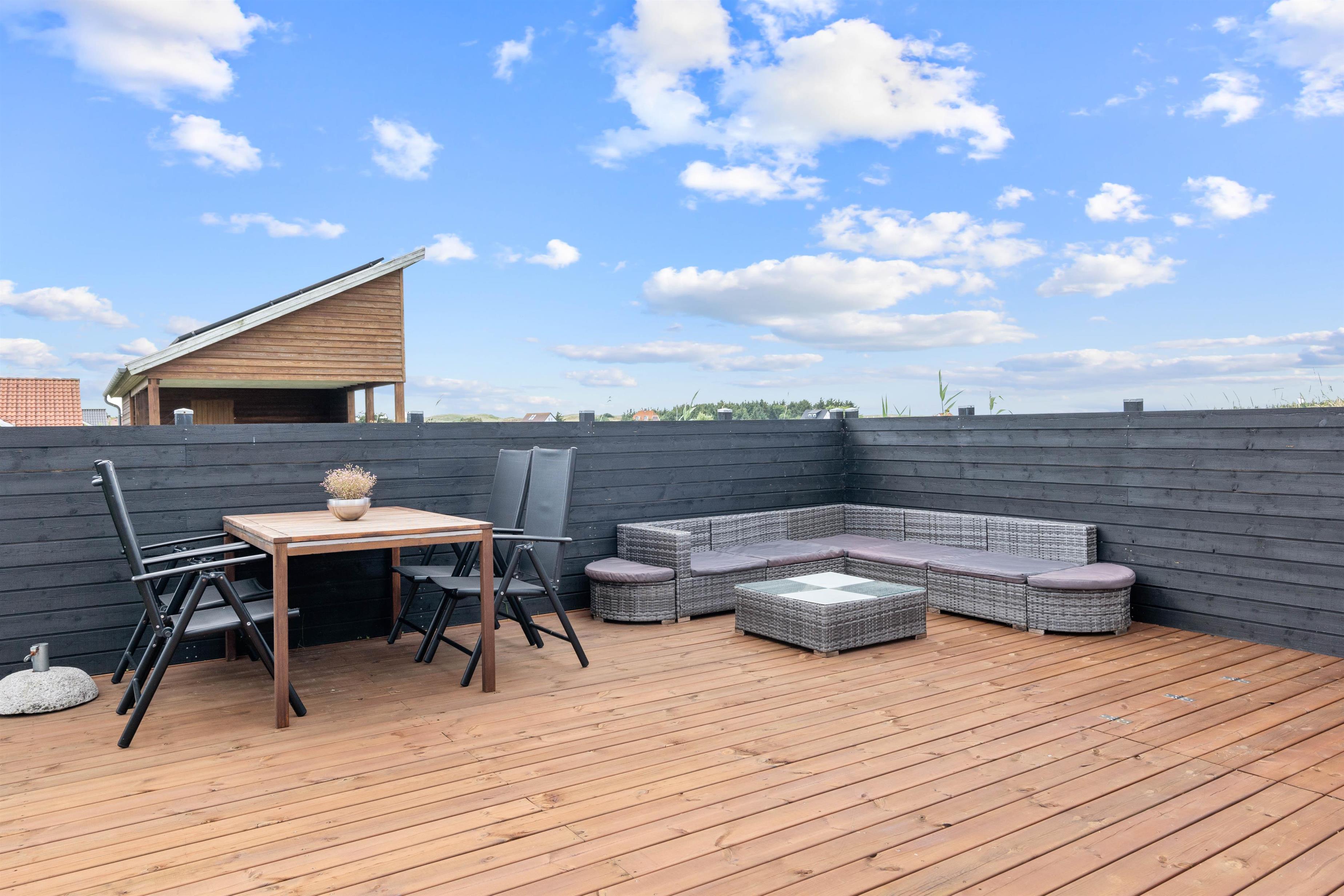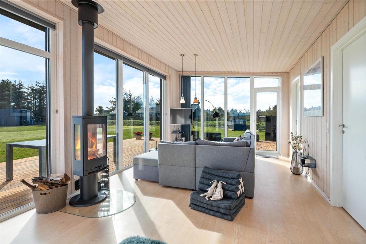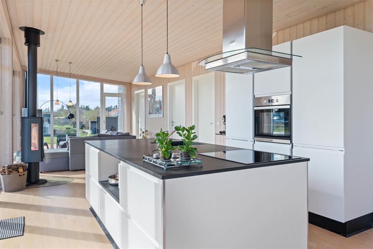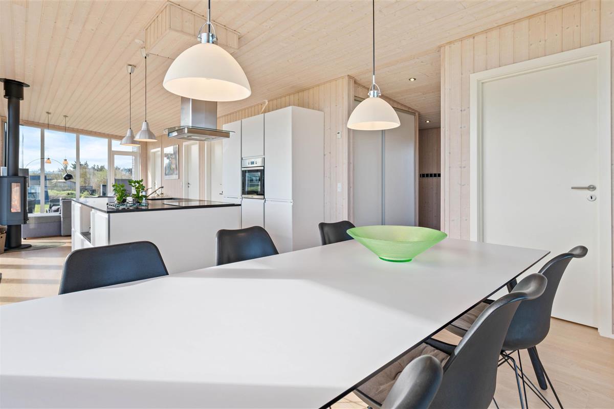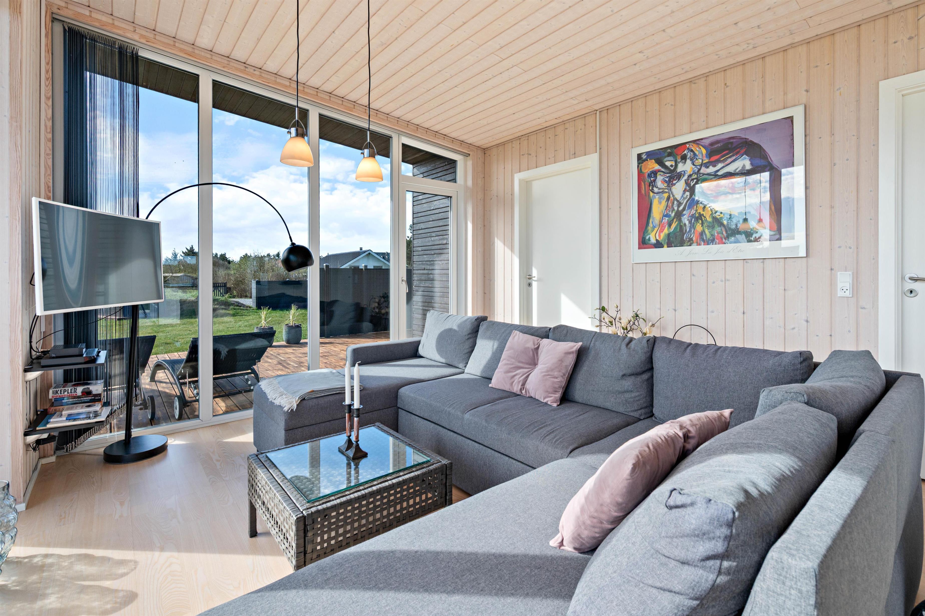 This bright, modern holiday home (built 2015) is practically furnished and offers 96 square metres of space for up to 6 people. At the heart of the house is the kitchen with its island unit, offering views of both the fantastic Ringkøbing Fjord and the cosy seating area with its large dining table.