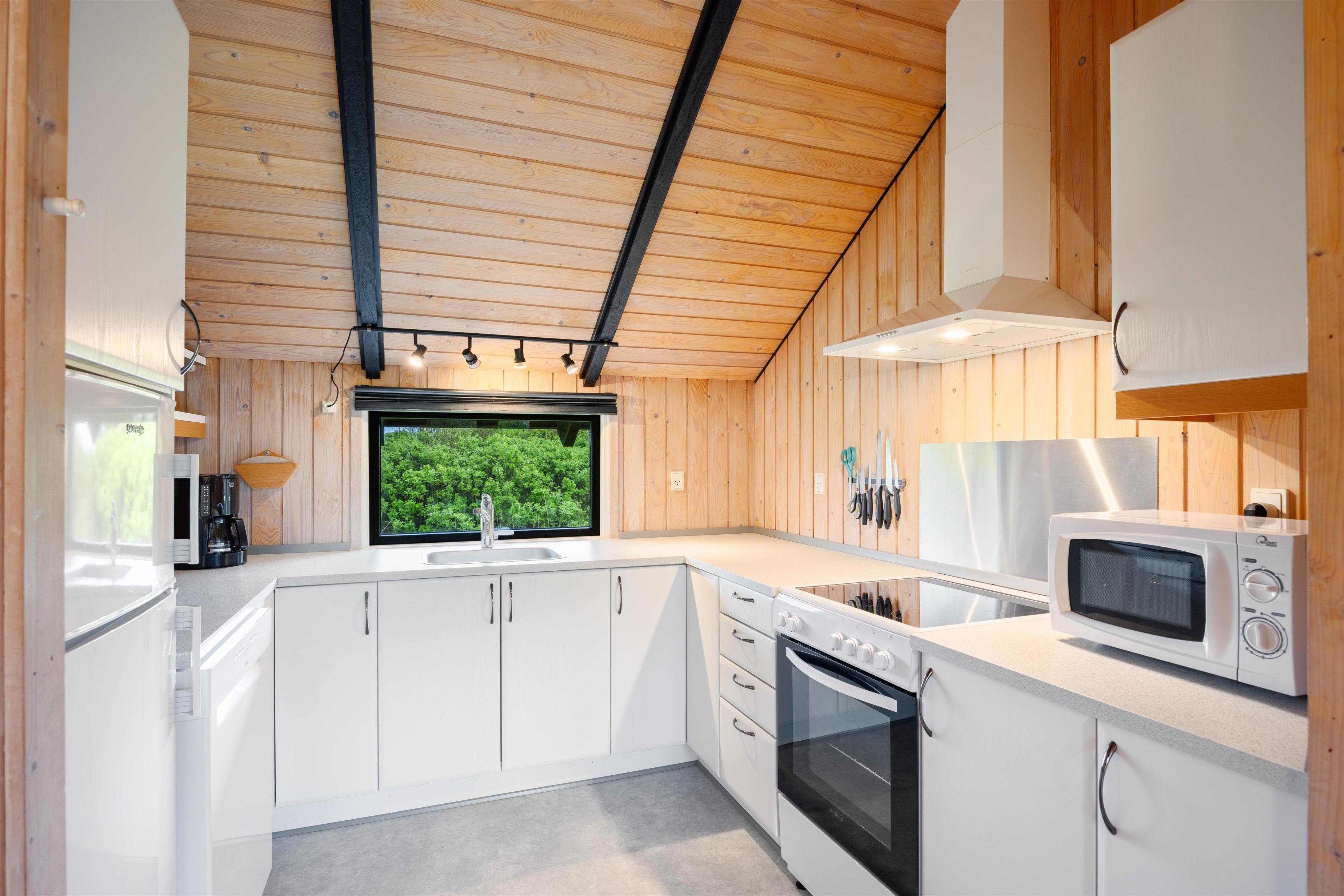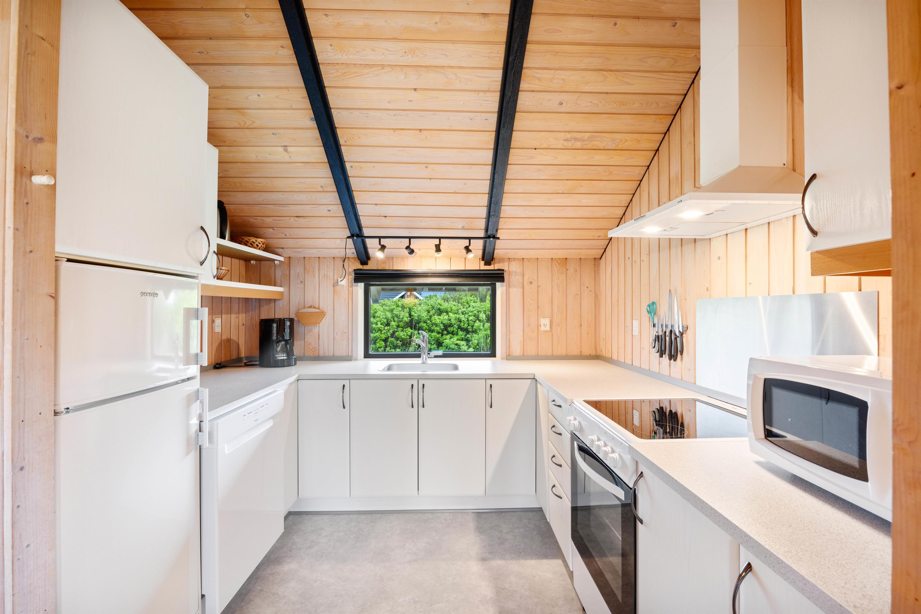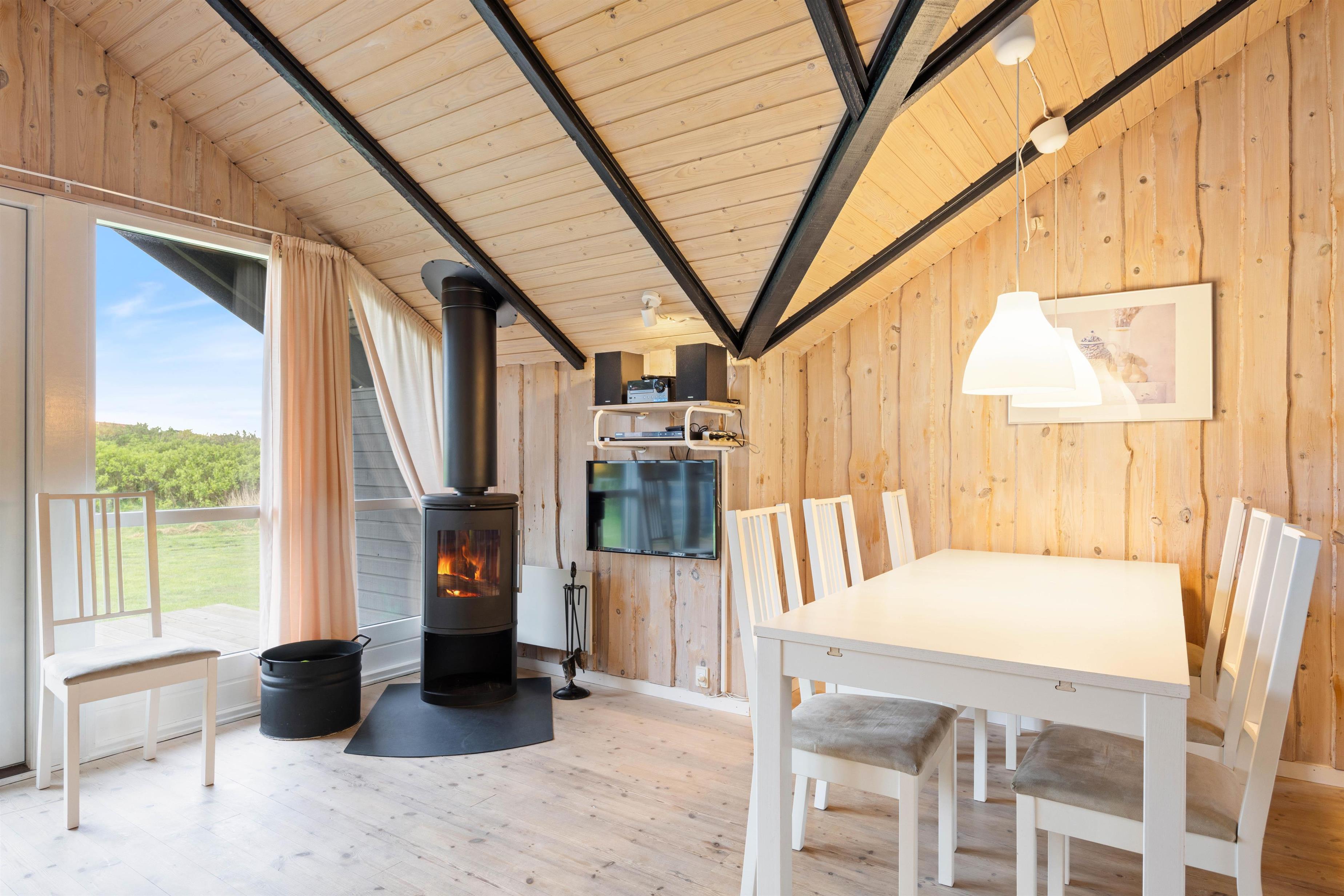 This holiday home offers a practical layout centred around a spacious living area with open-plan kitchen. Here you can make yourself comfortable by the fireplace and enjoy the views through the large window frontage. The well-equipped kitchen is perfect for preparing delicious meals, complete with a dishwasher for convenience. A washing machine and tumble dryer are also provided for your use.