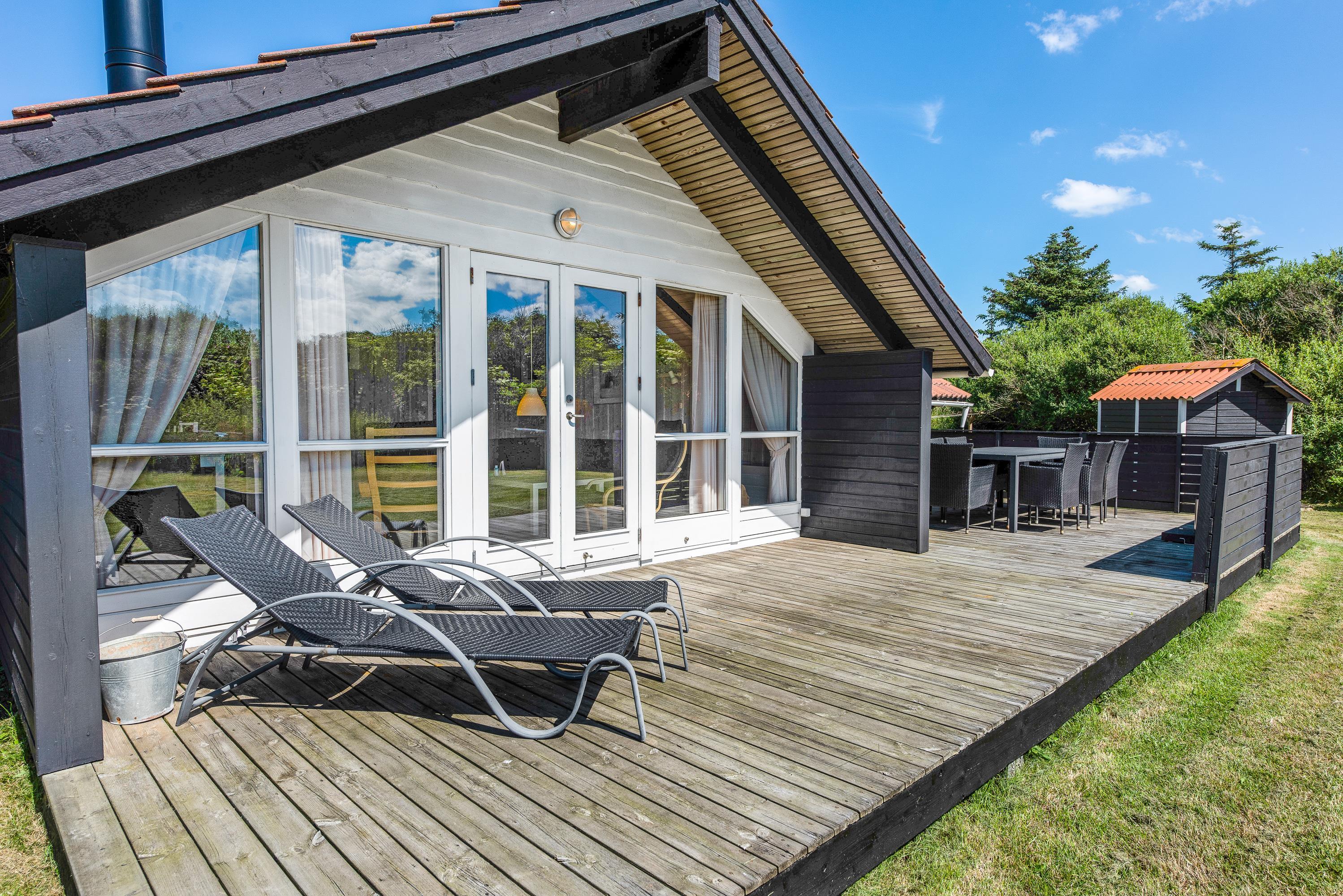 Welcome to Laust Diges Vej 26, on the Danish west coast. This beautiful holiday home offers a typical Danish atmosphere across 96 square metres of thoughtfully furnished space. Up to eight guests can relax in the bright living area with open-plan kitchen or enjoy the sun on the terrace. The bathroom features both a whirlpool and sauna for ultimate relaxation.