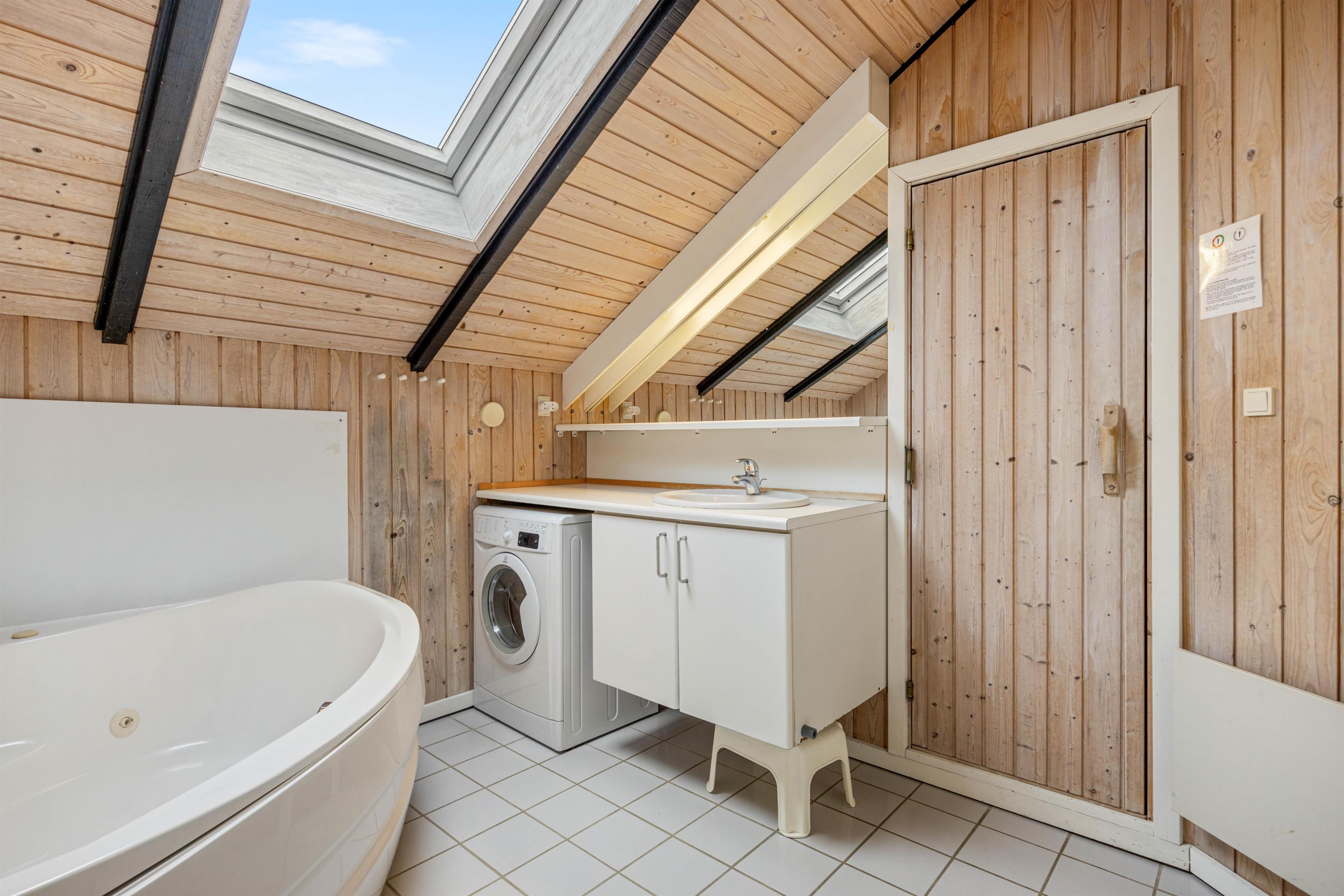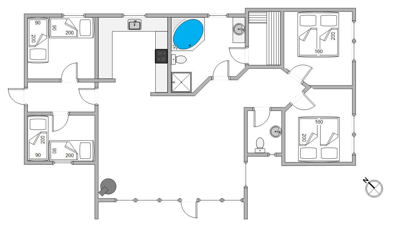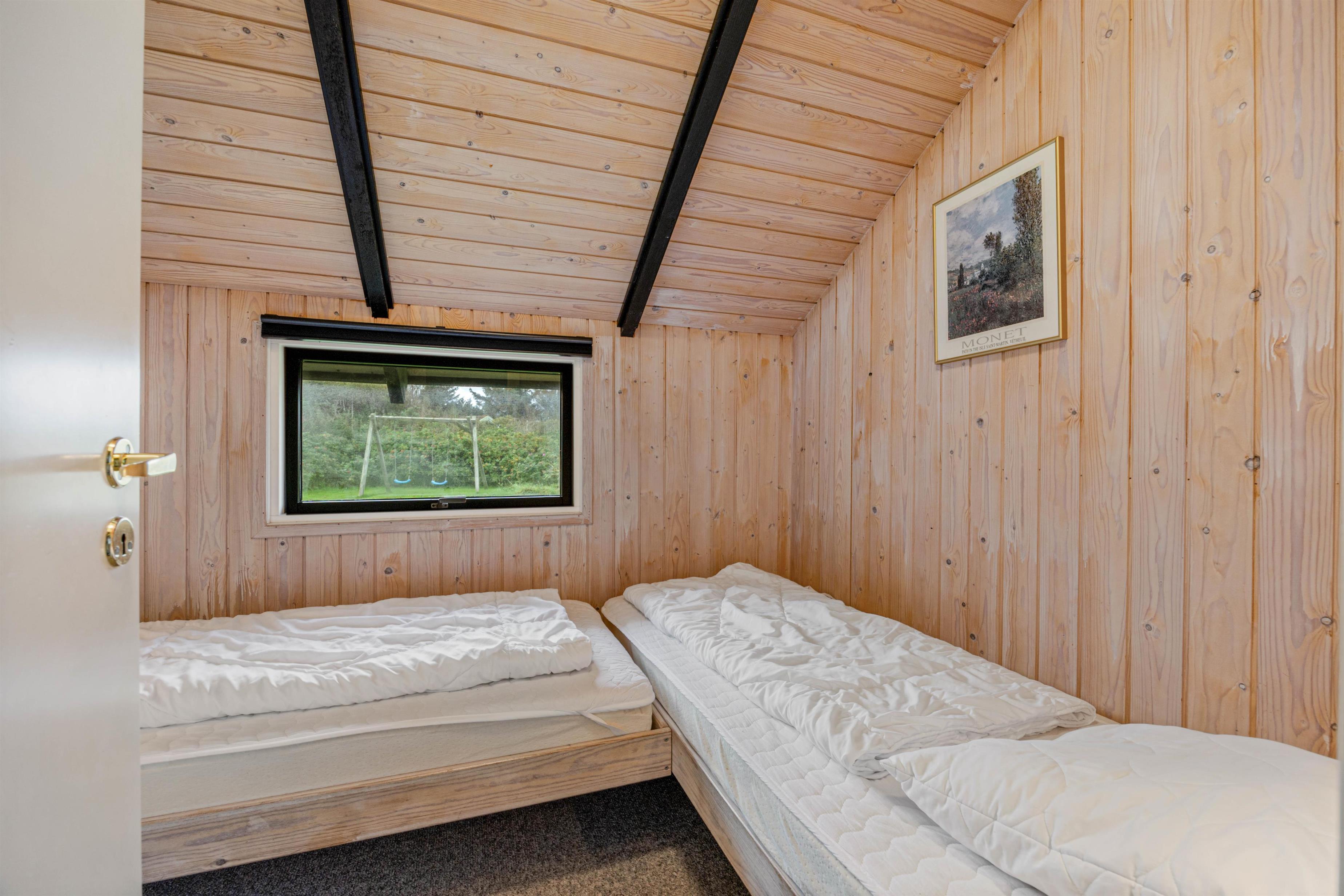 After dinner, children can watch television or enjoy board games at the dining table while you relax in the sauna or unwind in the warm whirlpool. An additional guest toilet ensures undisturbed comfort. The practically furnished bedrooms are situated on opposite sides of the holiday home for privacy, comprising two double bedrooms and two twin bedrooms.