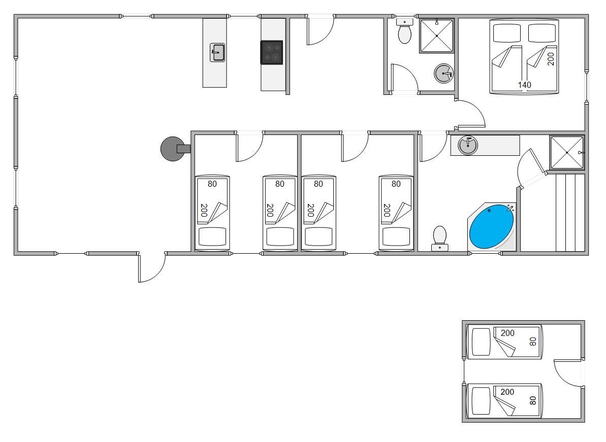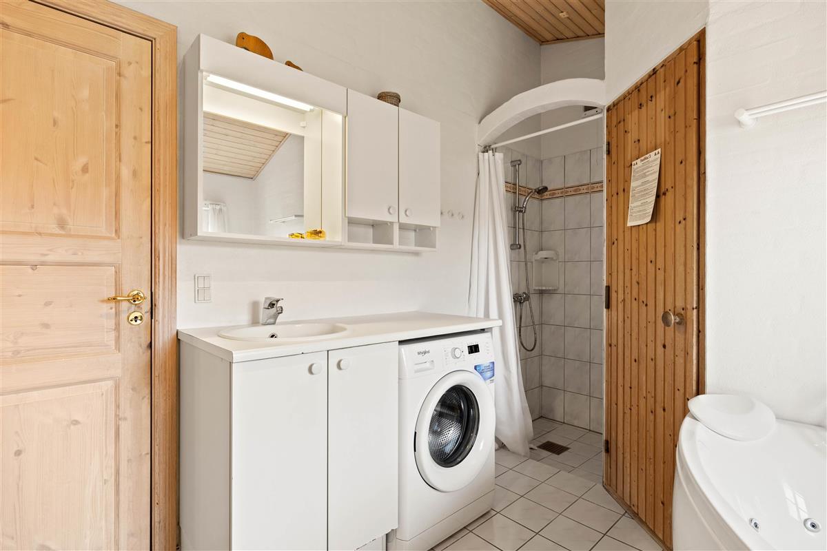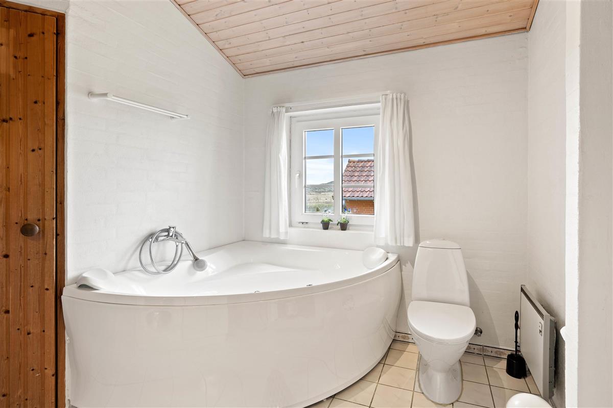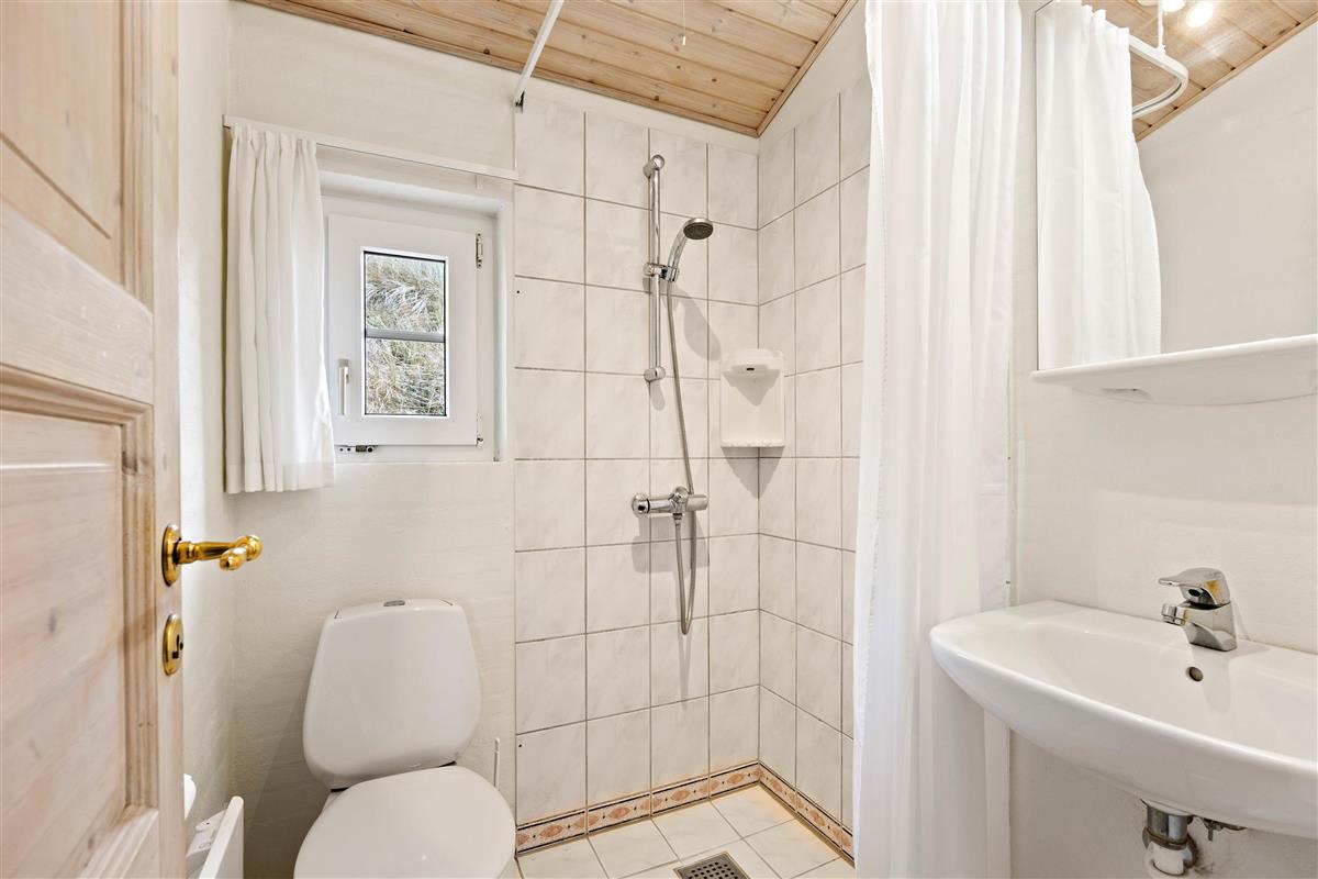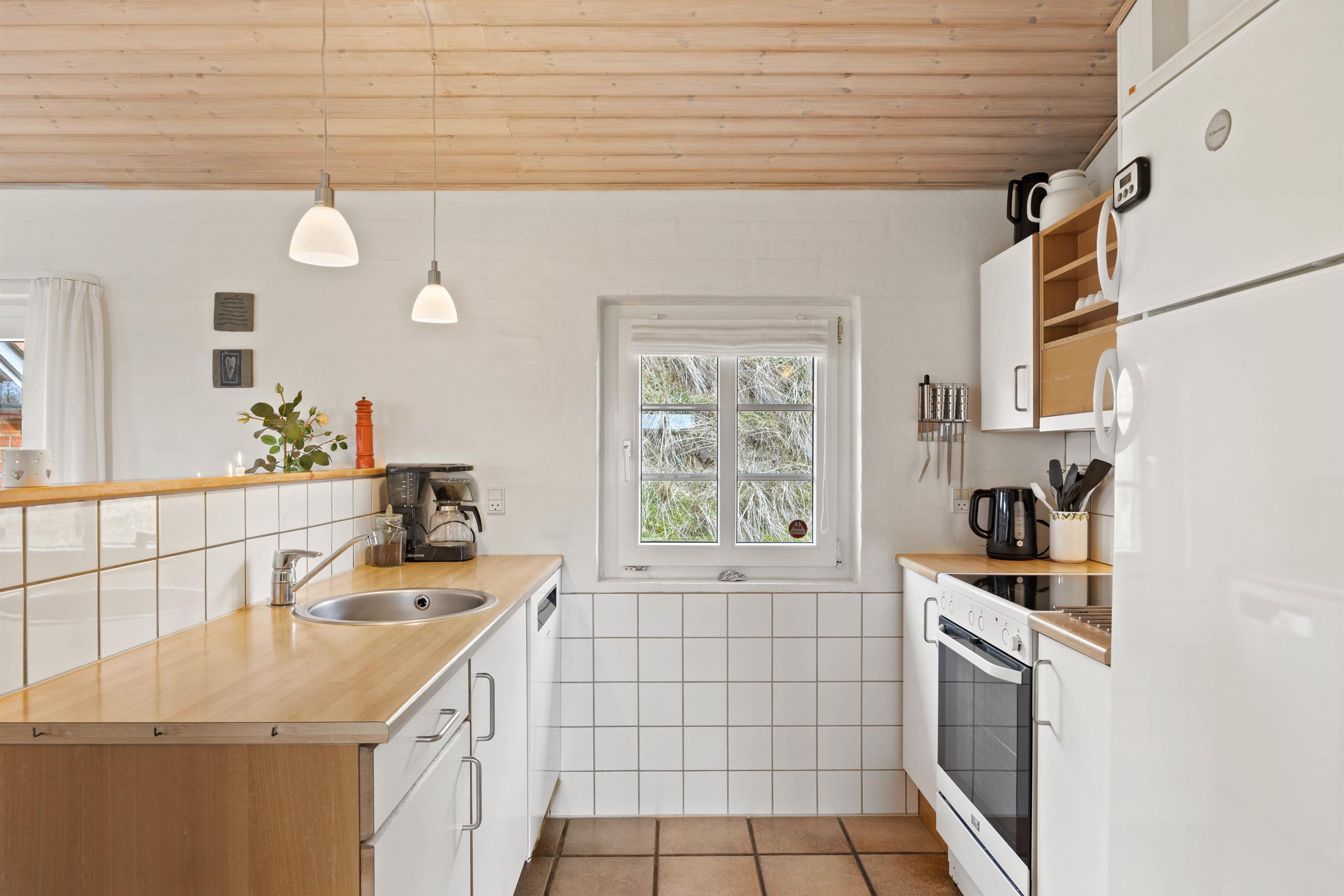The holiday home at Vinterlejevej 7 is furnished in traditional Danish holiday home style. The open-plan living area forms the heart of the holiday home, combining the living room, dining area and kitchen to create a sociable space for family and friends. The spacious living area features a wood-burning stove, complemented by an energy-efficient heat pump for cooler days.