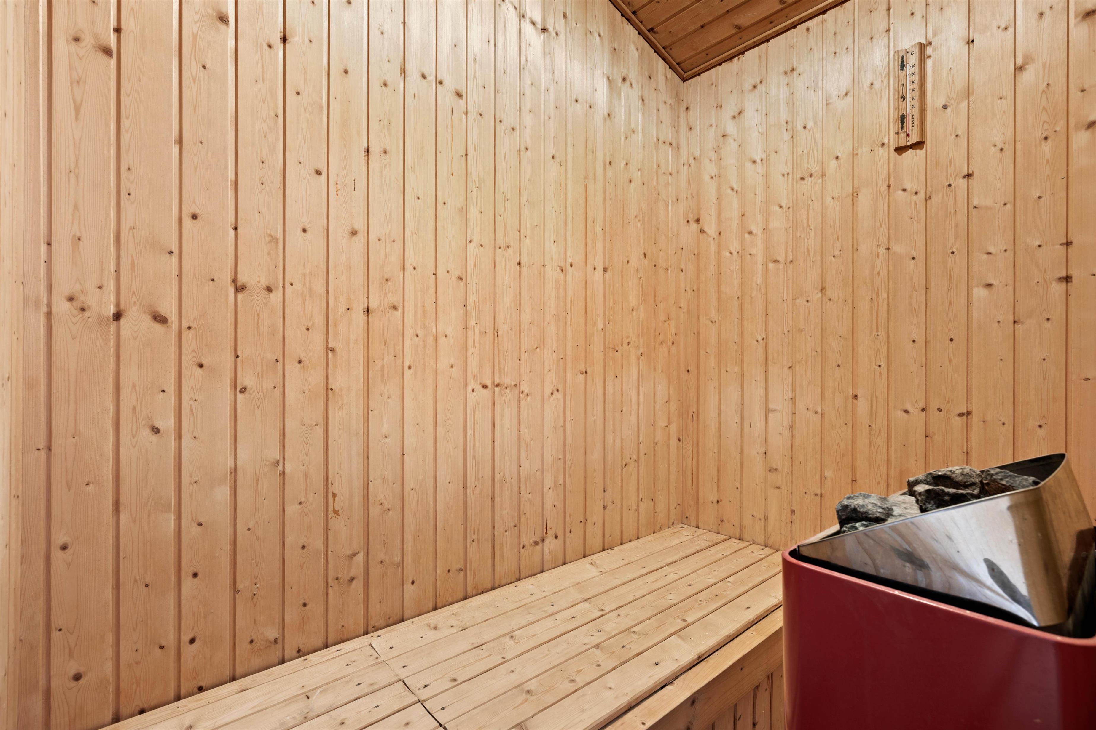 In the evening, relax on the comfortable sofa and enjoy watching films together, with plenty of choice thanks to the satellite dish. The two bright, tiled bathrooms both benefit from practical underfloor heating. The larger bathroom features both a whirlpool and sauna – perfect for unwinding and escaping everyday life for a while.