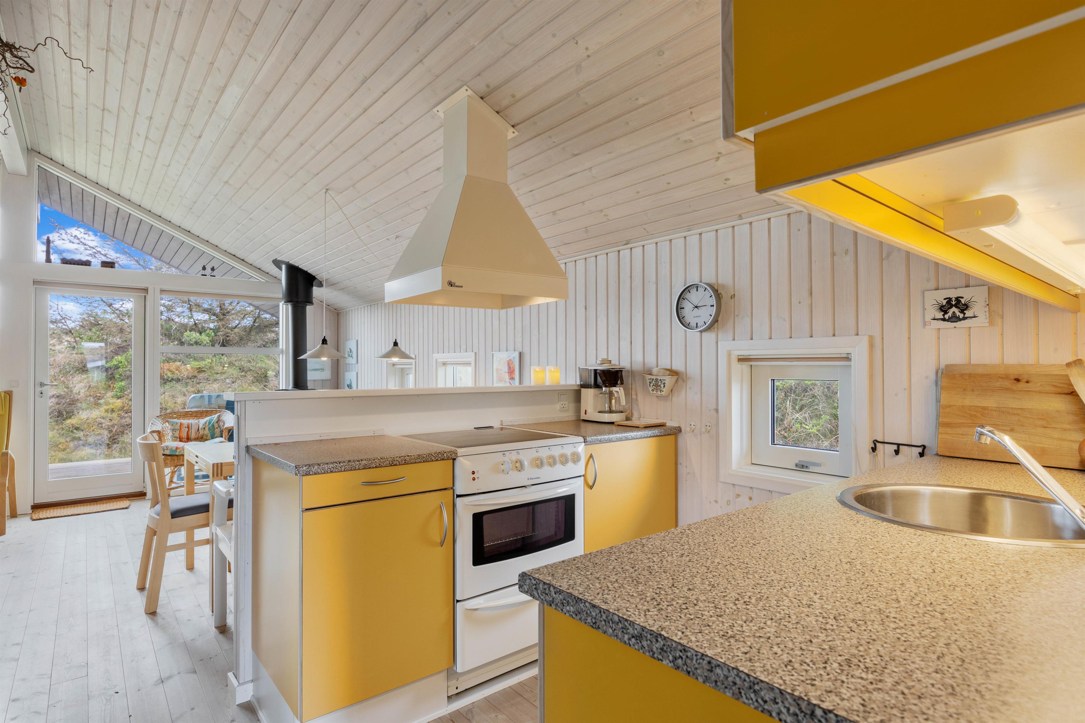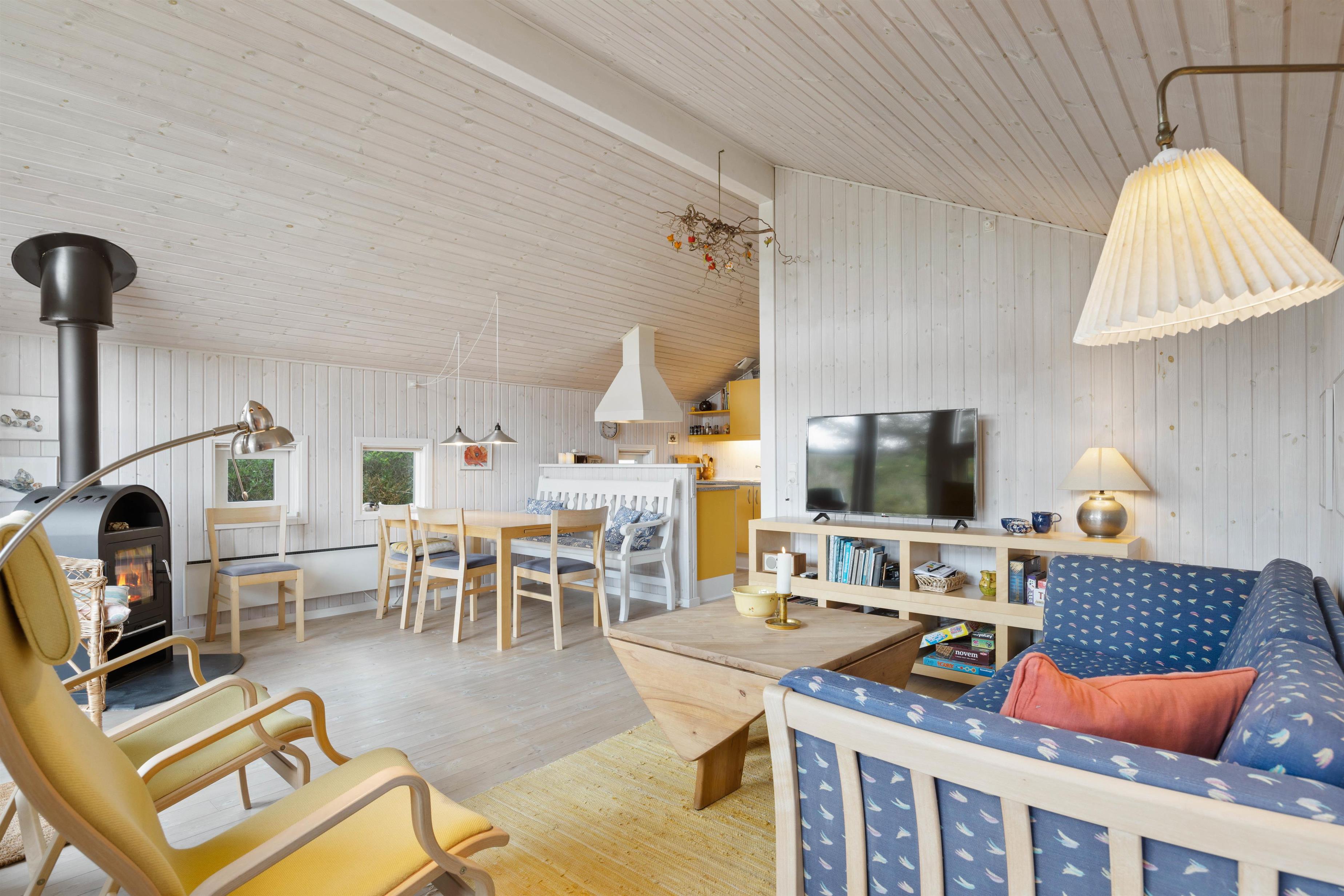This summer house is comfortably furnished in classic holiday home style. The heart of the holiday home is the welcoming family room, featuring an open-plan kitchen, dining area and living room.