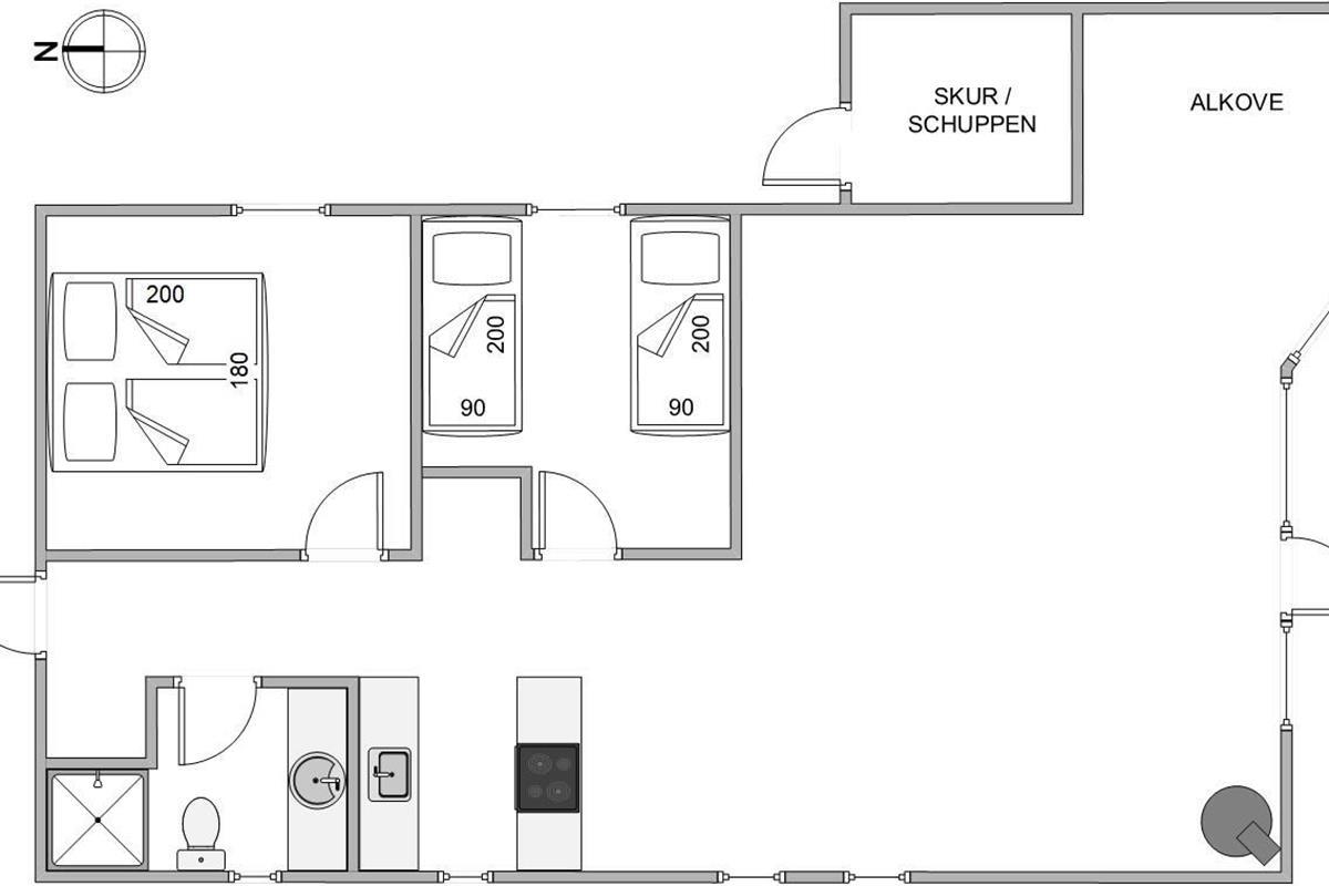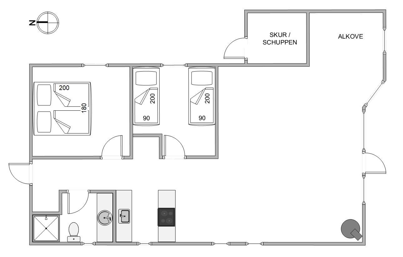 The holiday home has 2 bedrooms. One bedroom features a double bed, while the second has twin beds. The cosy sleeping nook in the living room can also be used for overnight stays.