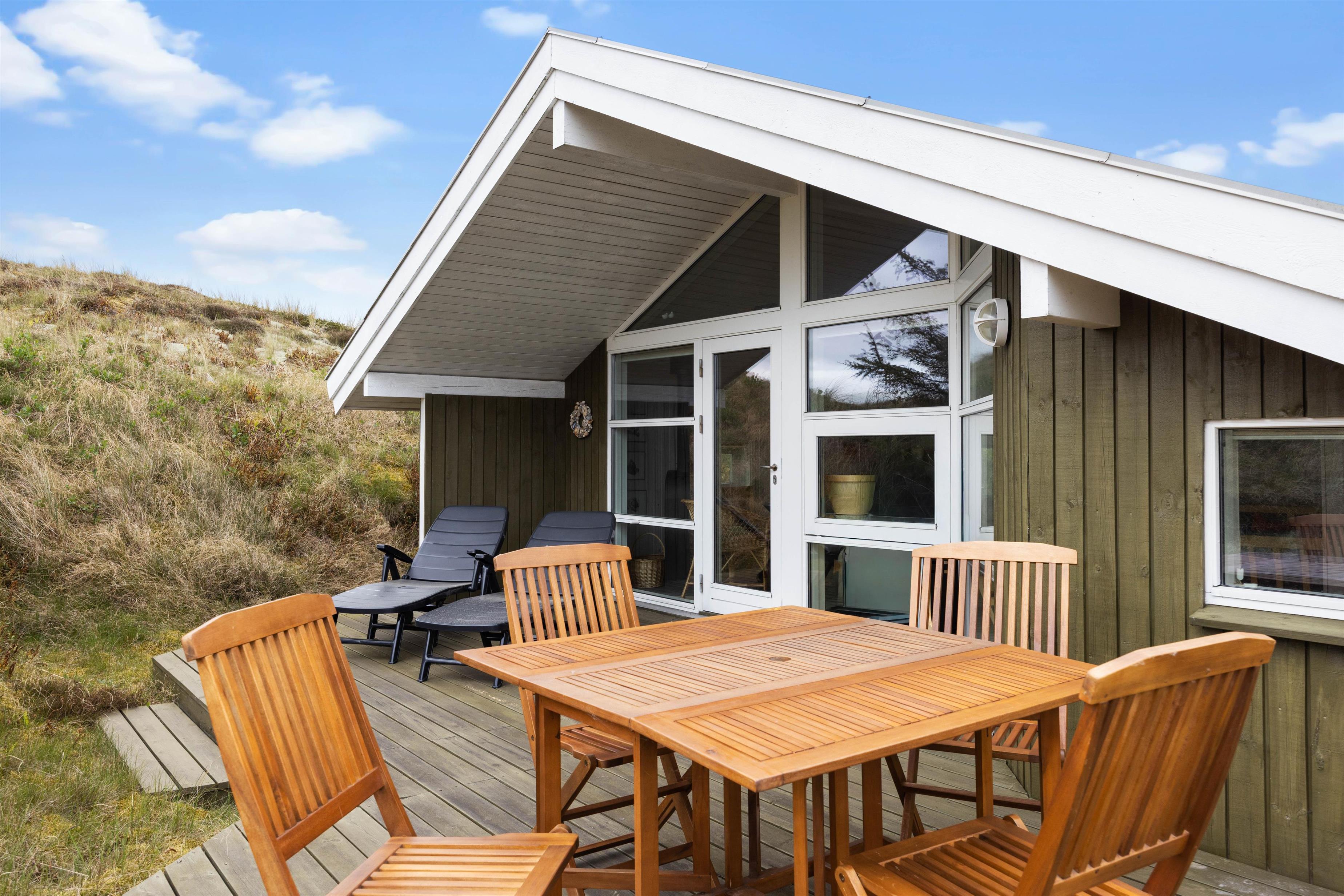 The holiday home is surrounded by several terraces, perfect for relaxing on warm summer days. In the evening, fire up the holiday home's gas barbecue. Make yourself comfortable on the garden furniture while your family's designated chef prepares juicy steaks, chicken kebabs and sausages. Perhaps you'll even get to enjoy fresh fish caught by yourself in the Ringkøbing Fjord.