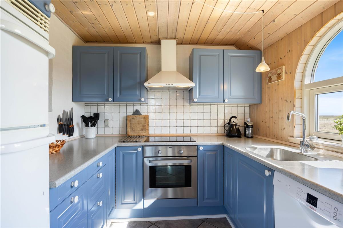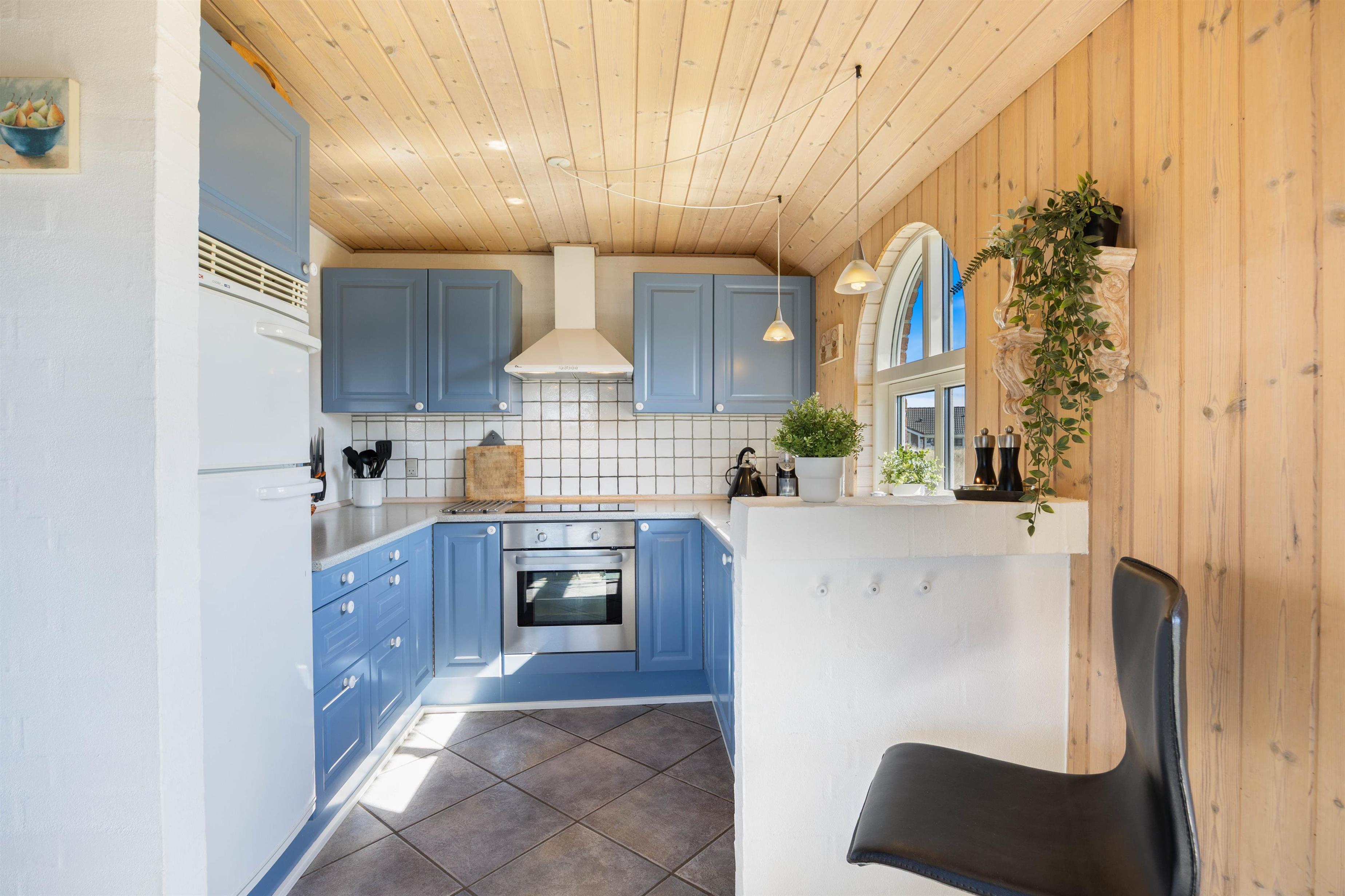 The living room opens directly onto a partially covered wooden terrace with windbreaks, where you can spend many pleasant hours. Find a shady spot during the day, and in the evening, the terrace heater allows you to linger over a barbecue and glass of wine on warm summer evenings. The south-facing terrace offers views over Ringkøbing Fjord.