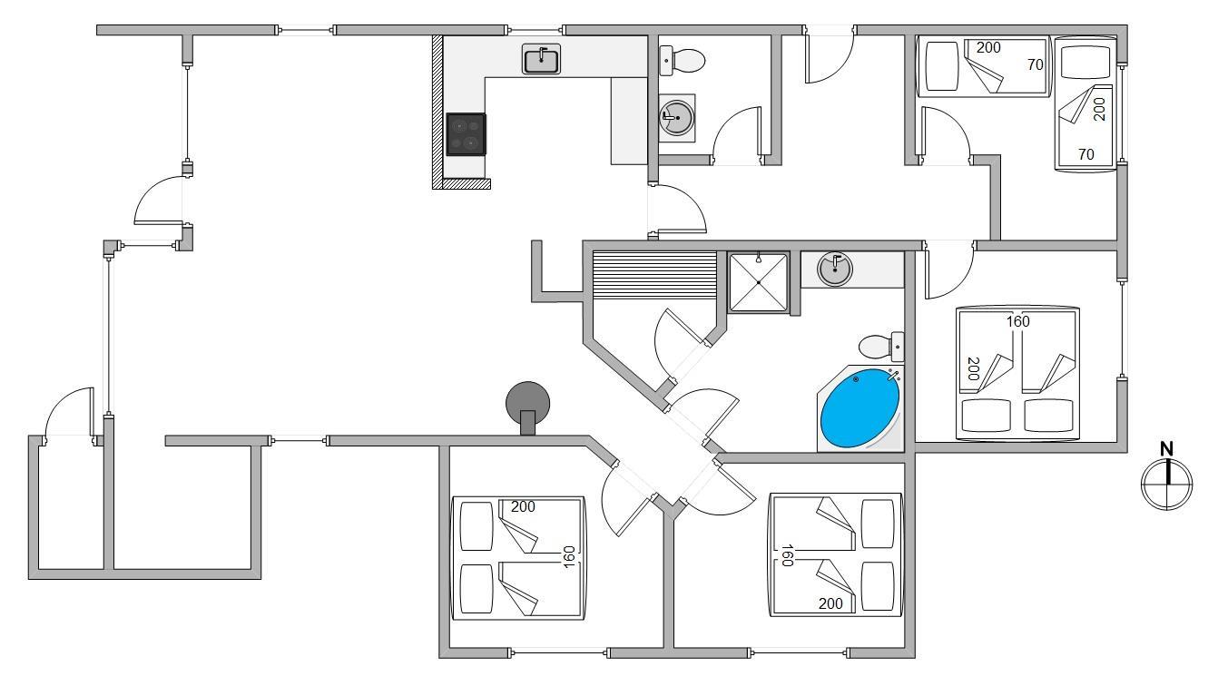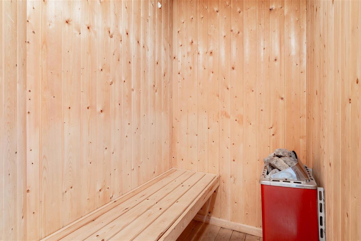 The holiday home features a spacious bathroom with an attractive shower, comfortable underfloor heating, hot tub and sauna. There's also a guest toilet, which benefits from underfloor heating as well.