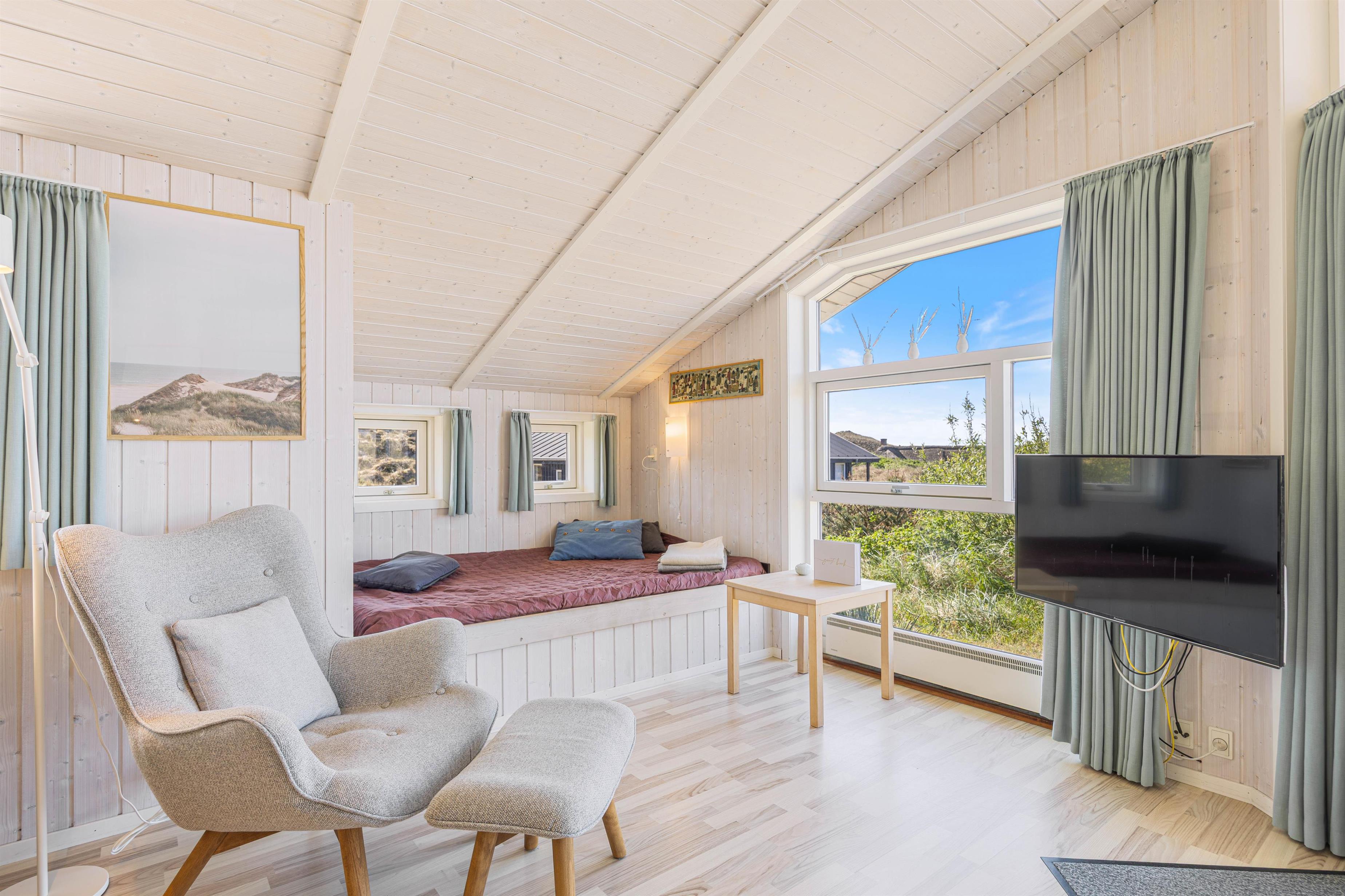 At Riskrogvej 44, you will find a lovely holiday home in Haurvig. Here, you have the opportunity to unplug and enjoy the beautiful natural surroundings, close to both the sea and the fjord. Relax indoors with a fire in the fireplace, or take advantage of the fantastic outdoor activities the area has to offer. With the North Sea just 300 meters away, you can enjoy a refreshing swim or a leisurely walk on the beach whenever you like.