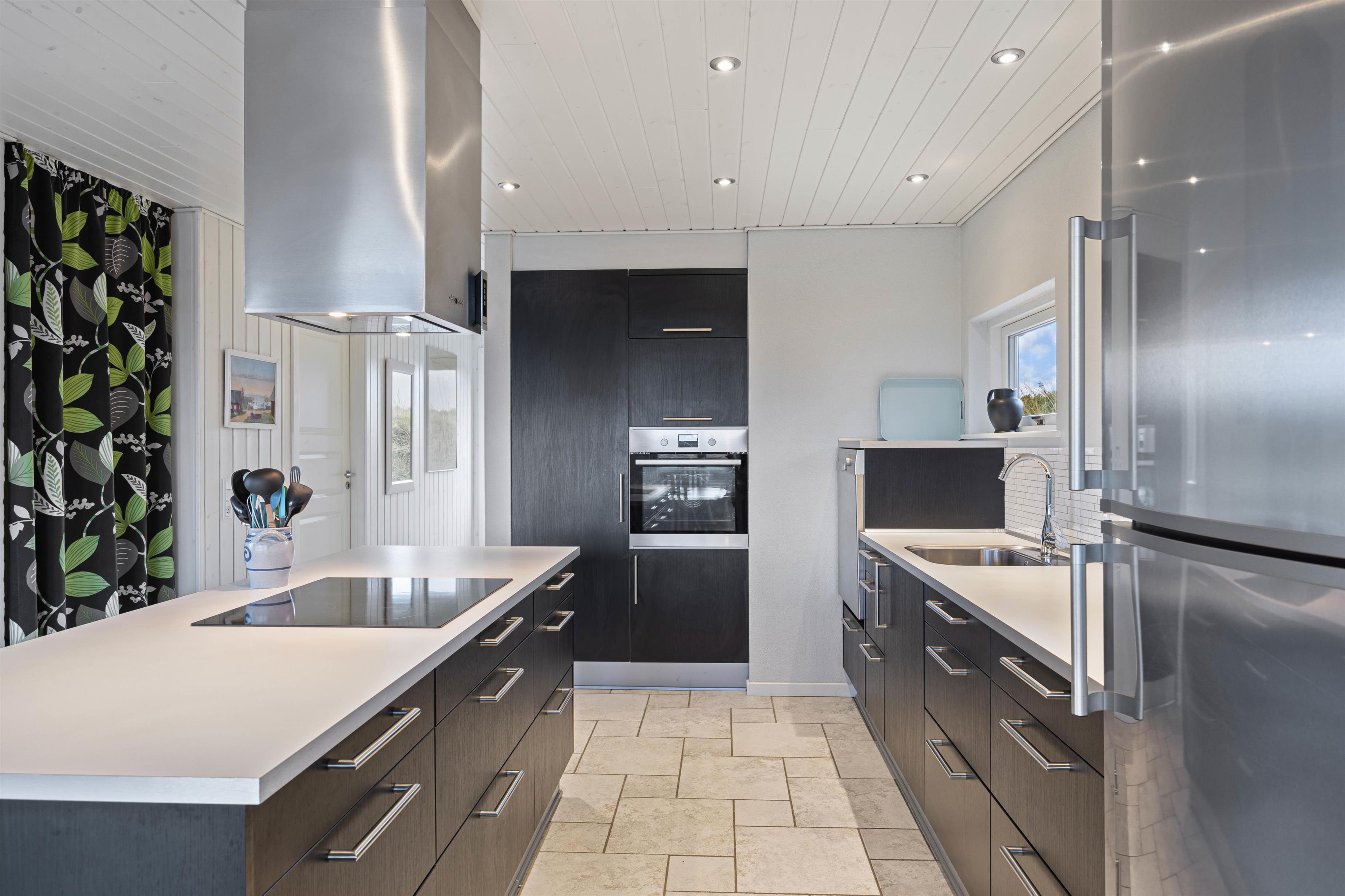 You'll feel at home from the moment you step inside. The ground floor welcomes you with a spacious living area featuring an open-plan kitchen and dining space. Make yourself comfortable on the sofa to watch a film or prepare delicious meals in the well-equipped kitchen. The kitchen includes a dishwasher, induction hob and a 60-litre freezer. Gather around the kitchen island to try out new recipes together - perhaps even attempt a traditional Danish menu?