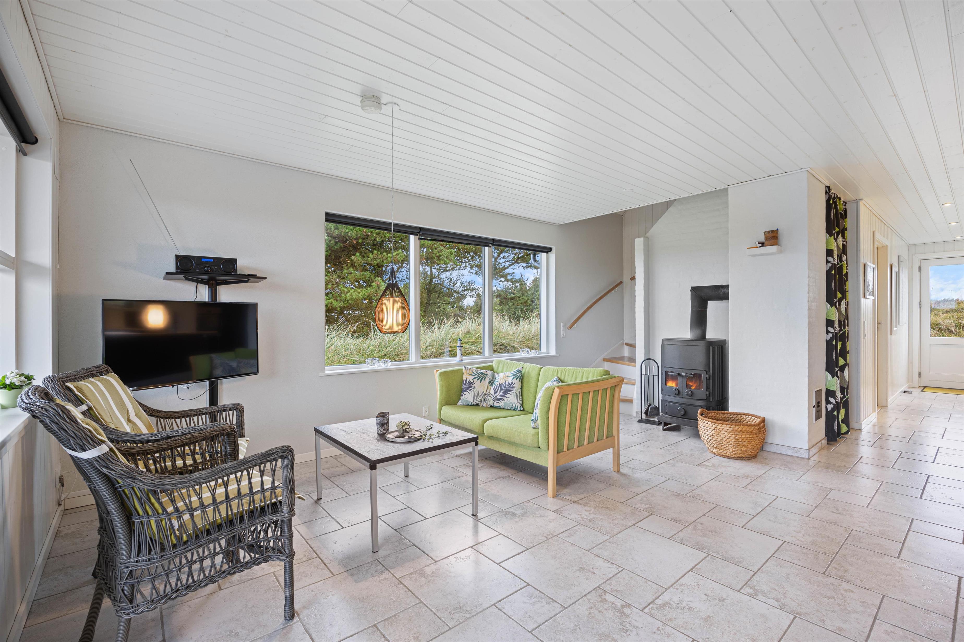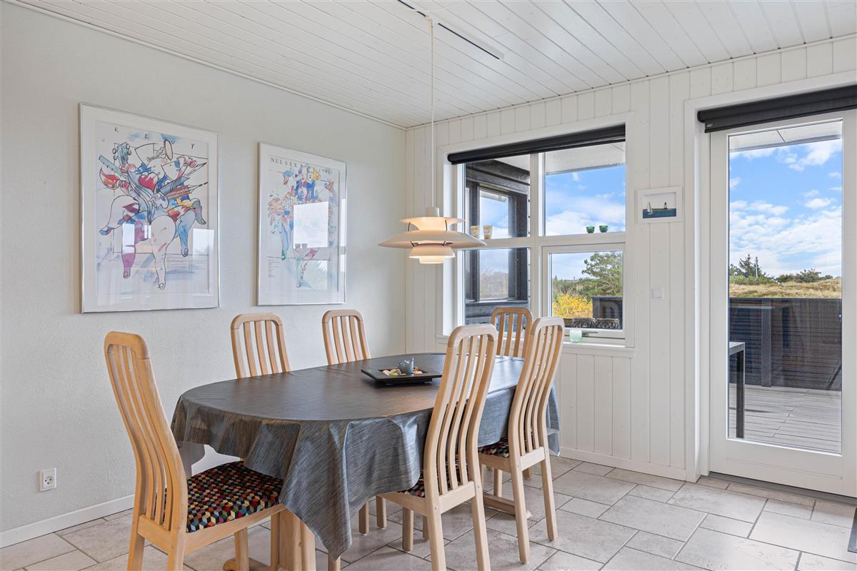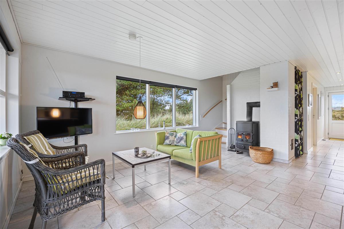 Looking for a stylish holiday home where you can feel completely at ease? Then this tastefully furnished holiday home at Vinterlejevej 53 is perfect for you. The 104 square metres spread across two floors and accommodate up to 6 guests. Here you can enjoy relaxing by the fireplace and marvel at the enchanting views towards Ringkøbing Fjord from the first floor.