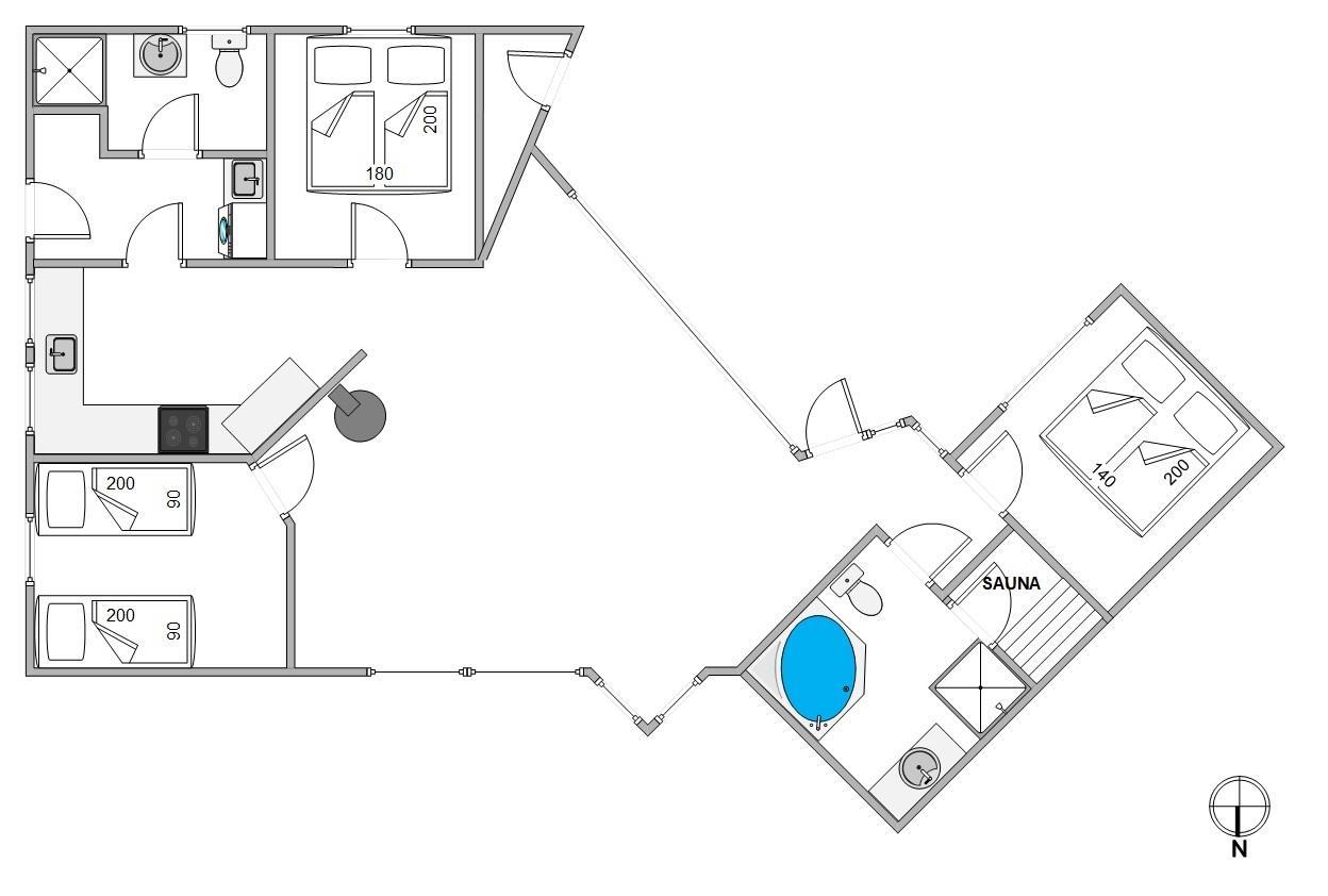 For peaceful rest, the holiday home offers three bedrooms with two double beds and two single beds, ensuring a restful sleep after an extensive cycle ride along the fjord. Why not start with a relaxing wellness evening in the sauna and whirlpool? For cosy warm feet in the morning, the two bathrooms feature underfloor heating. A washing machine provides the practical convenience of fresh towels for the next day.
