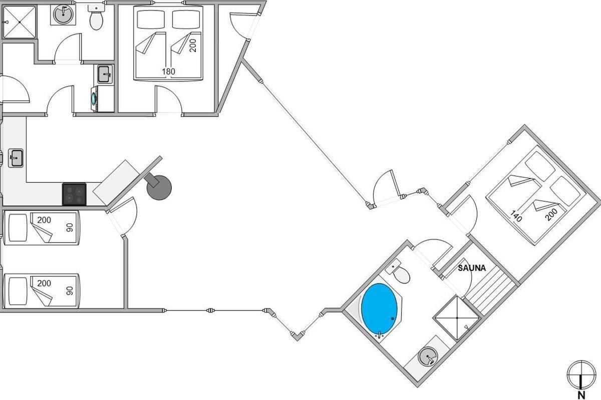 Located at Baunebjergvej 10B in the holiday destination of Haurvig, this welcoming holiday home accommodates 6 people and one dog. An enclosed terrace, directly accessible from the inviting living area with open-plan kitchen, provides plenty of space and comfort for the whole family. A sauna and whirlpool offer additional relaxation during your holiday on the Danish West Coast.