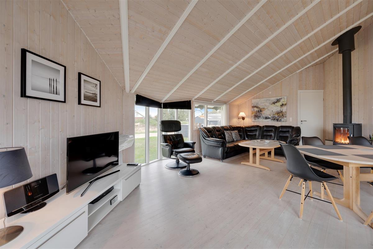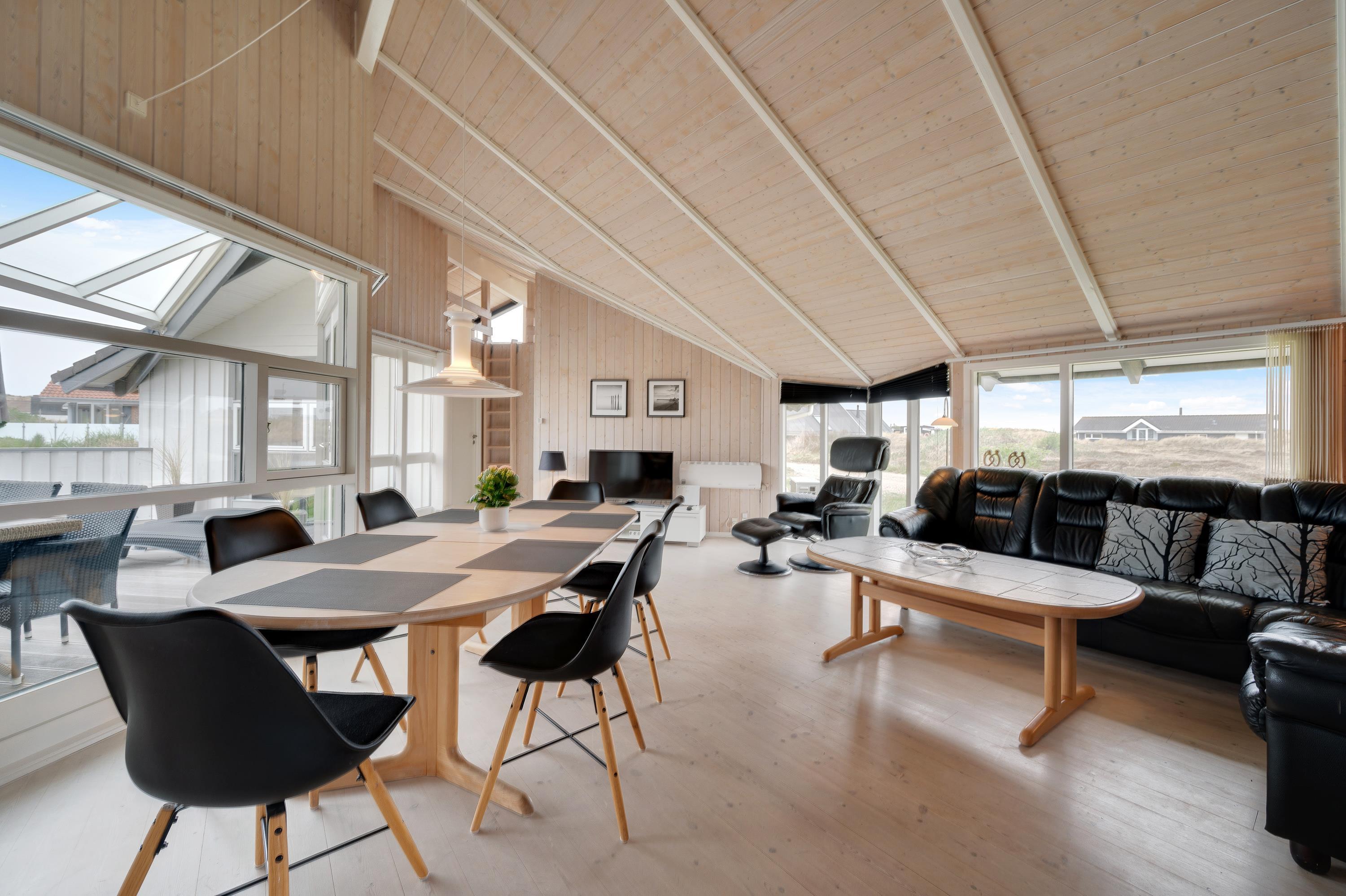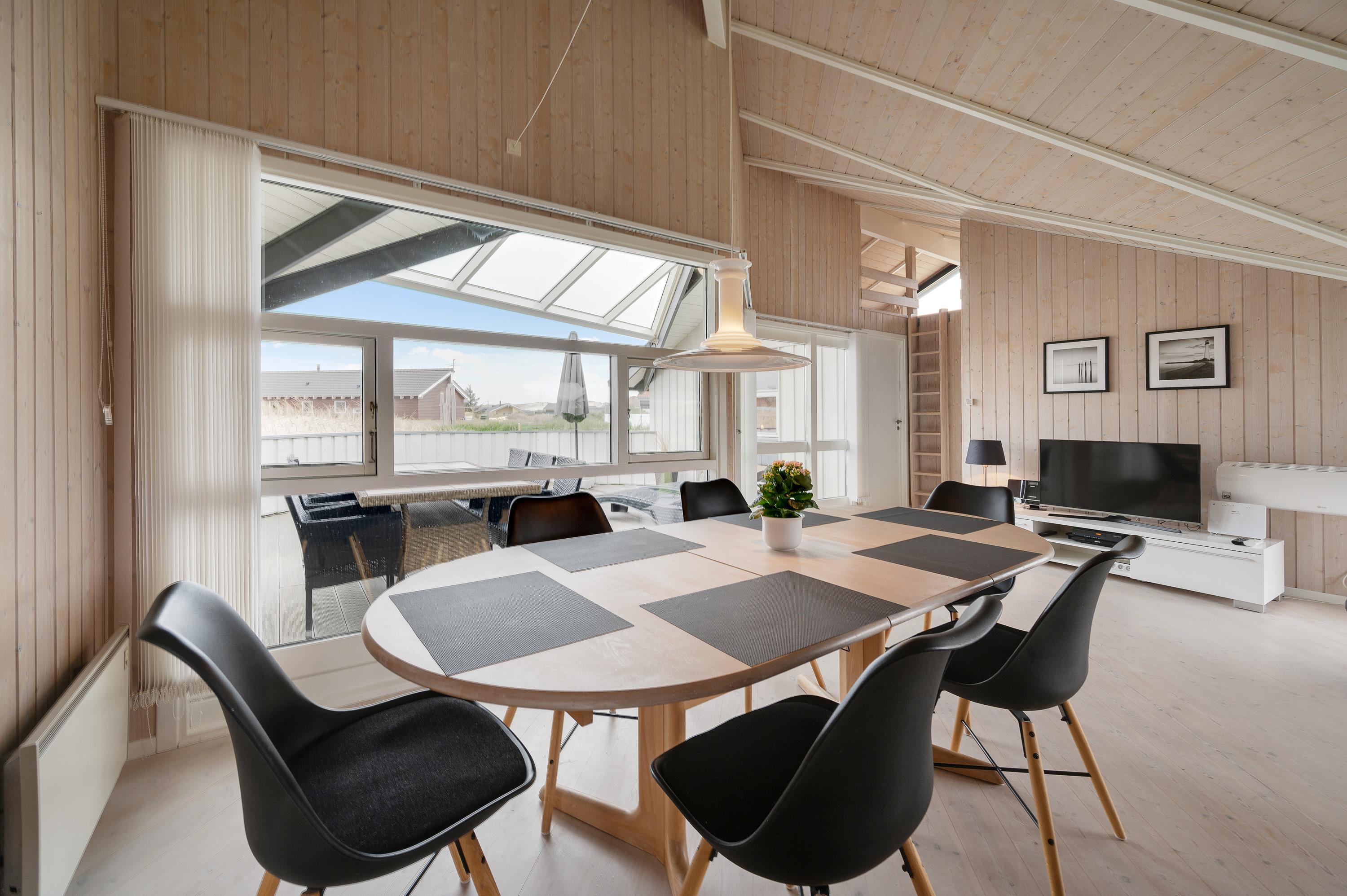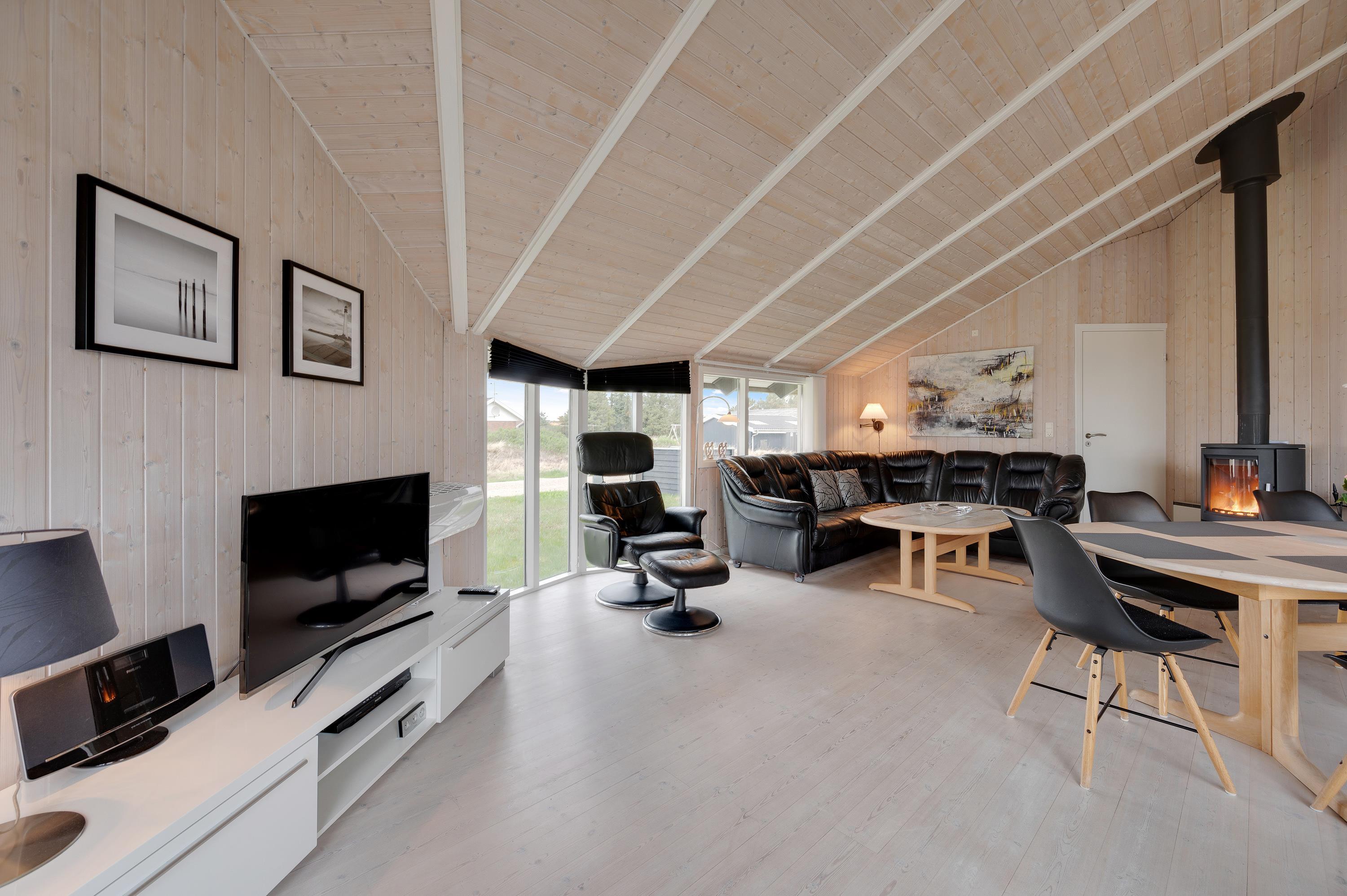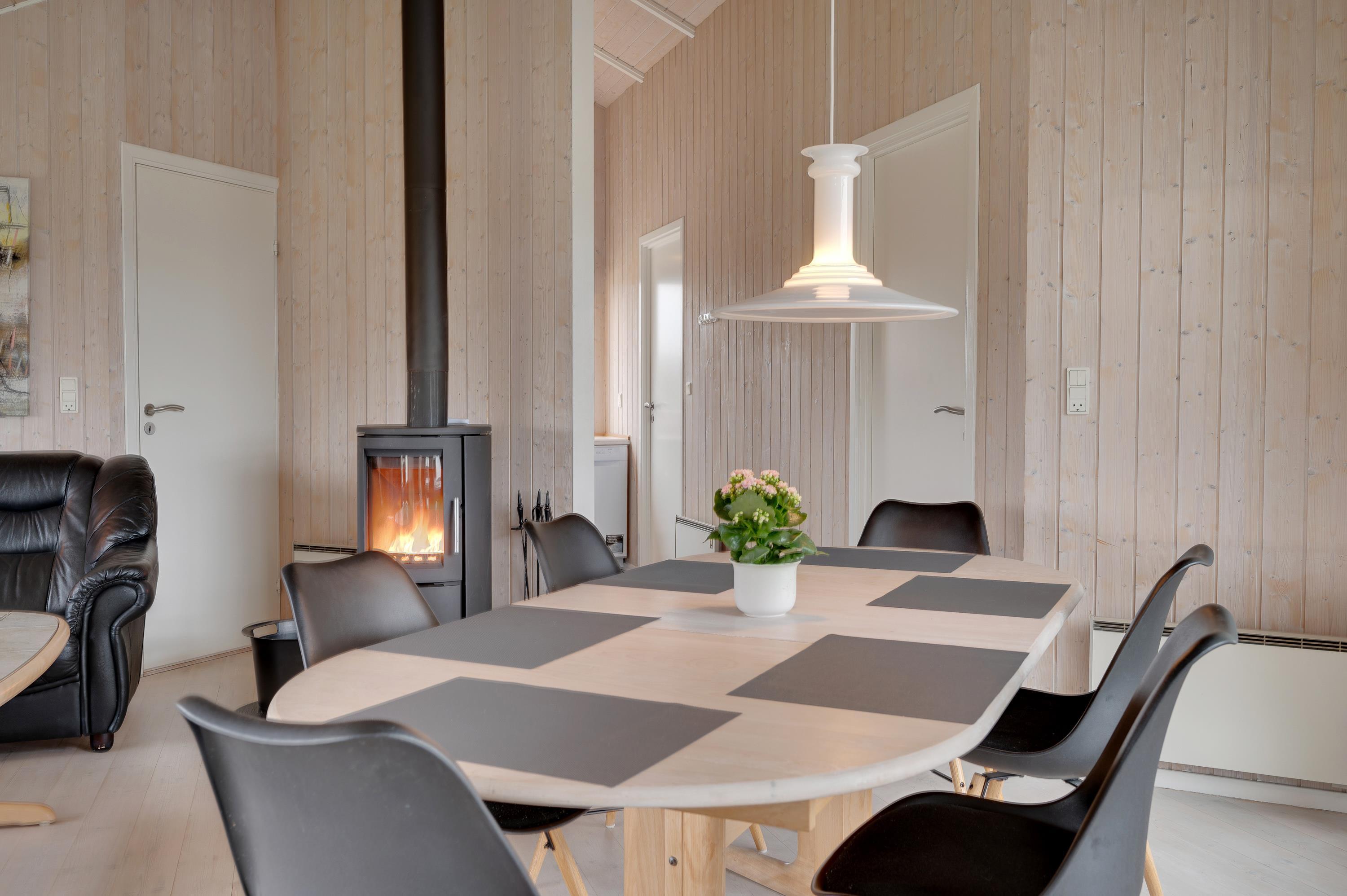 In the cosy living area of your holiday home, the comfortable corner sofa next to the wood-burning stove invites you to unwind and feel at home. Relax with a delicious piece of cake and your favourite crime novel, or try out a new recipe in the open-plan kitchen, complete with dishwasher. The large dining table has room for the whole family and is perfect for fun game nights after exciting days at the beach. For alternative and energy-efficient heating, there's also a heat pump available.