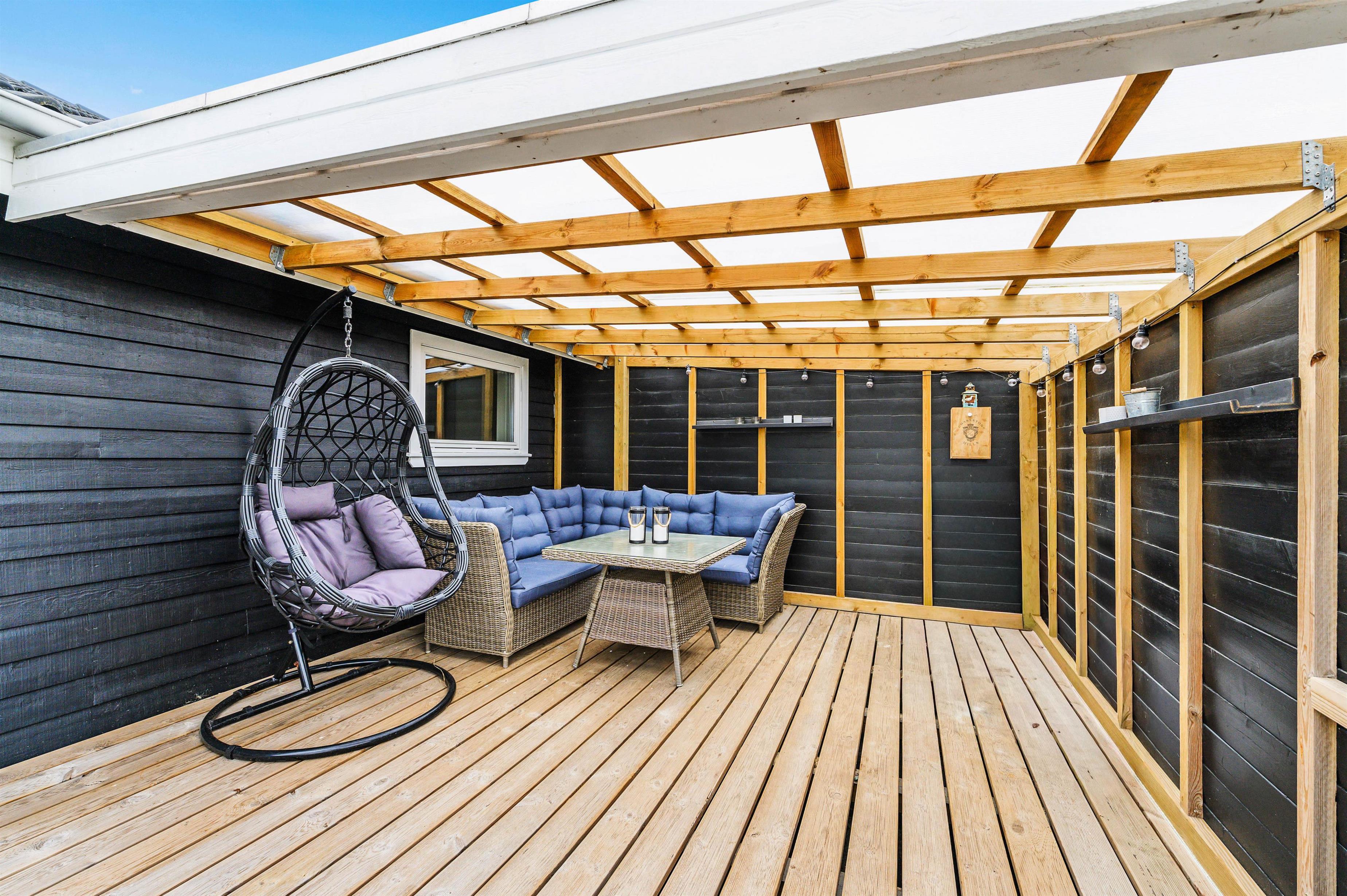The outdoor area features a large wooden terrace with plenty of garden furniture for enjoyable family barbecues. Sun loungers are available for relaxing on warm summer days. An outdoor shower provides refreshing cooling off (available April to November).