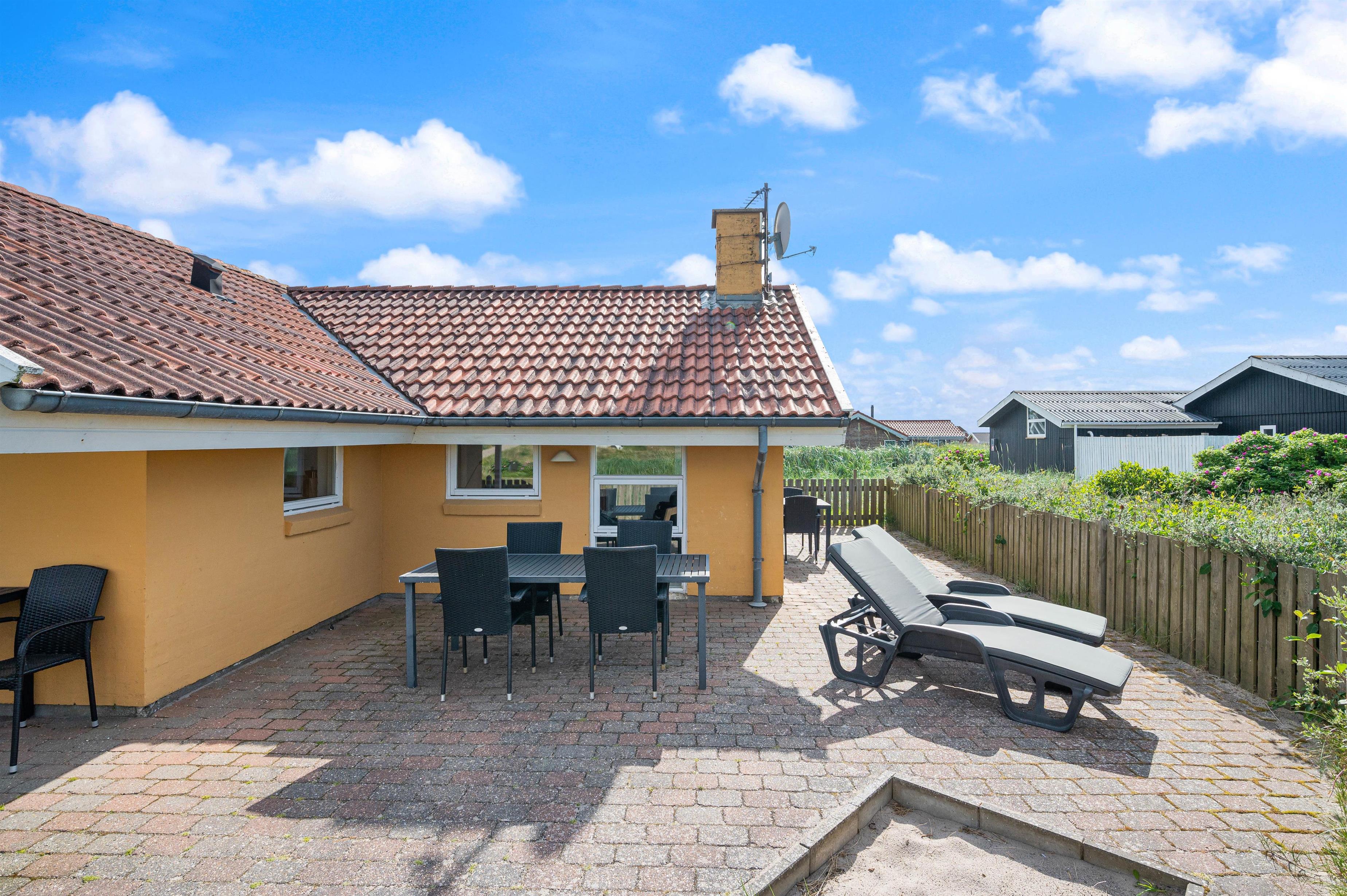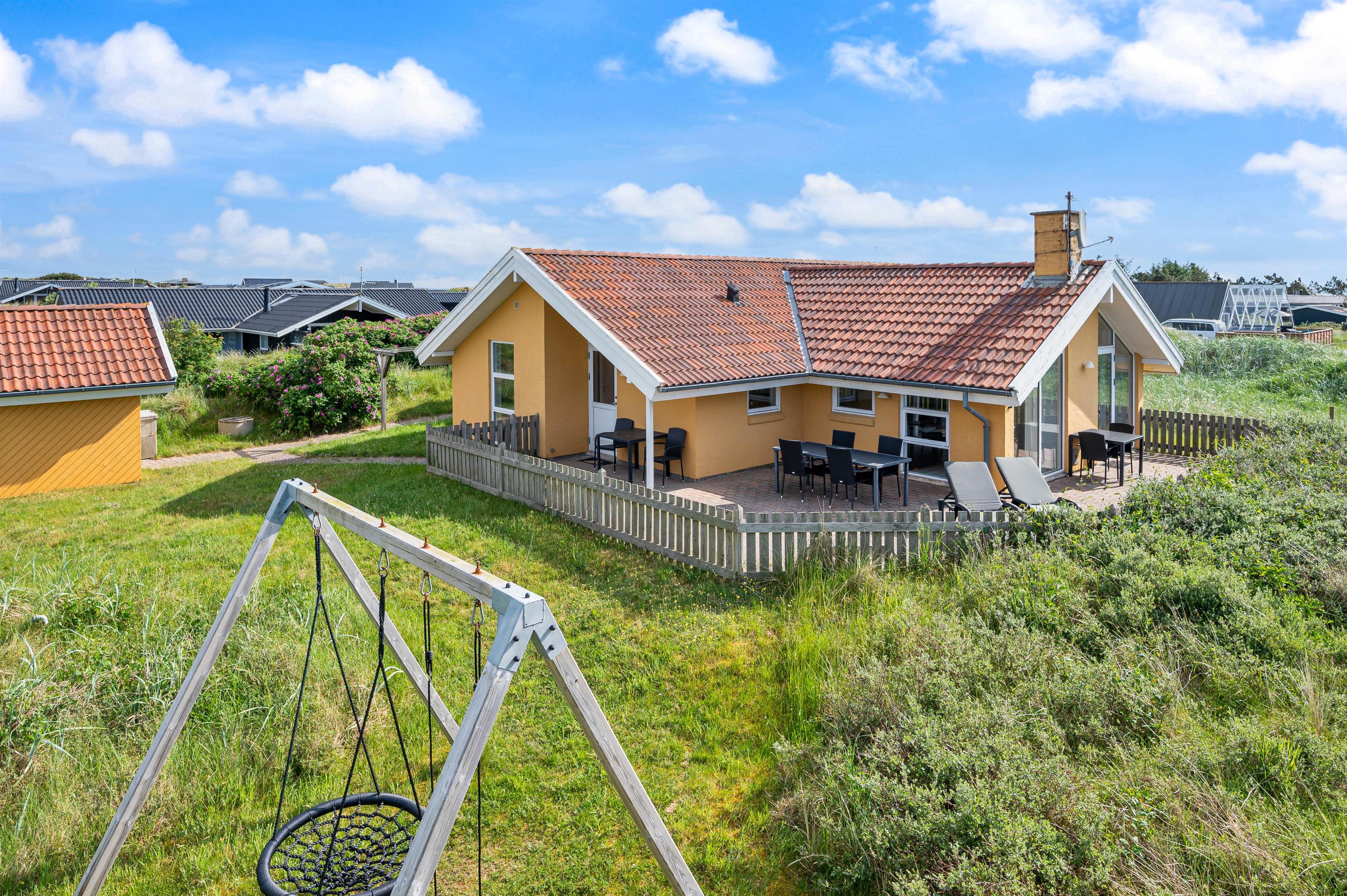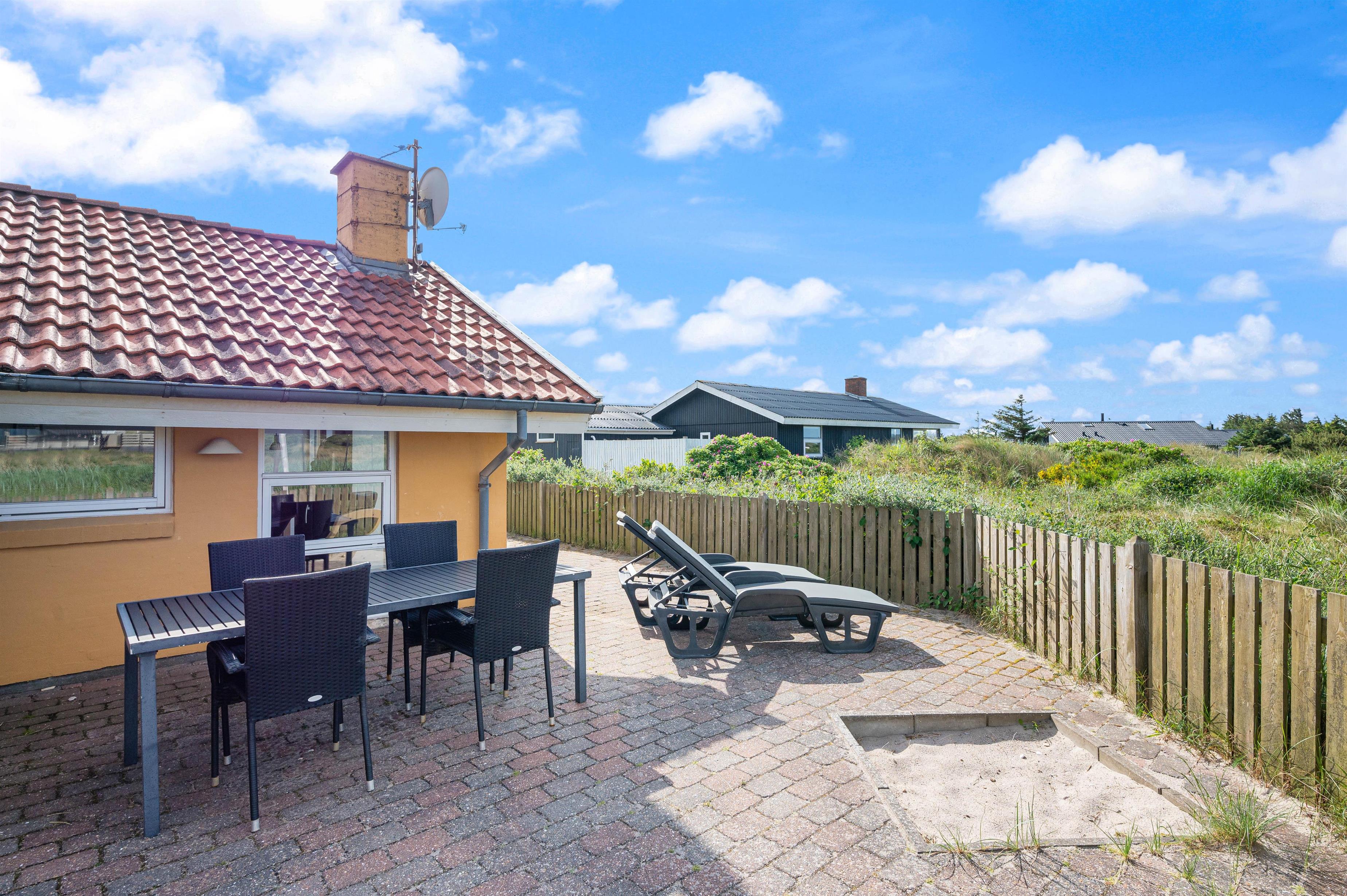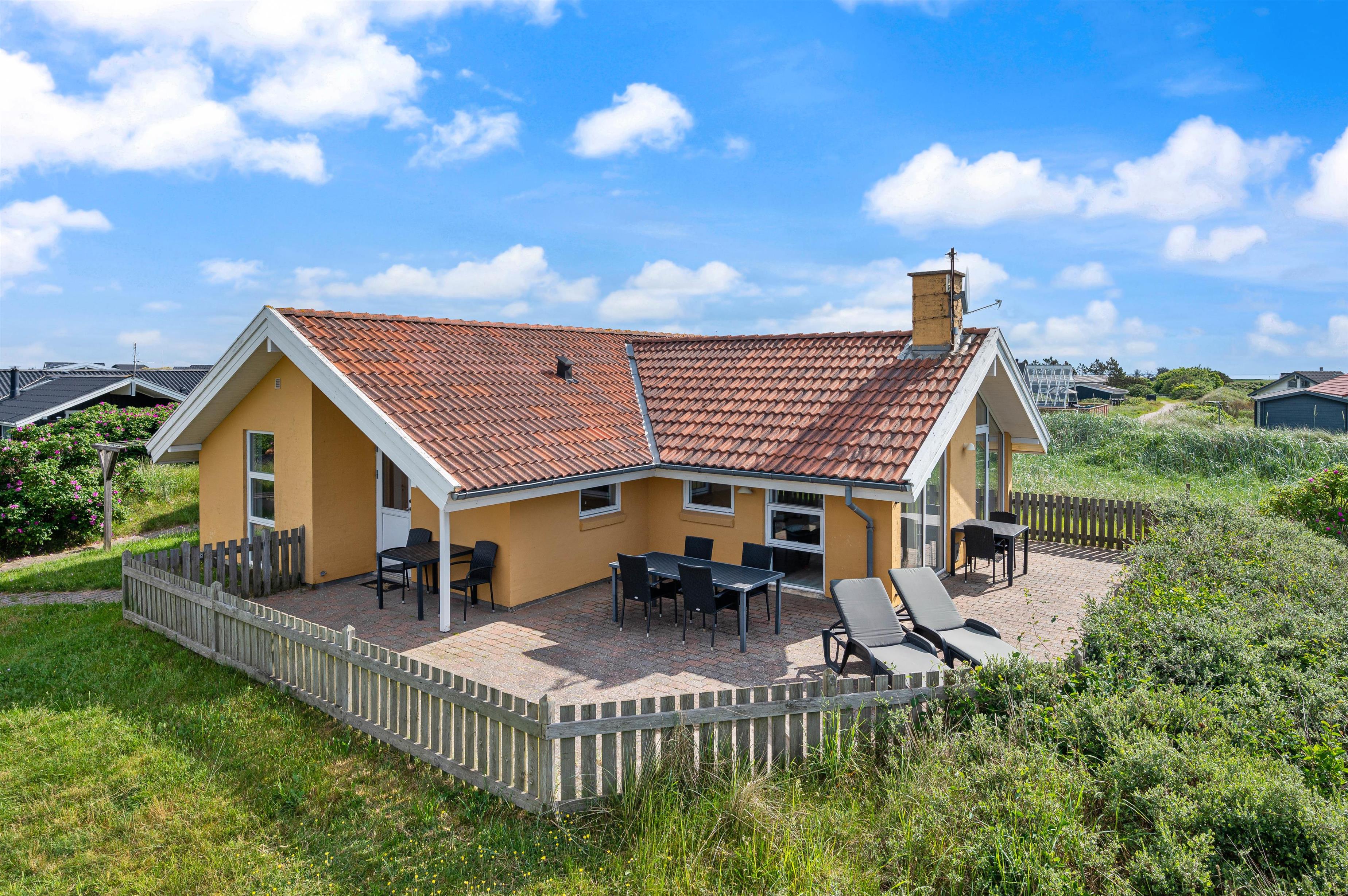 The holiday home sits on a beautiful natural plot in Haurvig. It's just 600 metres to the North Sea and its fine sandy beach.