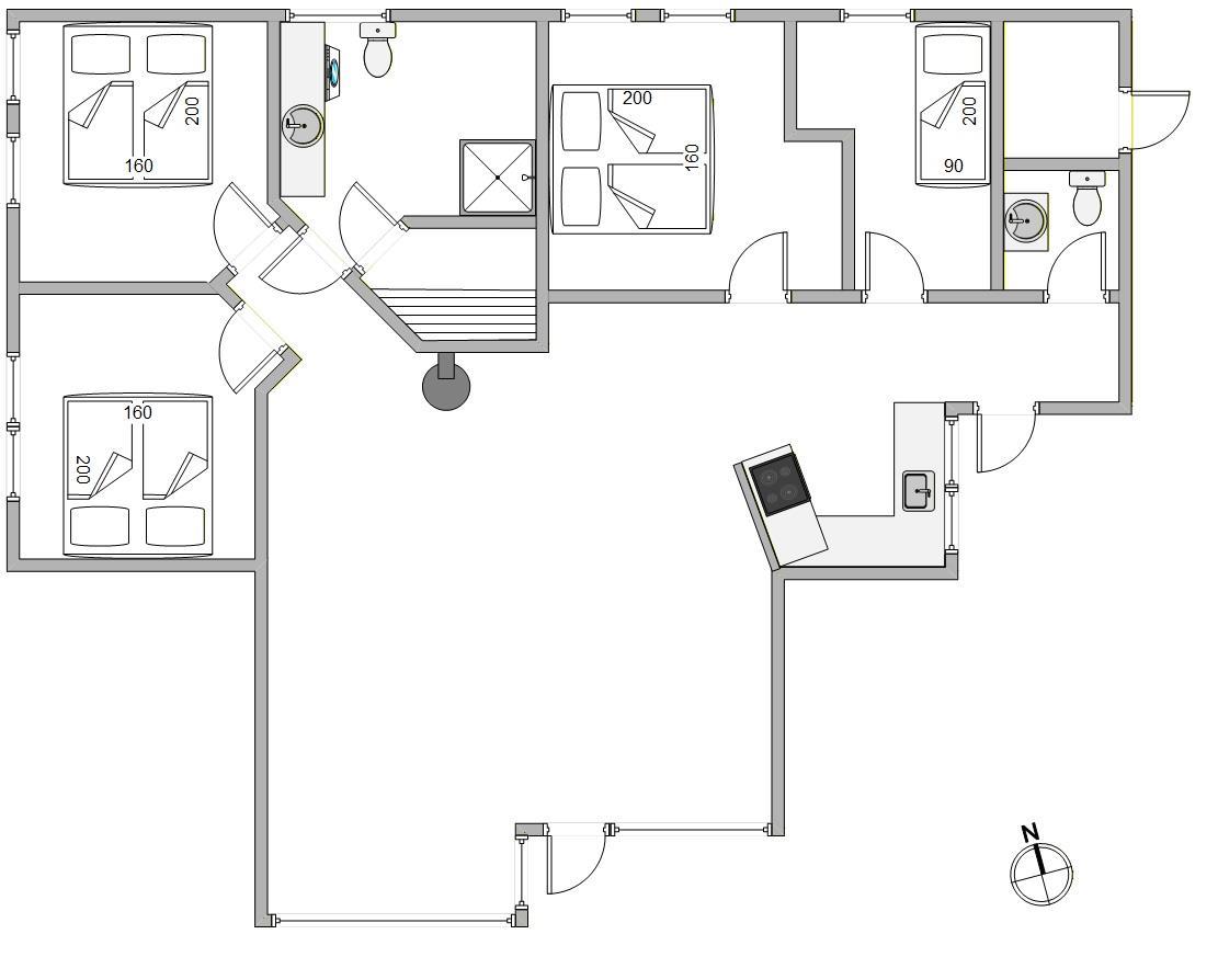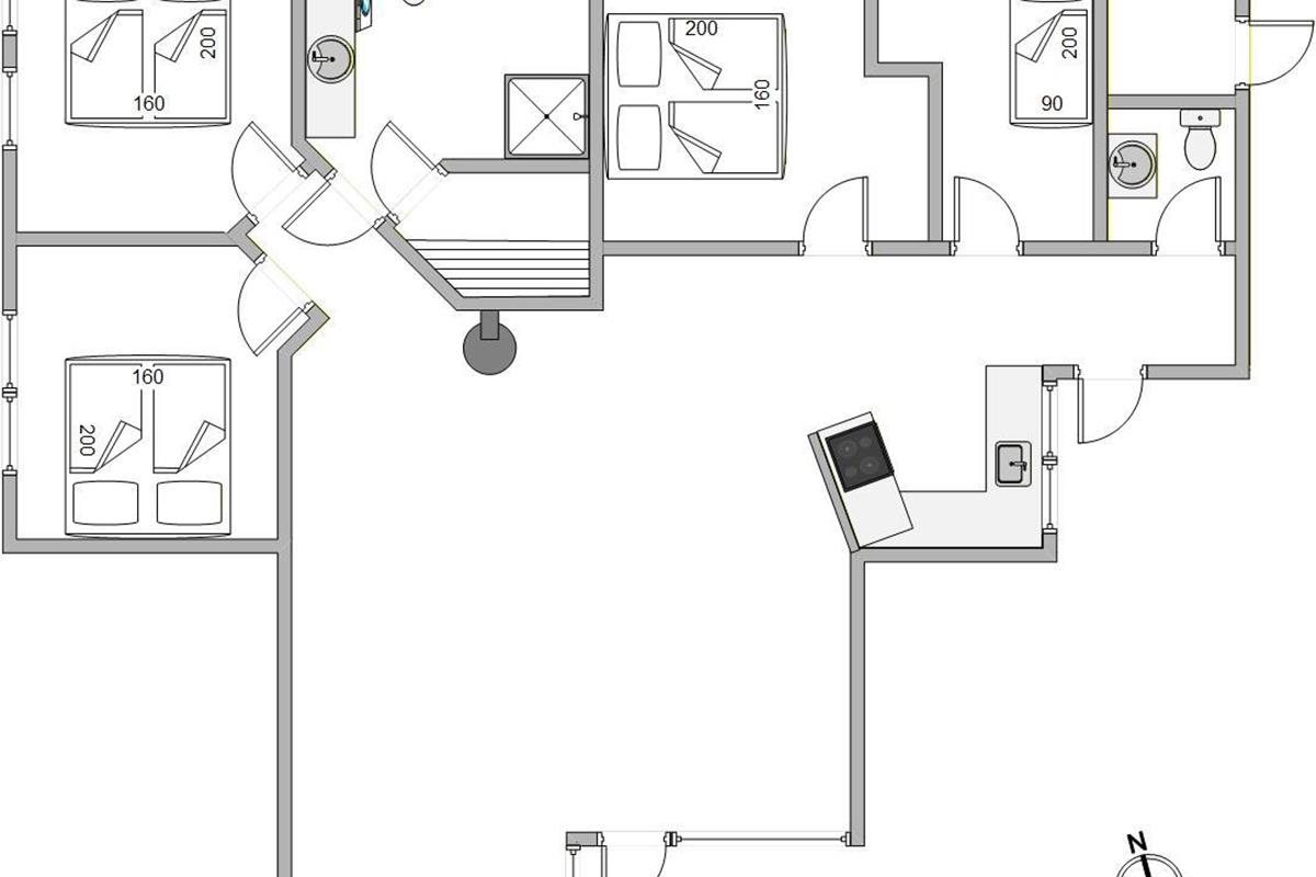 Your holiday home features four bedrooms: three with double beds and one with a single bed. The bathroom includes a sauna, shower enclosure and comfortable underfloor heating - perfect for relaxing wellness moments after long beach walks. There's also a separate guest WC.