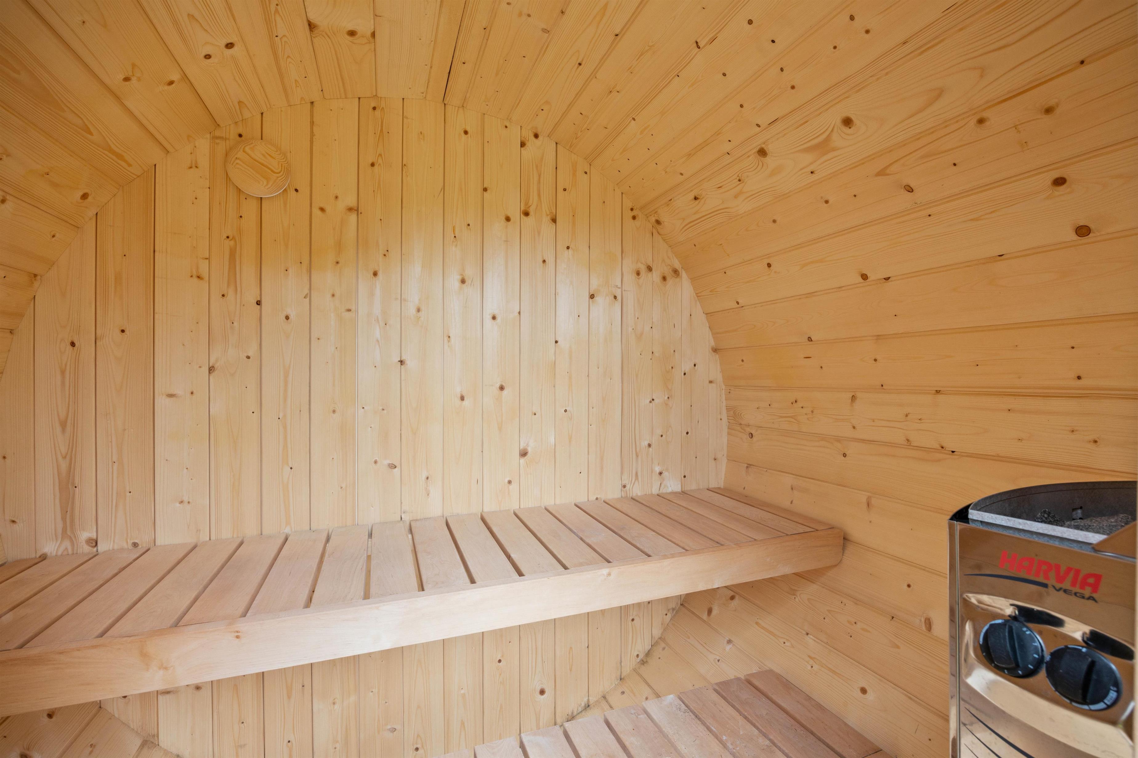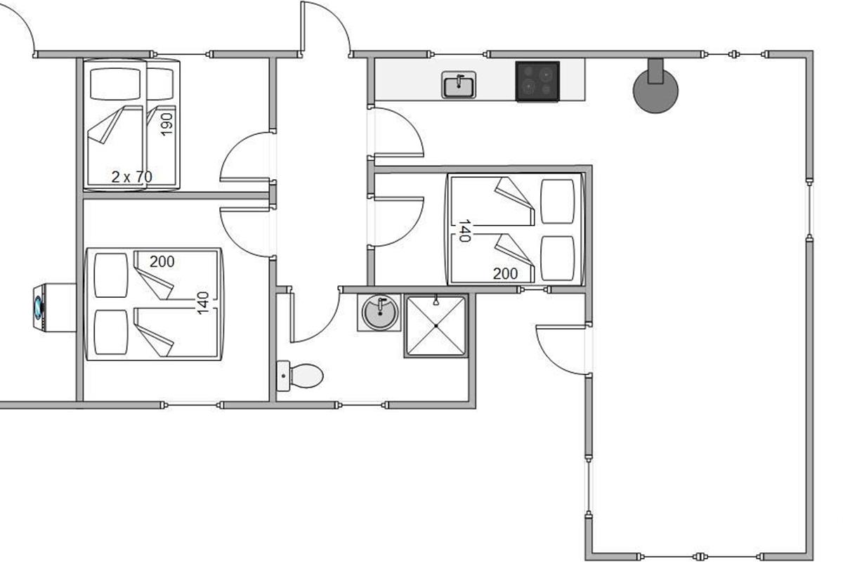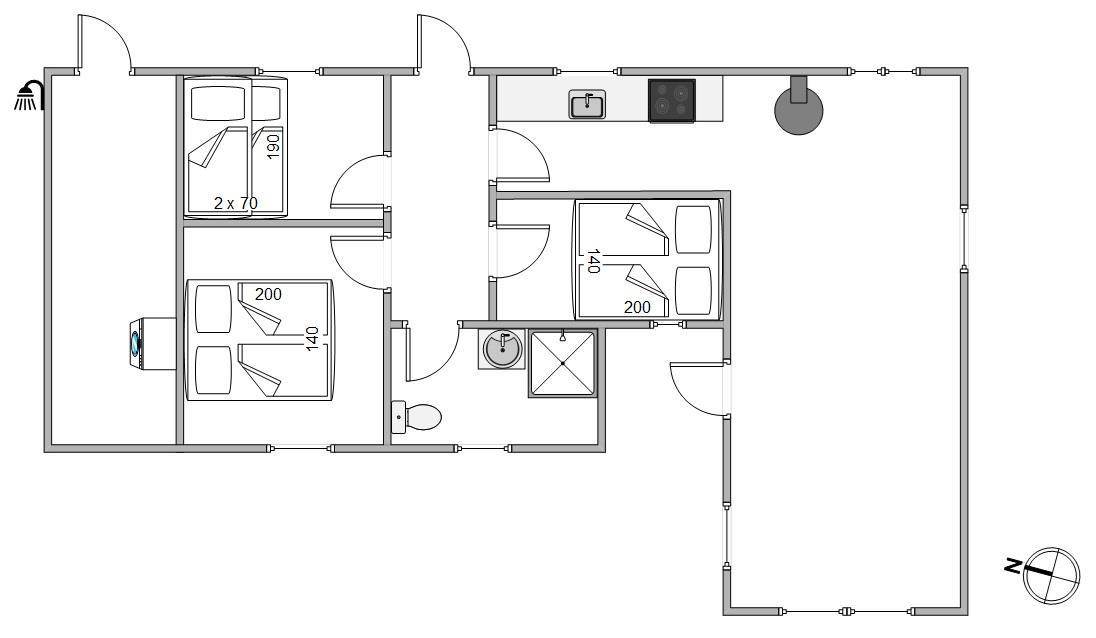 From the living area, you have access to the wonderful terraces that wrap almost entirely around the summer house. One section of the terrace is well-sheltered, while another is covered. You'll find a sunny spot here at any time of day. The comfortable garden furniture is perfect for sunbathing. You can round off a warm summer's day with a relaxing barbecue while the setting sun paints the evening sky red. The holiday home also features an outdoor shower, available from April to November.