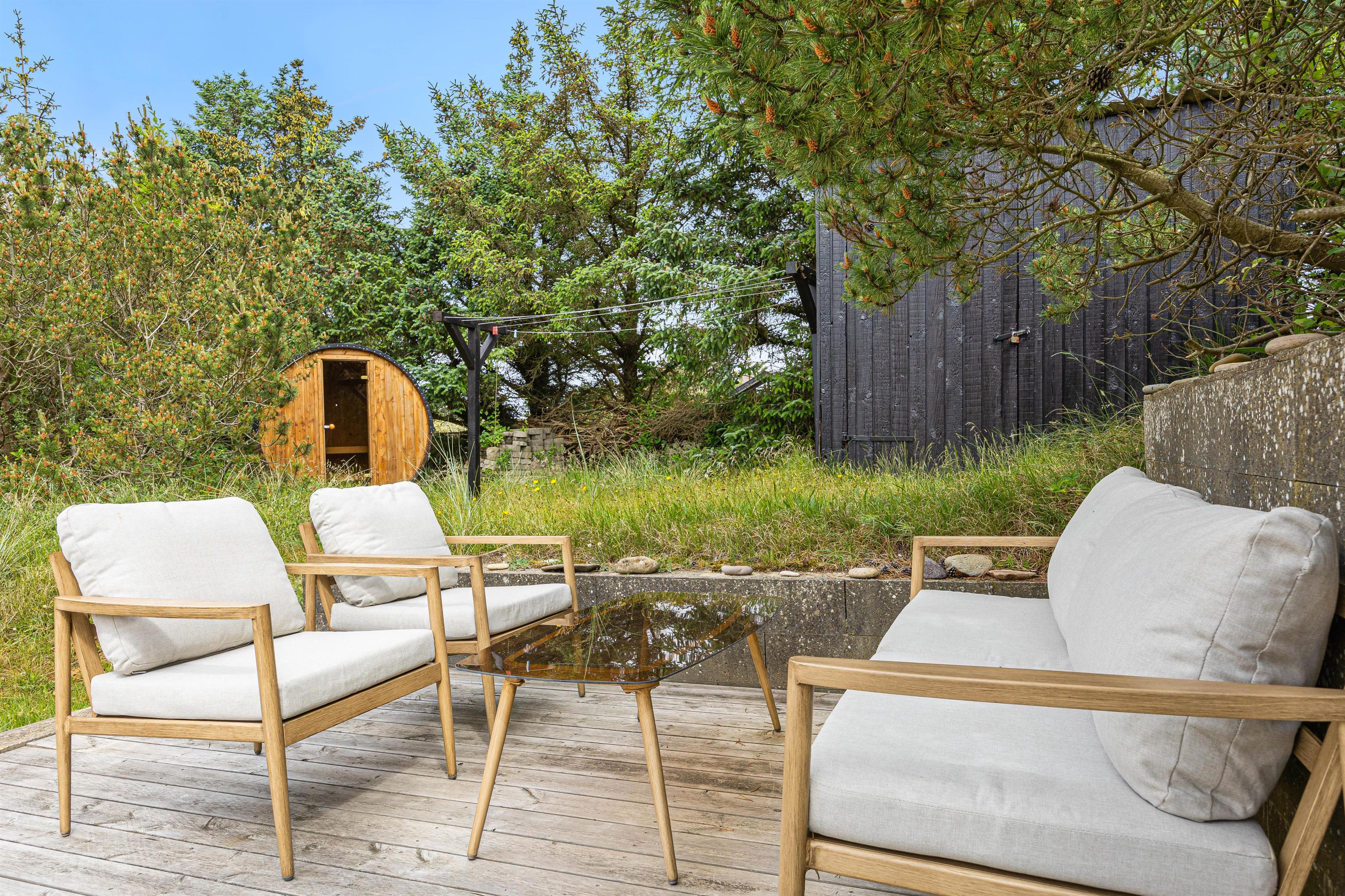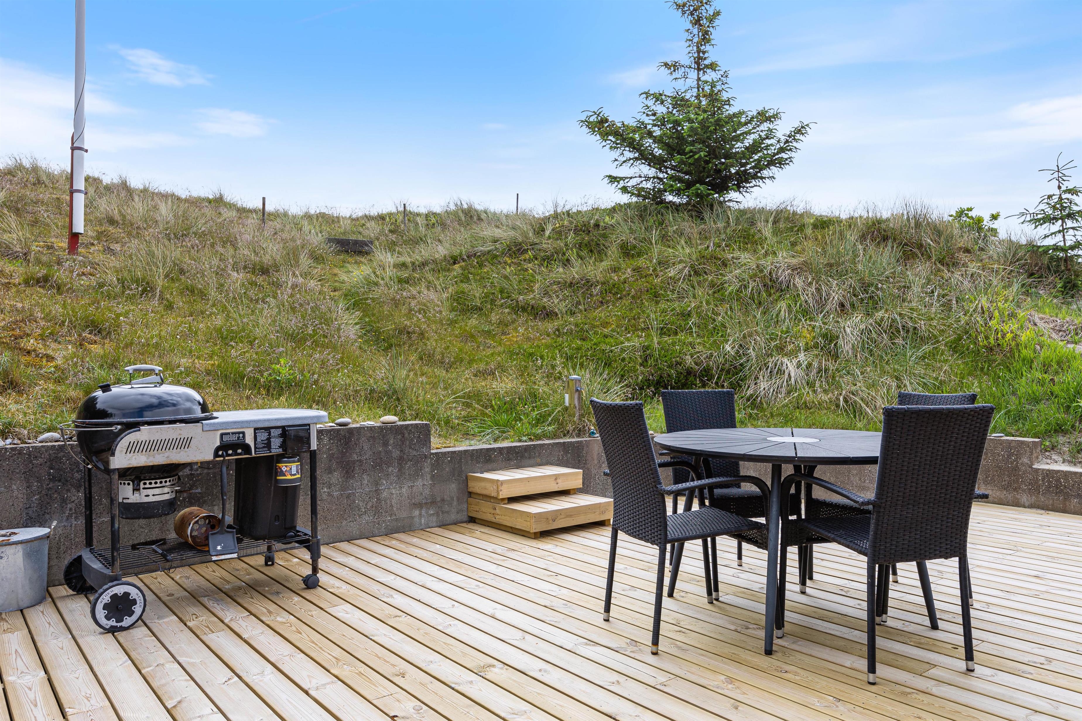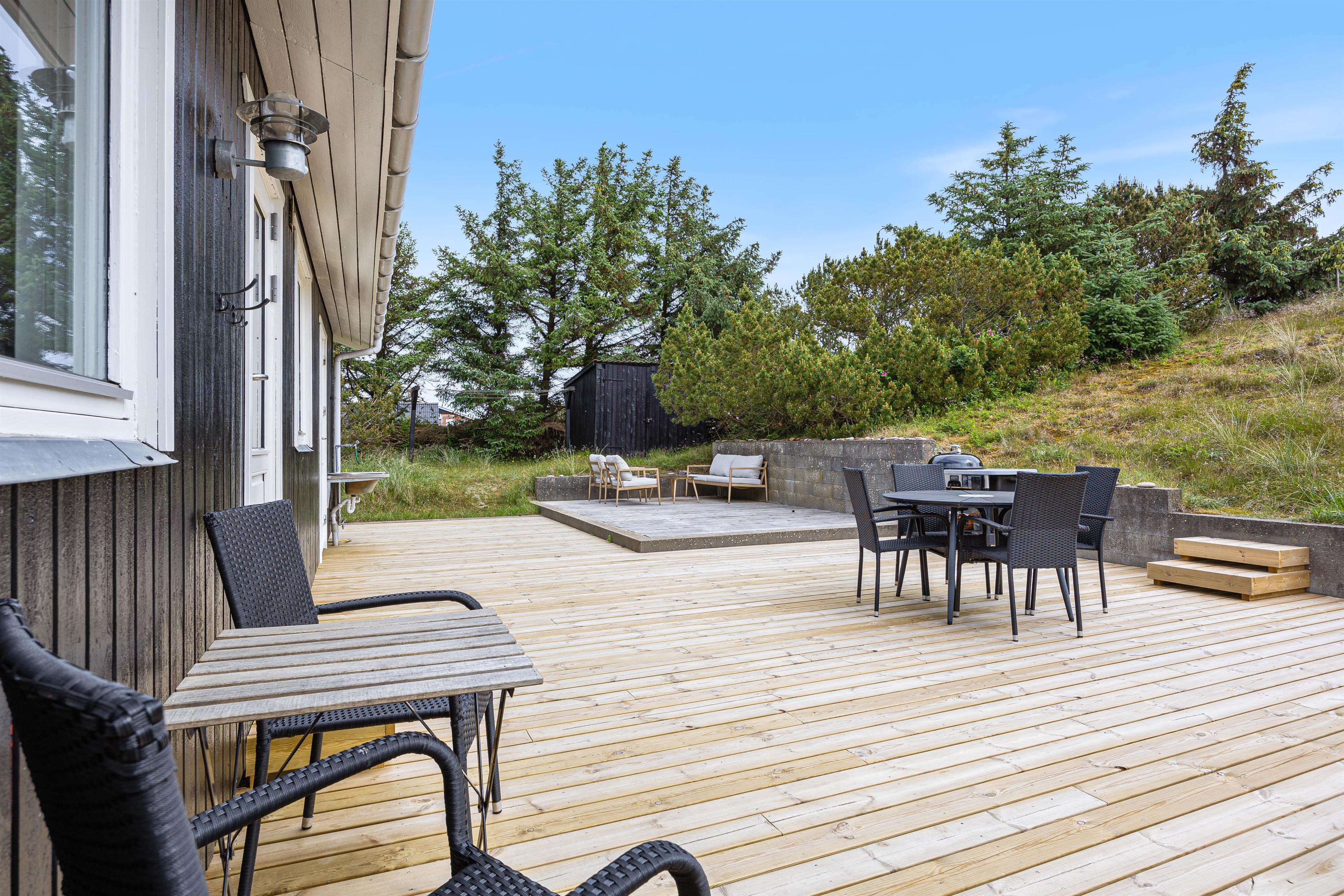 This charming holiday home is situated on an idyllic dune plot at Kr. Madsens Vej 73, surrounded by beautiful nature and heathland. The comfortable furnishings, delightful terraces and excellent location provide ideal conditions for an unforgettable holiday between fjord and sea.
