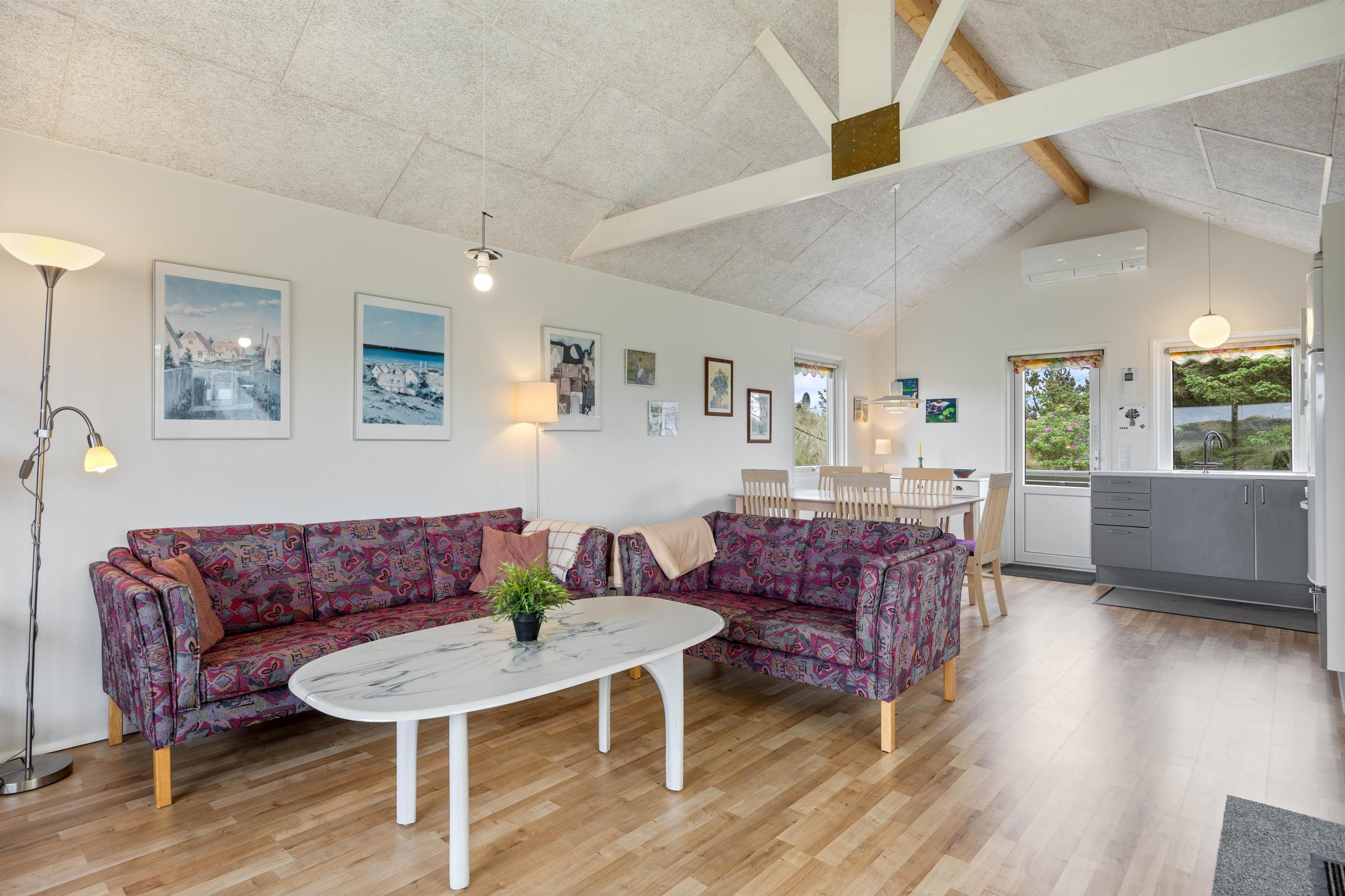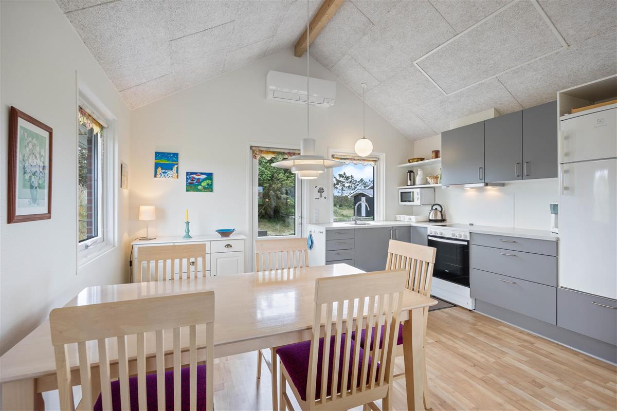 Located at Baunebjergvej 16, the holiday home sits on a large natural plot, surrounded by small dunes and the typical heathland landscape characteristic of West Jutland. A slightly longer walk takes you to miles of sandy beach and the thundering North Sea. Pack a picnic with Danish pastries and fresh fruit for wonderful hours by the sea, enjoying the ocean views and fresh air.