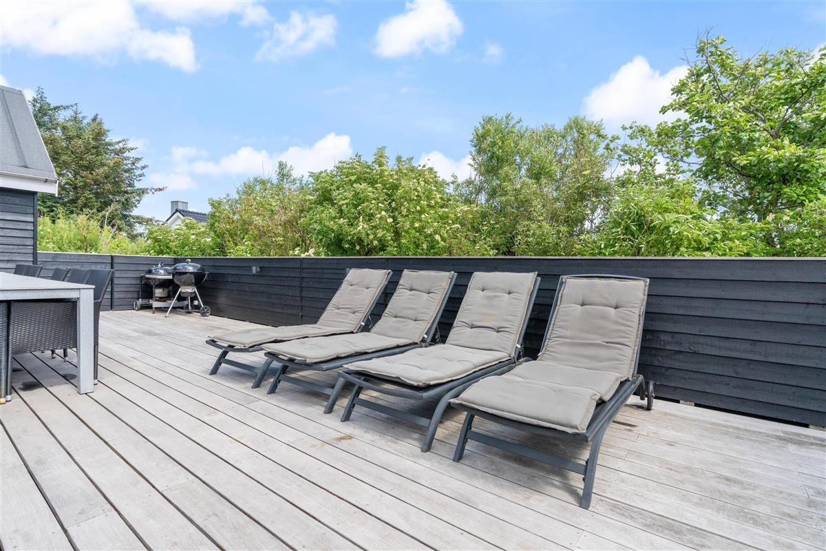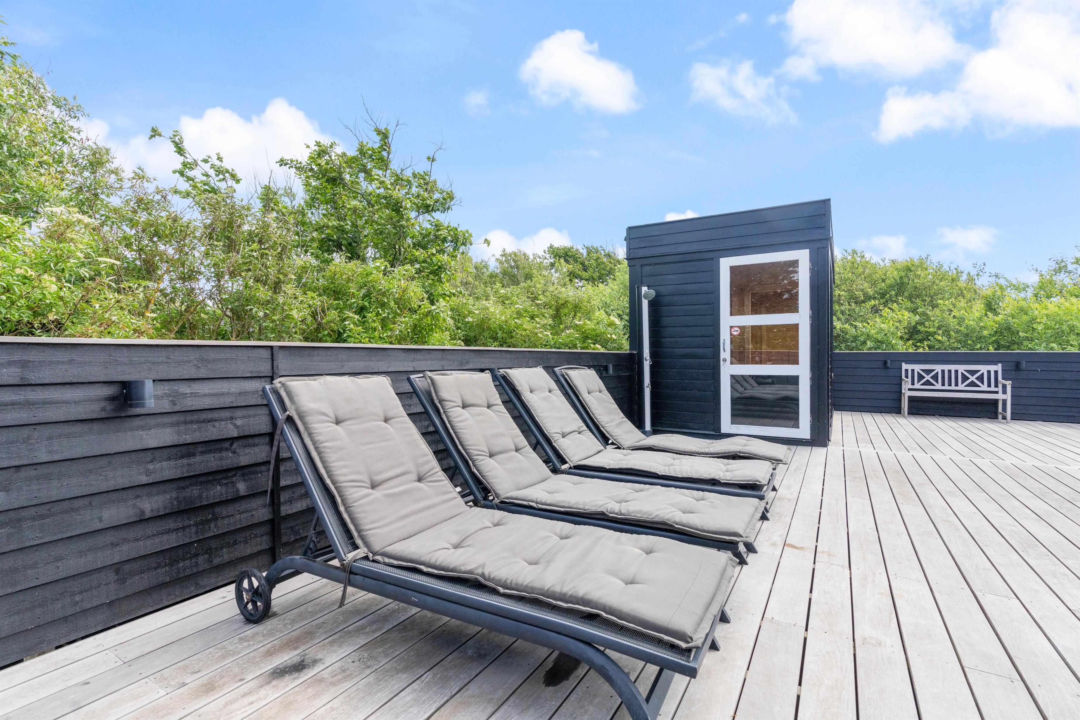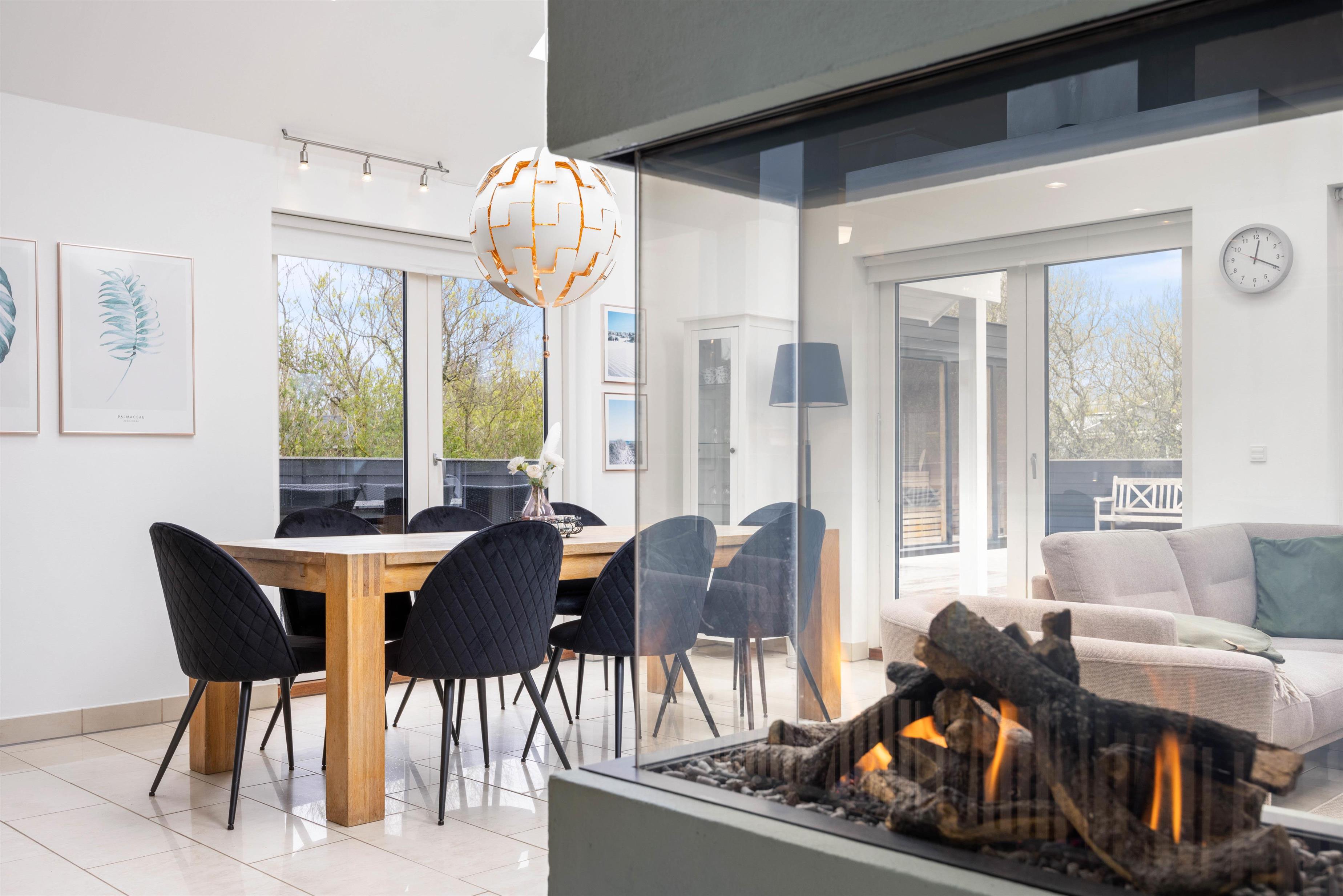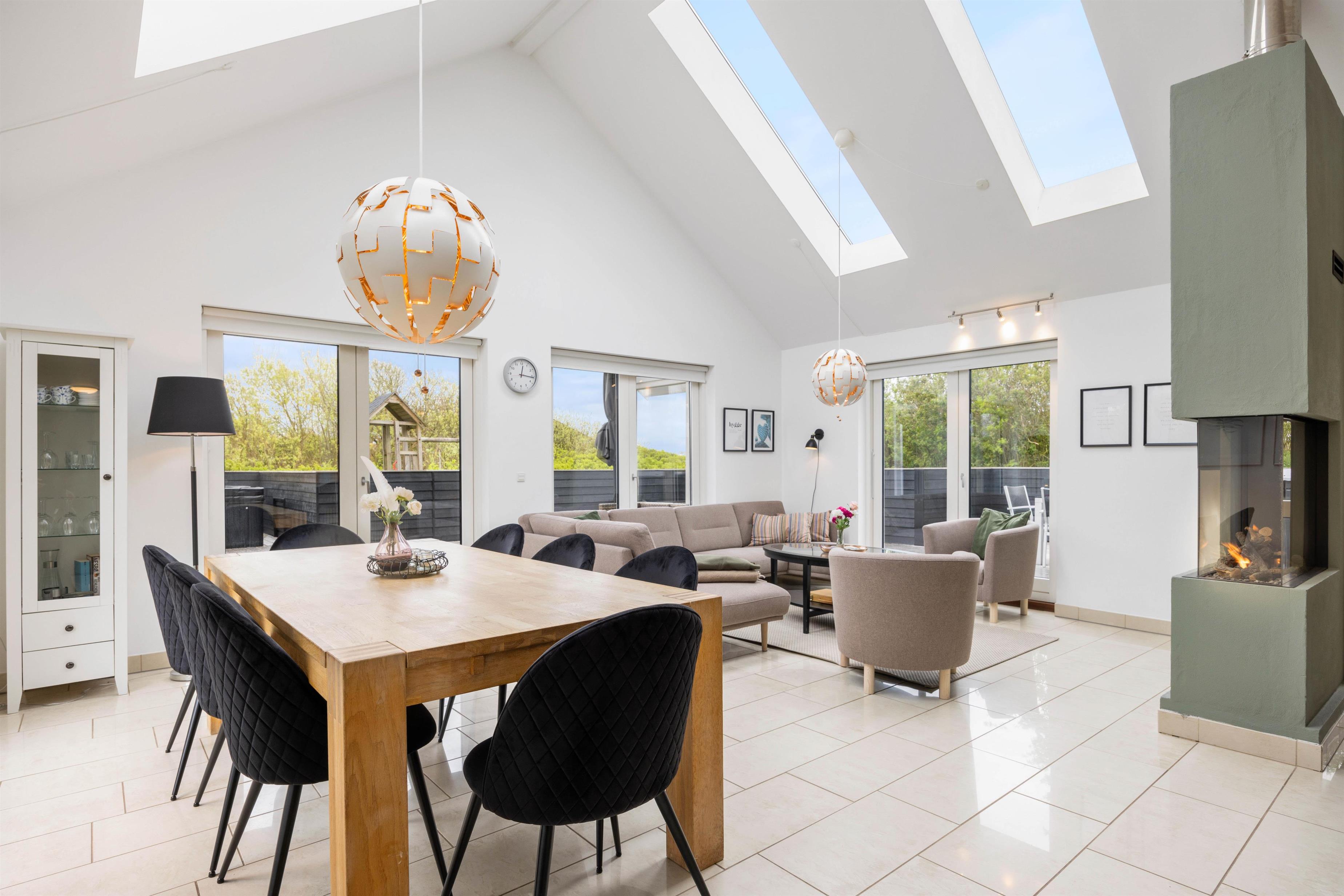 The holiday home's stylish design continues outdoors. The large, partially covered terrace offers additional relaxation options. You'll find an outdoor hot tub, a spacious outdoor sauna, and a shower at your disposal. The outdoor shower is available from April to November. Here, all your holiday wishes come true. Enjoying the hot tub under a starlit sky, accompanied by the sound of the nearby North Sea, creates an unforgettable holiday experience.