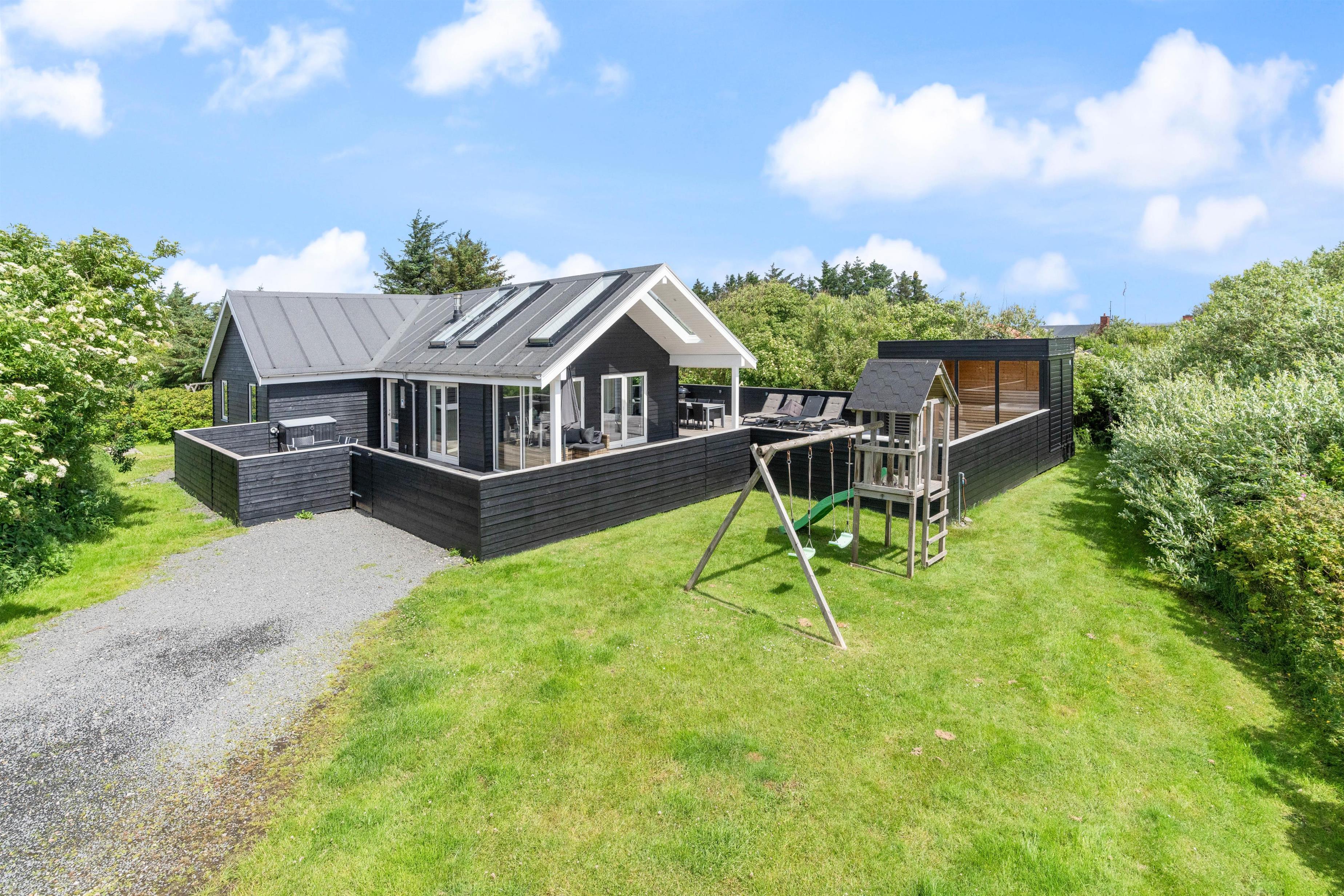 This beautiful holiday home, set on a secluded lawn in Haurvig, is the perfect choice for those looking to spend their holiday in pure relaxation. The spacious holiday home at Kr. Madsens Vej 13, filled with natural light from its skylights, invites you to enjoy a wonderful holiday. Premium features including a large outdoor hot tub for six people and a sauna complete the picture of this modern holiday home. Located close to the beach, it also warmly welcomes your dogs.