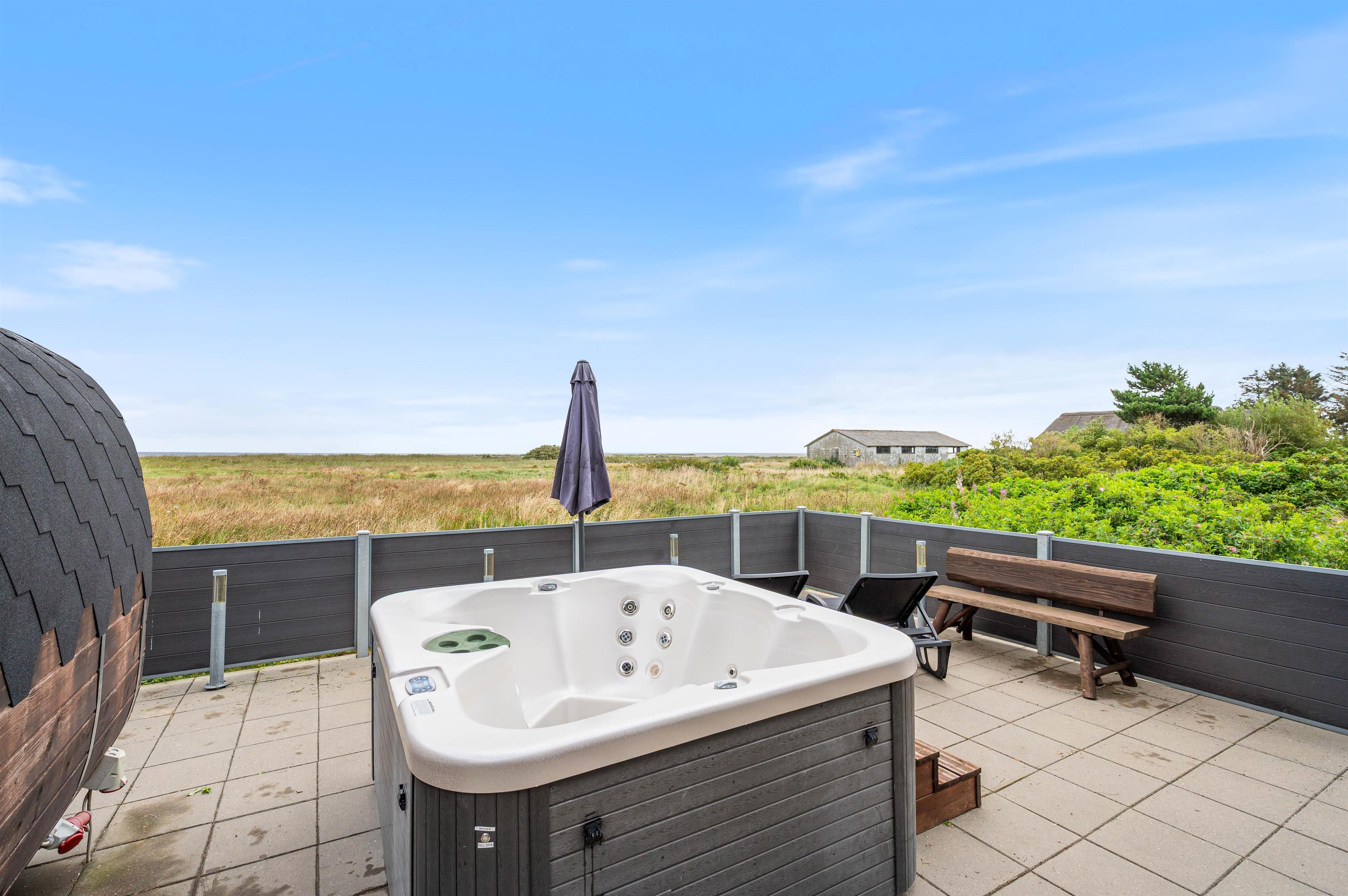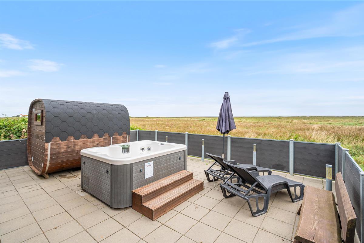 Outside, you'll discover more highlights that certainly contribute to the five-star rating. Alongside the beautiful, enclosed and partially covered terrace, there's a fantastic outdoor hot tub and sauna. You can enjoy the magnificent views directly from the hot tub while watching the sunset. Or perhaps you'd prefer the excellent outdoor sauna?