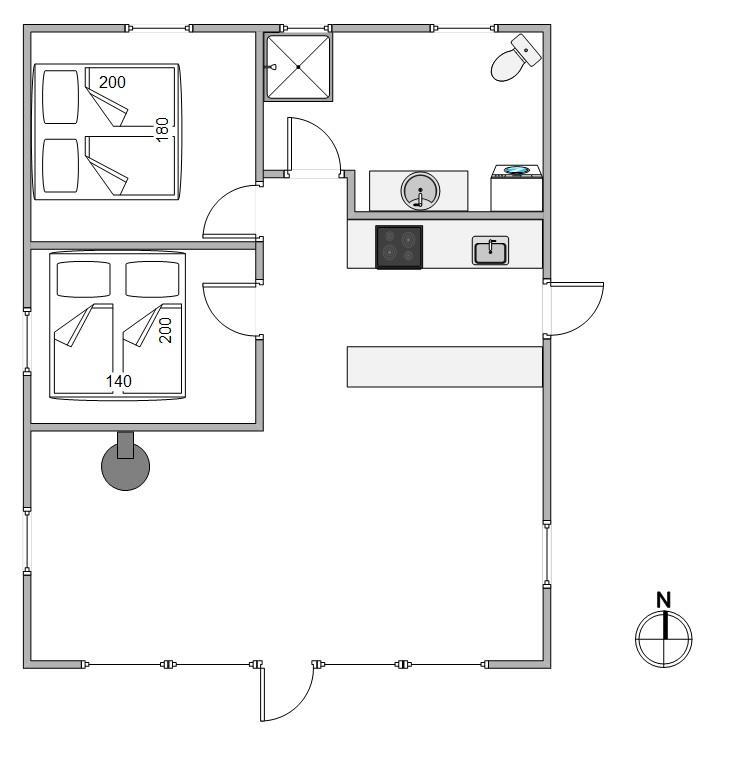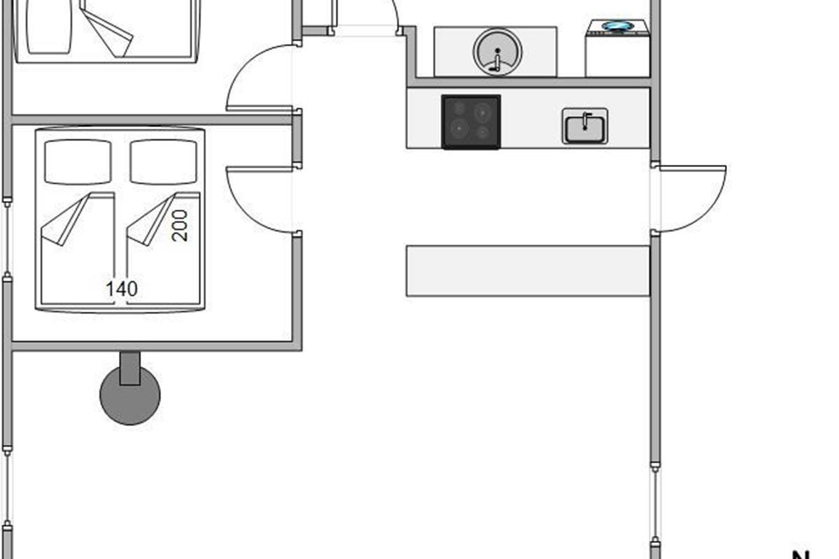 The open-plan, well-equipped kitchen includes a dishwasher, induction hob and fridge-freezer. This lovely holiday home also features a modern bathroom with natural light and underfloor heating, ensuring warm feet after your shower. The two cosy bedrooms contain two comfortable double beds in total, perfect for recharging between holiday adventures.